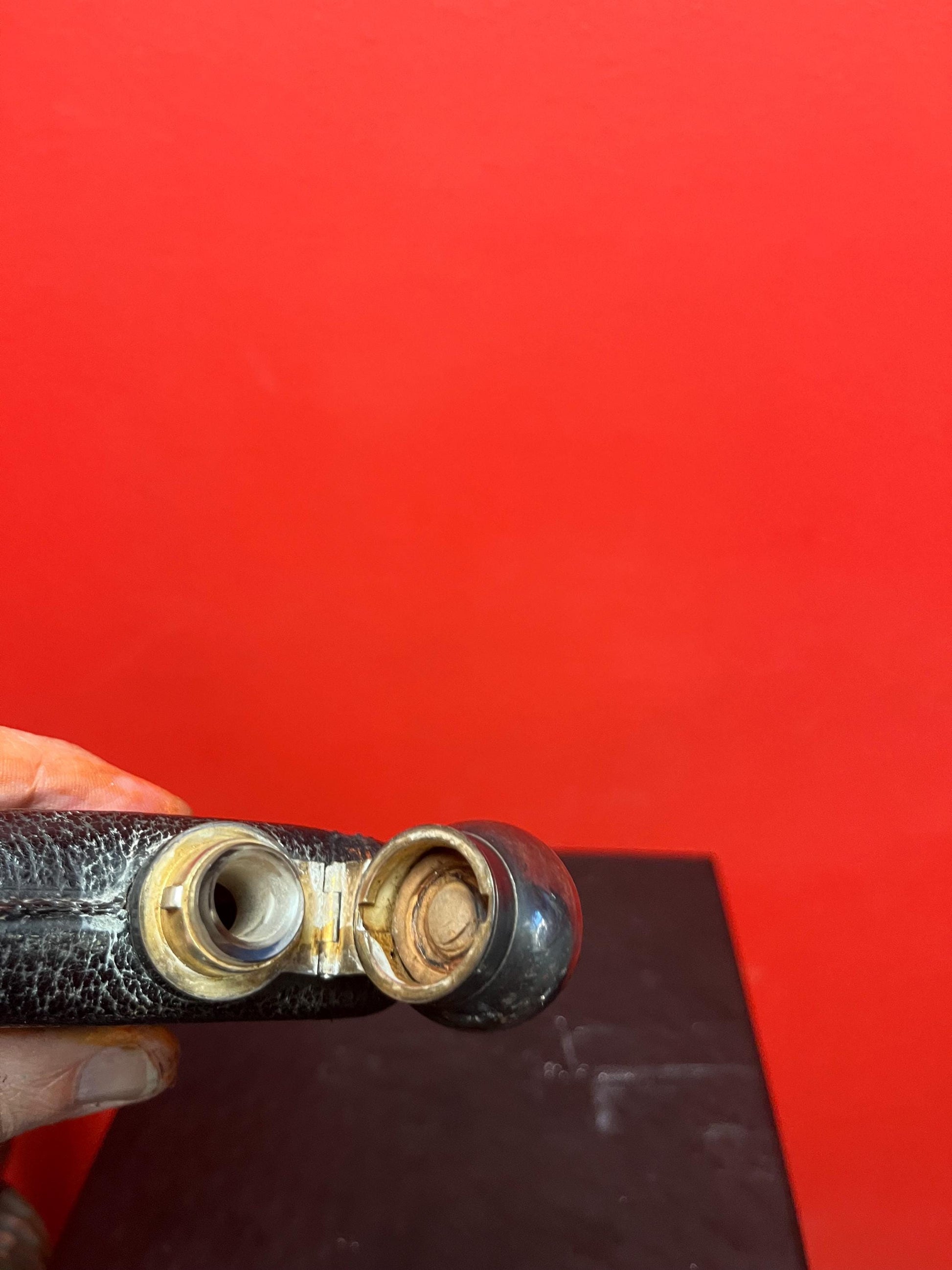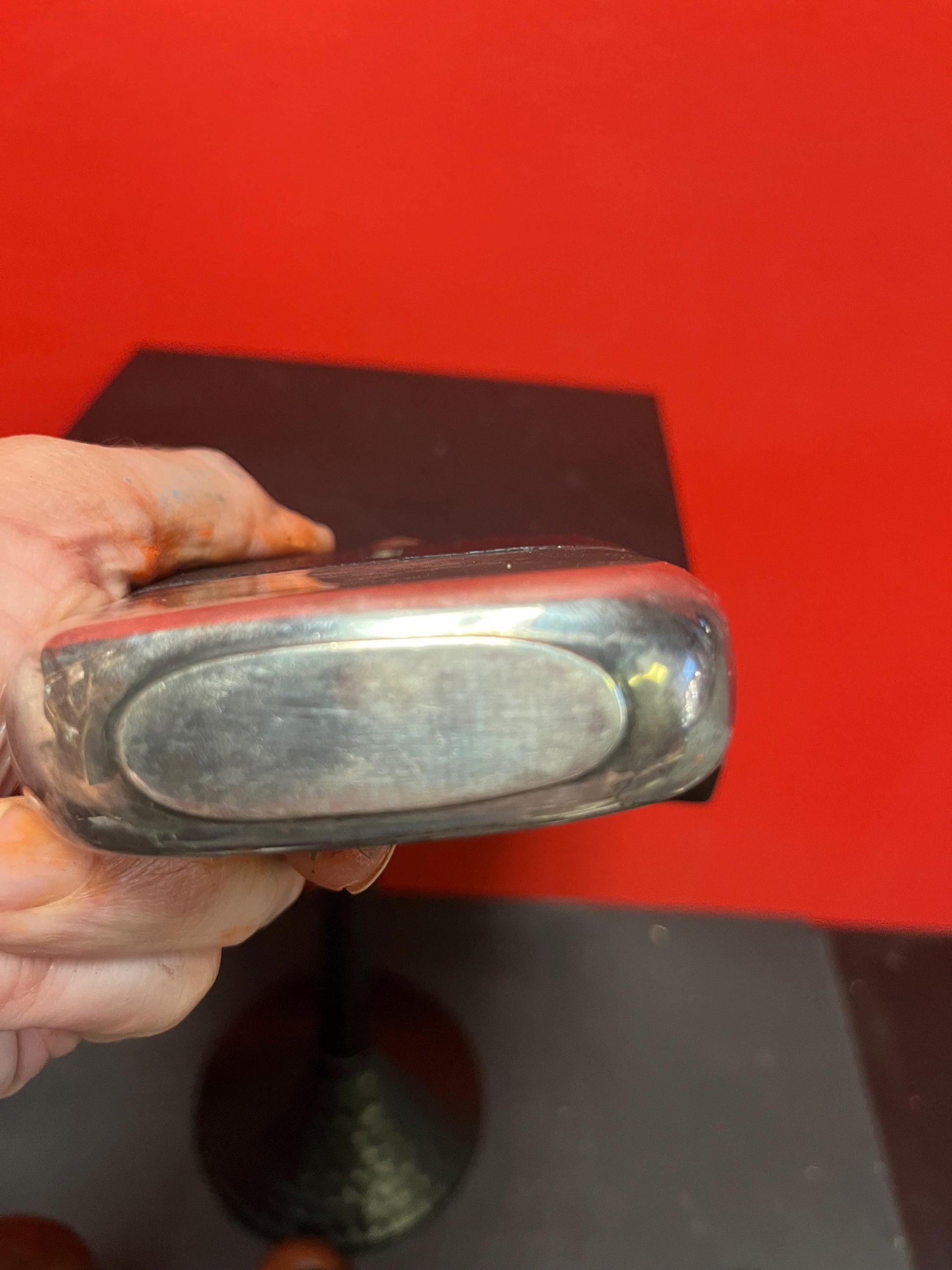 Handsome 5 inch tall leather and silver plated and glass antique English flask good condition needs a polish and great gift