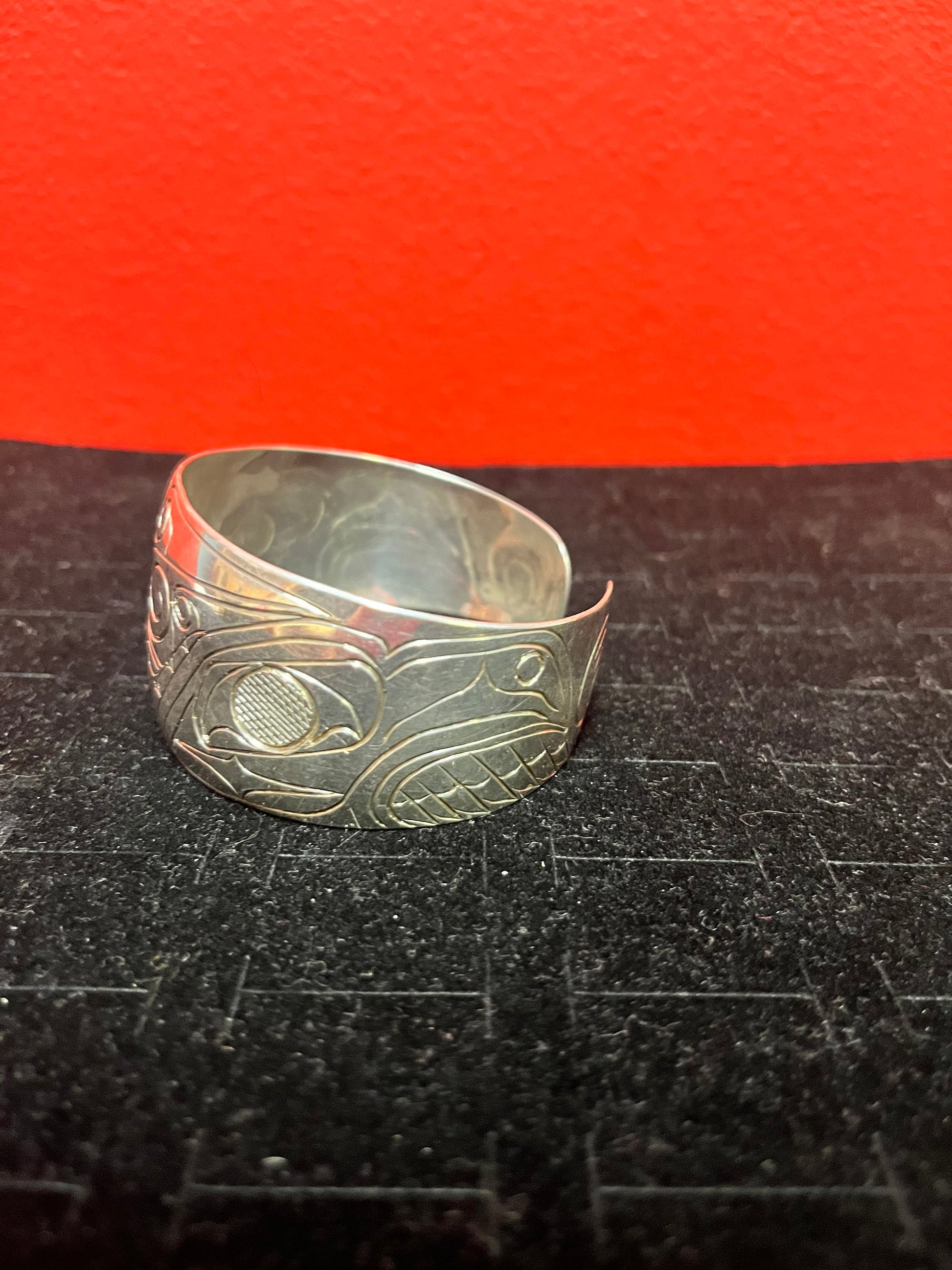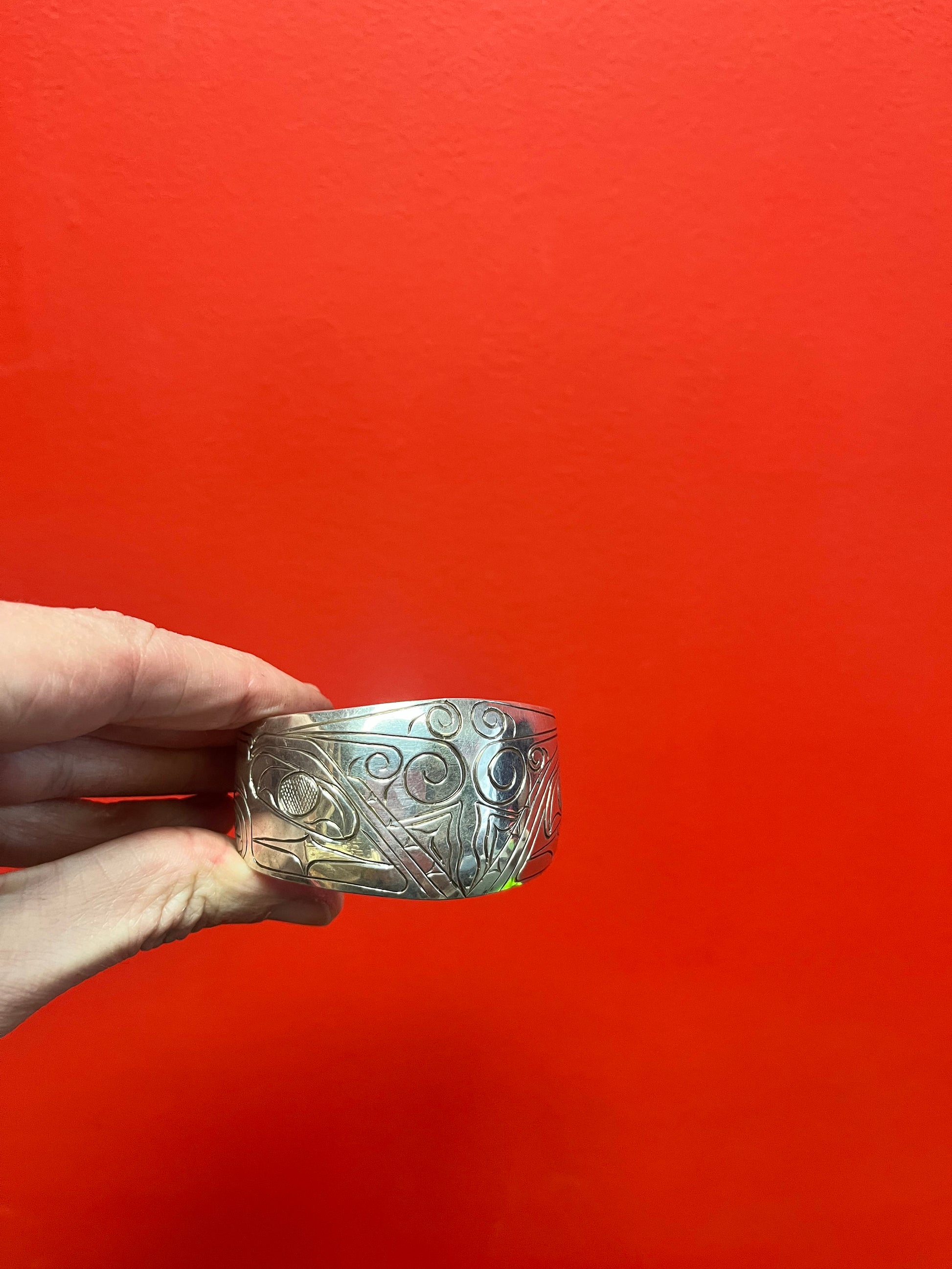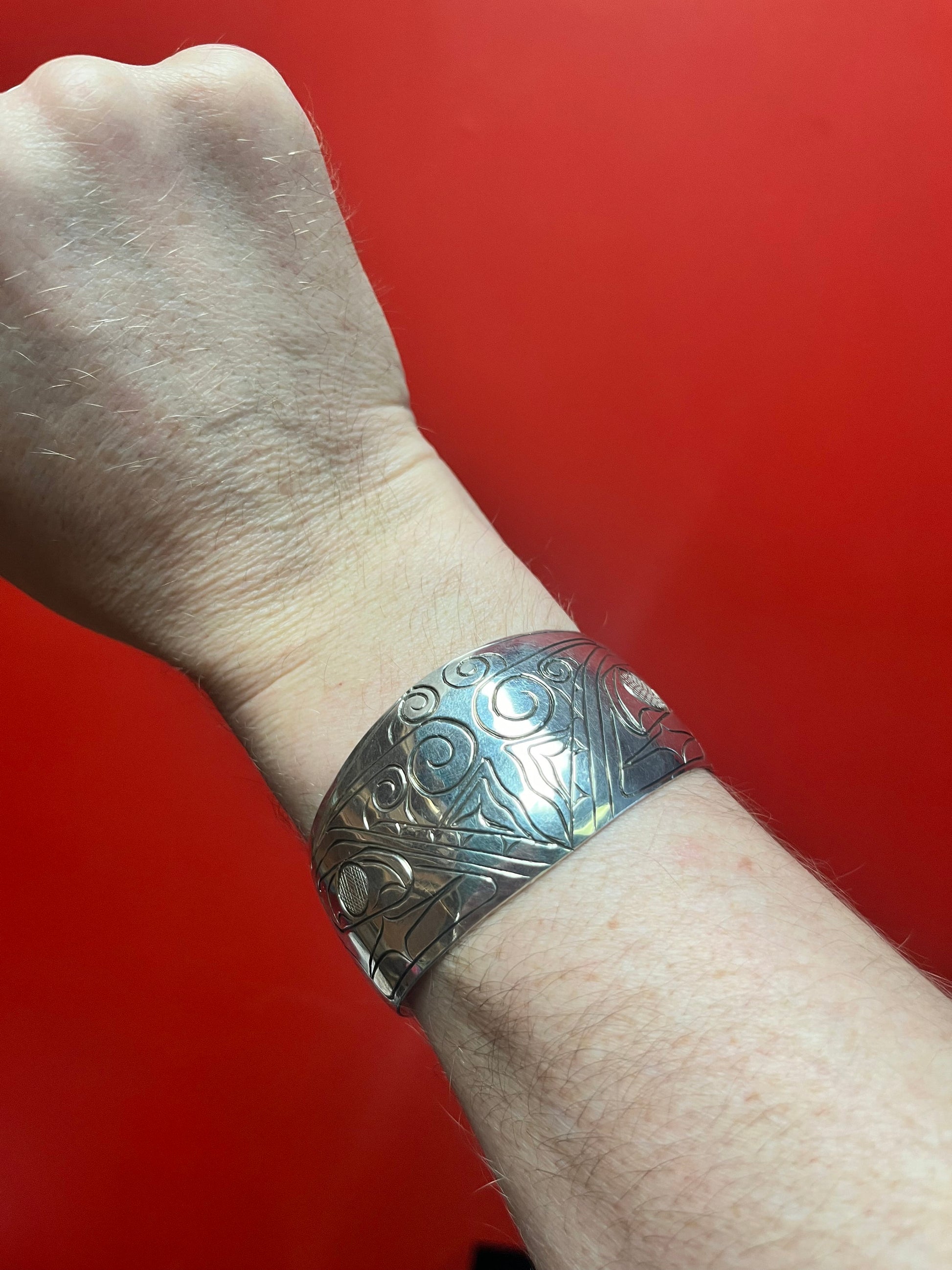 Huge stunning 3 x 1.5 high, signed Edgar Joseph, heavy high-quality detailed indigenous first nations Northwest Coast Sterling bracelet