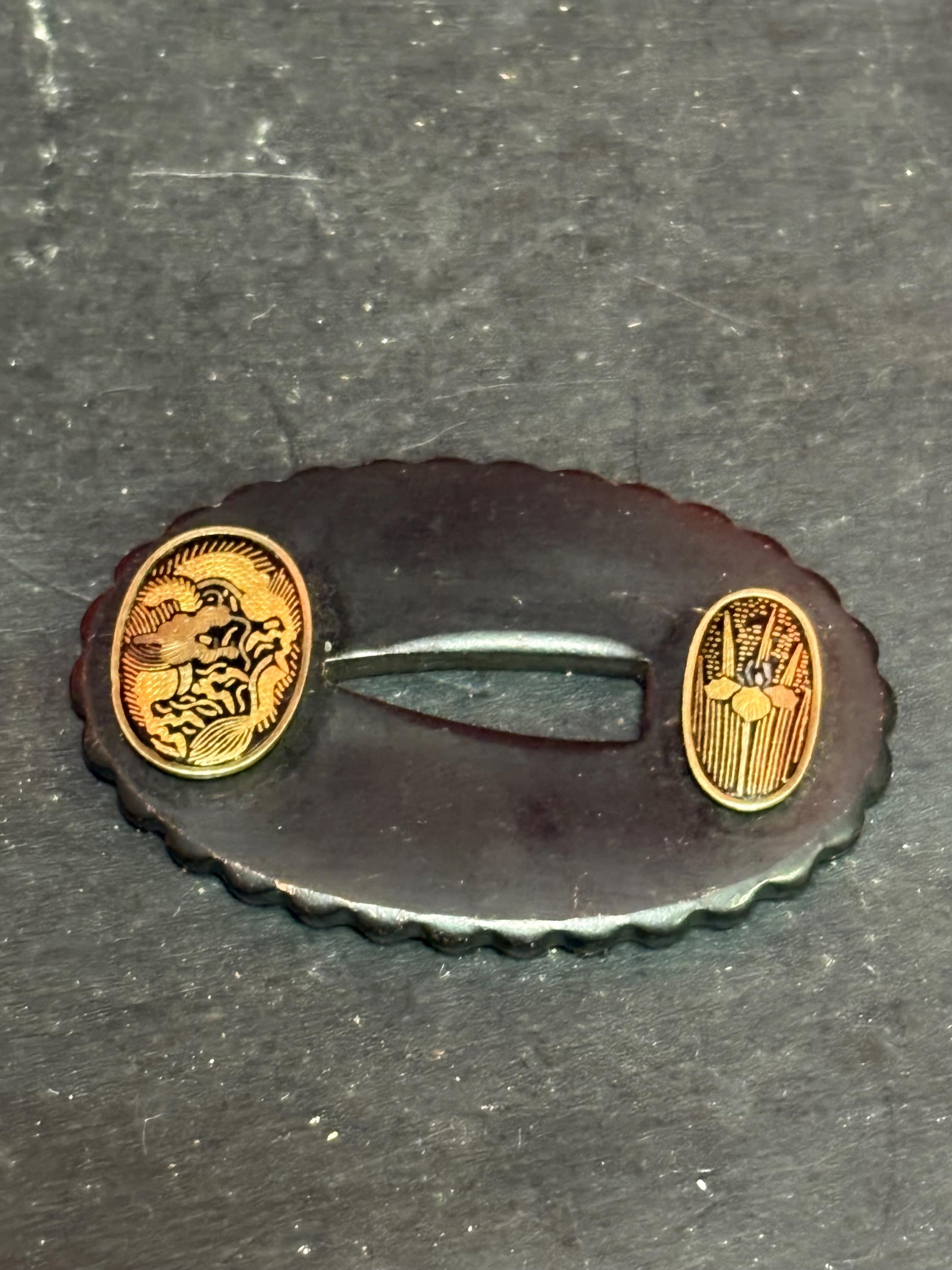 Incredible 2 inch Japanese katana TSUBA - bronze and gilt - fabulous detail wow Japanese samurai tsuba