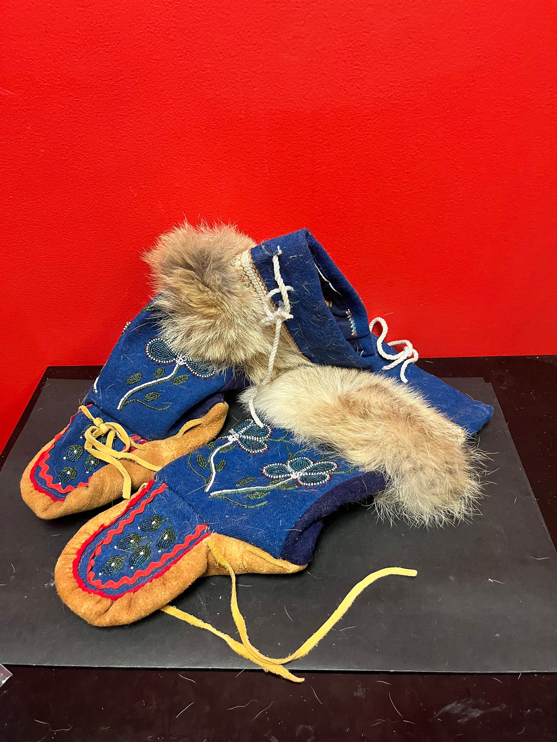Indigenous first nations, Pacific Northwest Coast moccasin boots 15 x 9 long not in good condition low price decoration