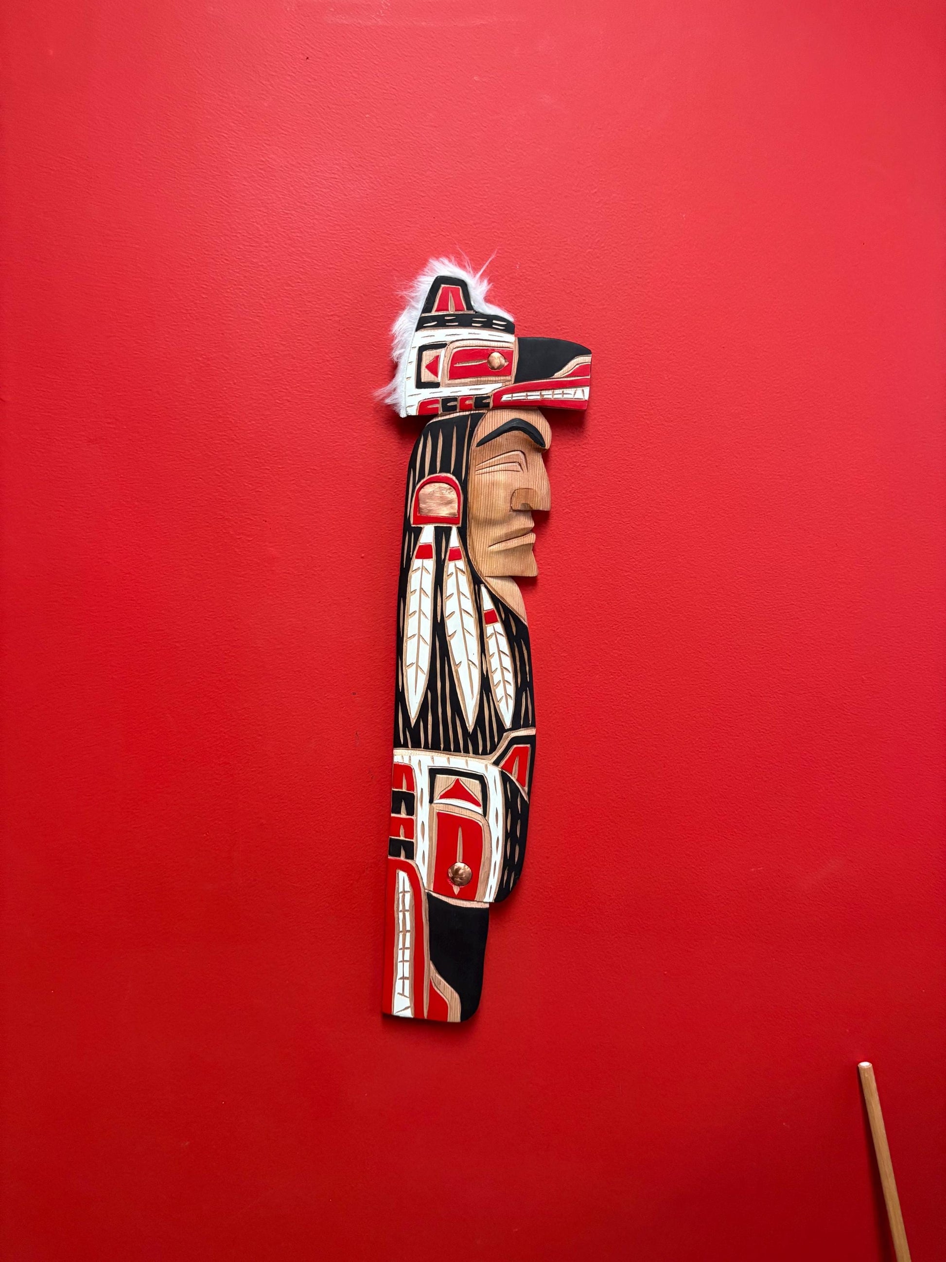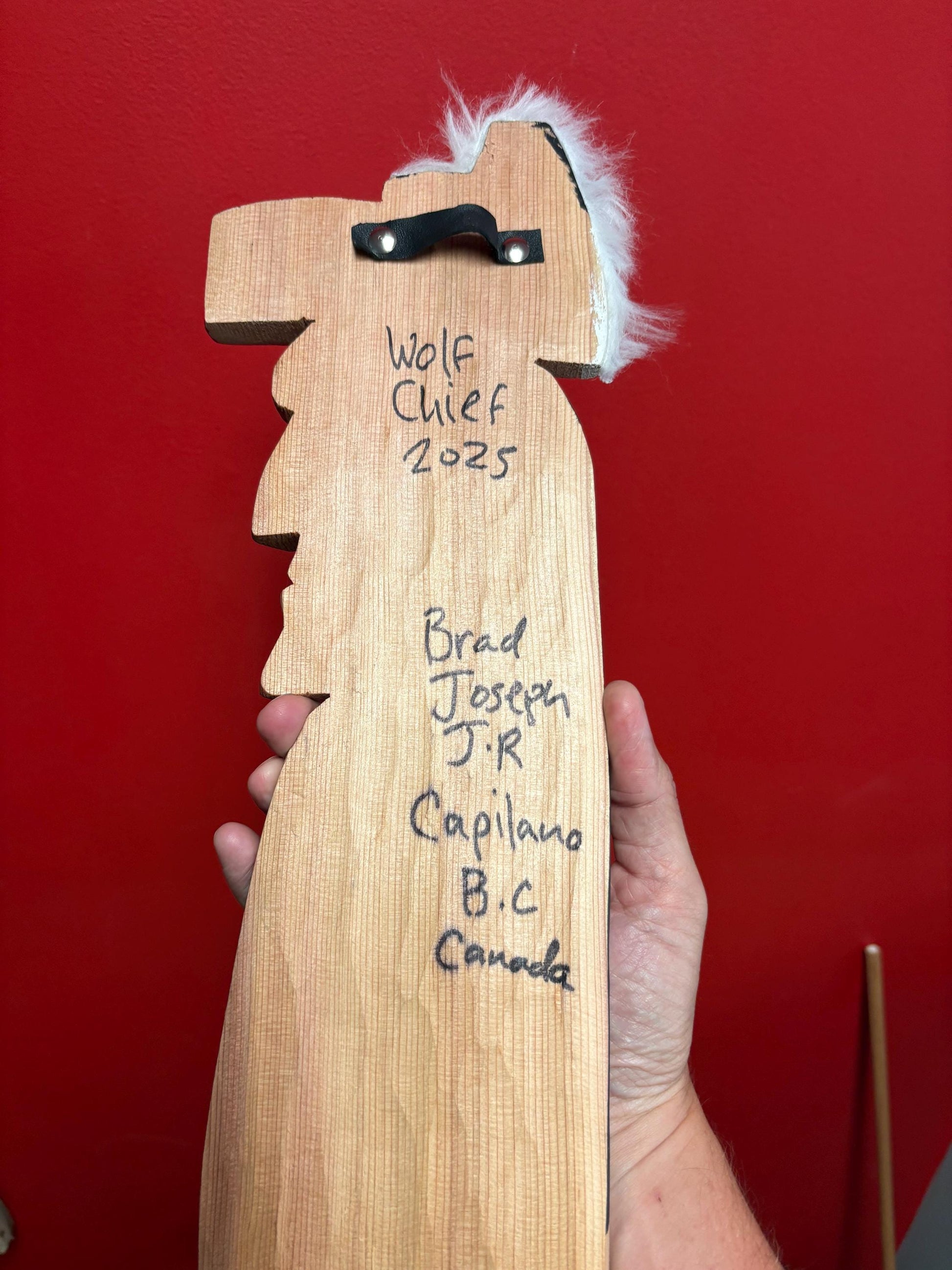 Indigenous First Nations pacific West Coast Bradley Joseph Jr Wolf chief cedar plaque 24 x 6 inches - great colour and detail -