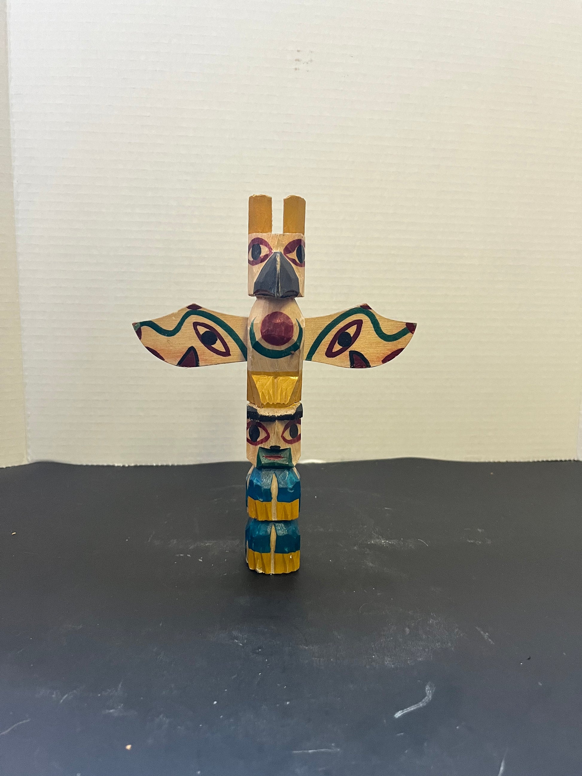 Indigenous primitive polychrome Canadian Vancouver island Pacific Northwest signed 1950s totem pole