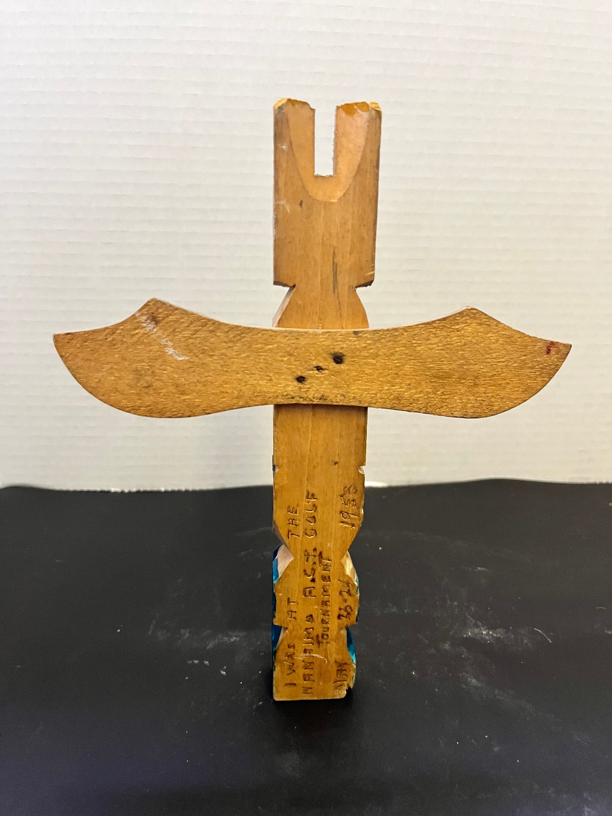 This is a really interesting and unique piece of first nations indigenous it and it was used as a trophy at a tournament on Vancouver island in 1953