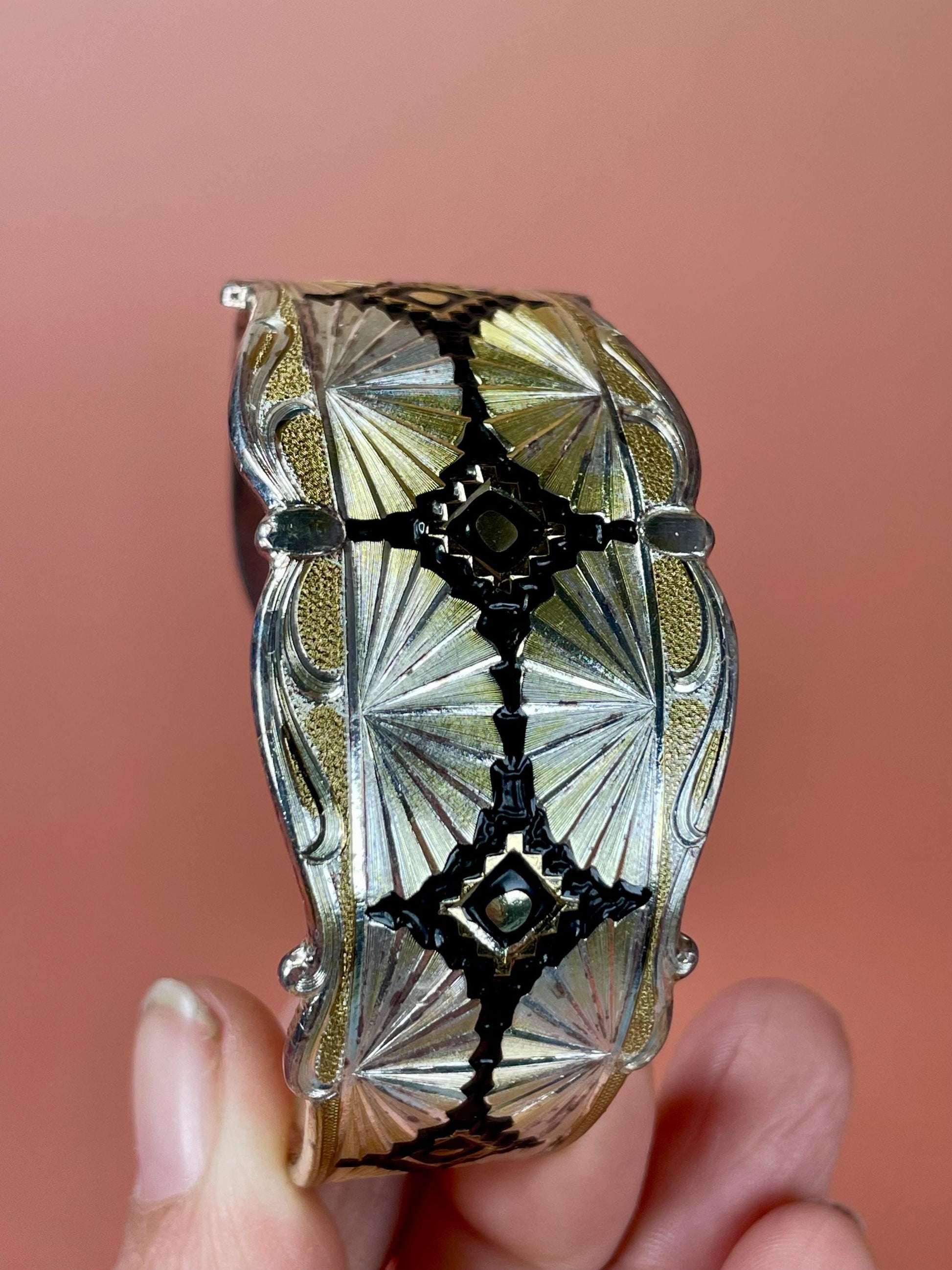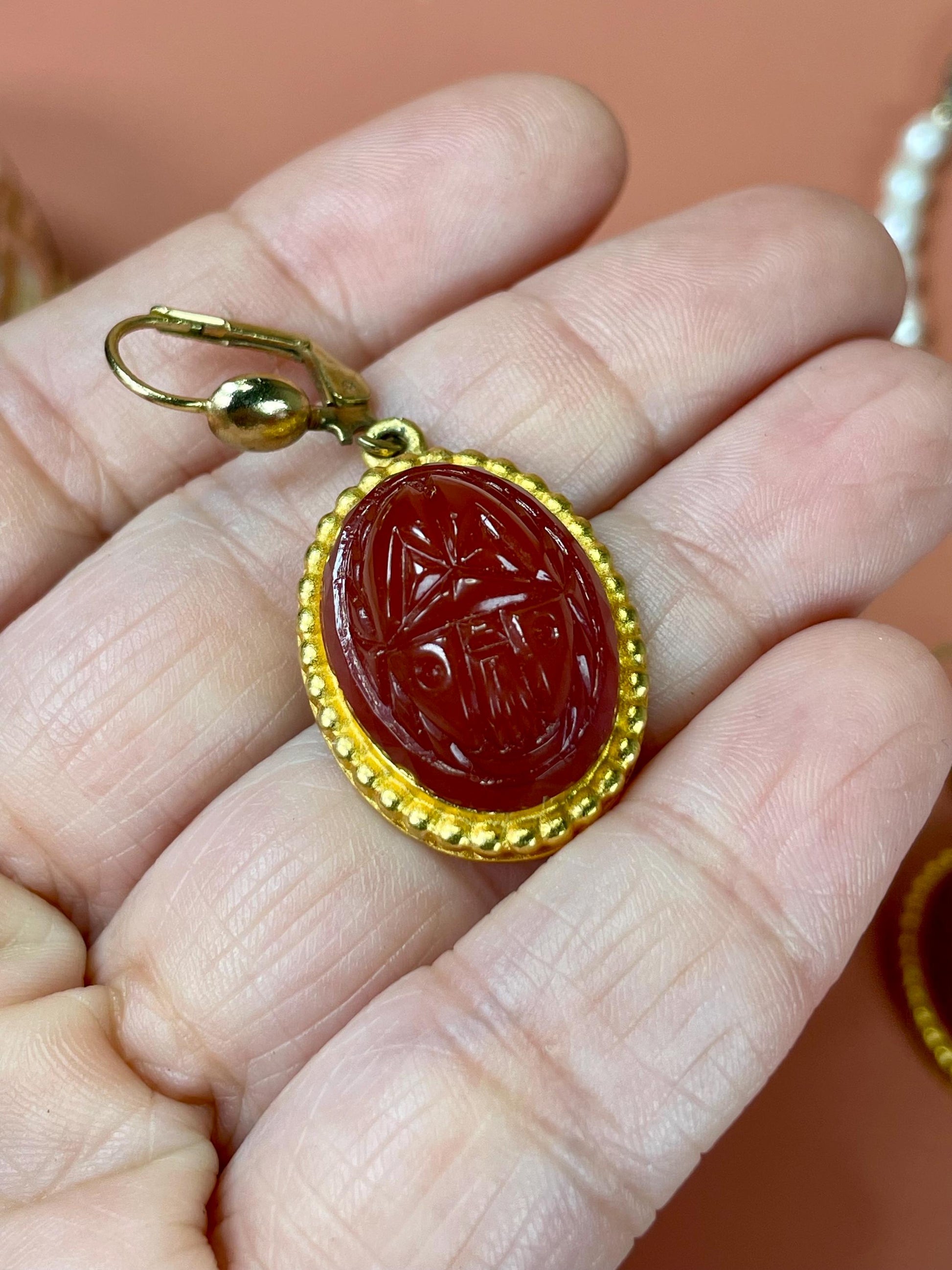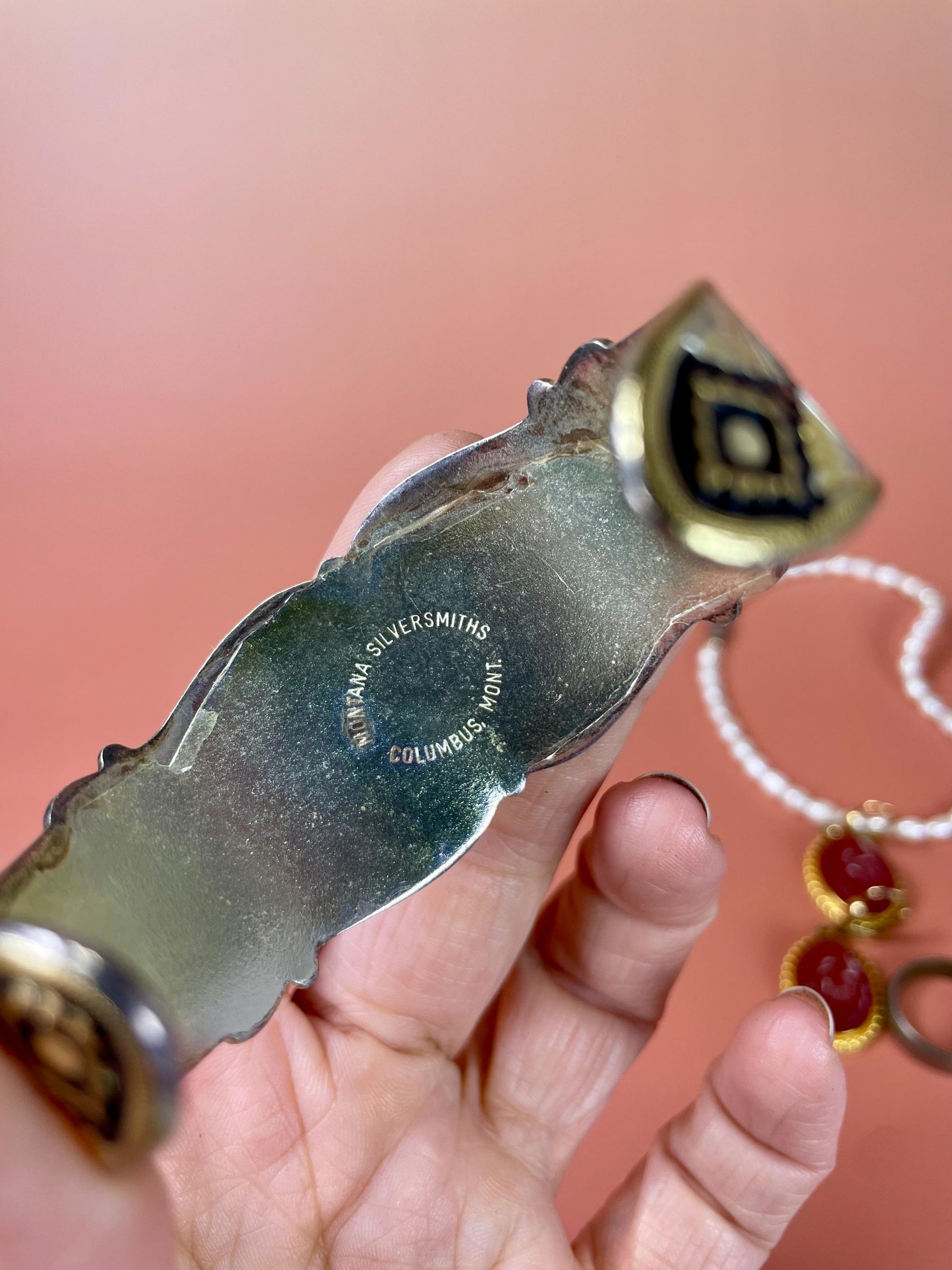This lot of Jewelry includes a lovely metal cuff bracelet, faux pearl bracelet quite large possibly meant as an anklet, a pair of vintage earring and a ring.