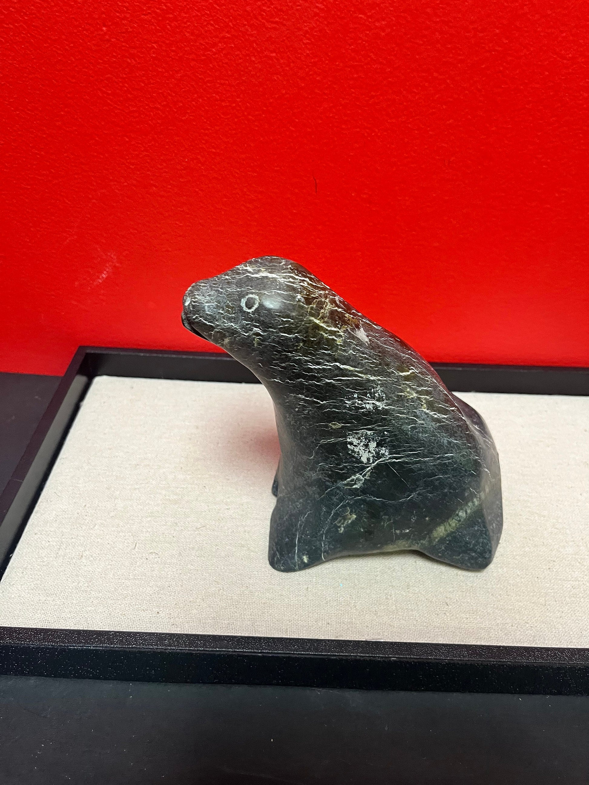 Large beautiful 6 inch high immaculate condition Indigenous Inuit soapstone seal over 1kg