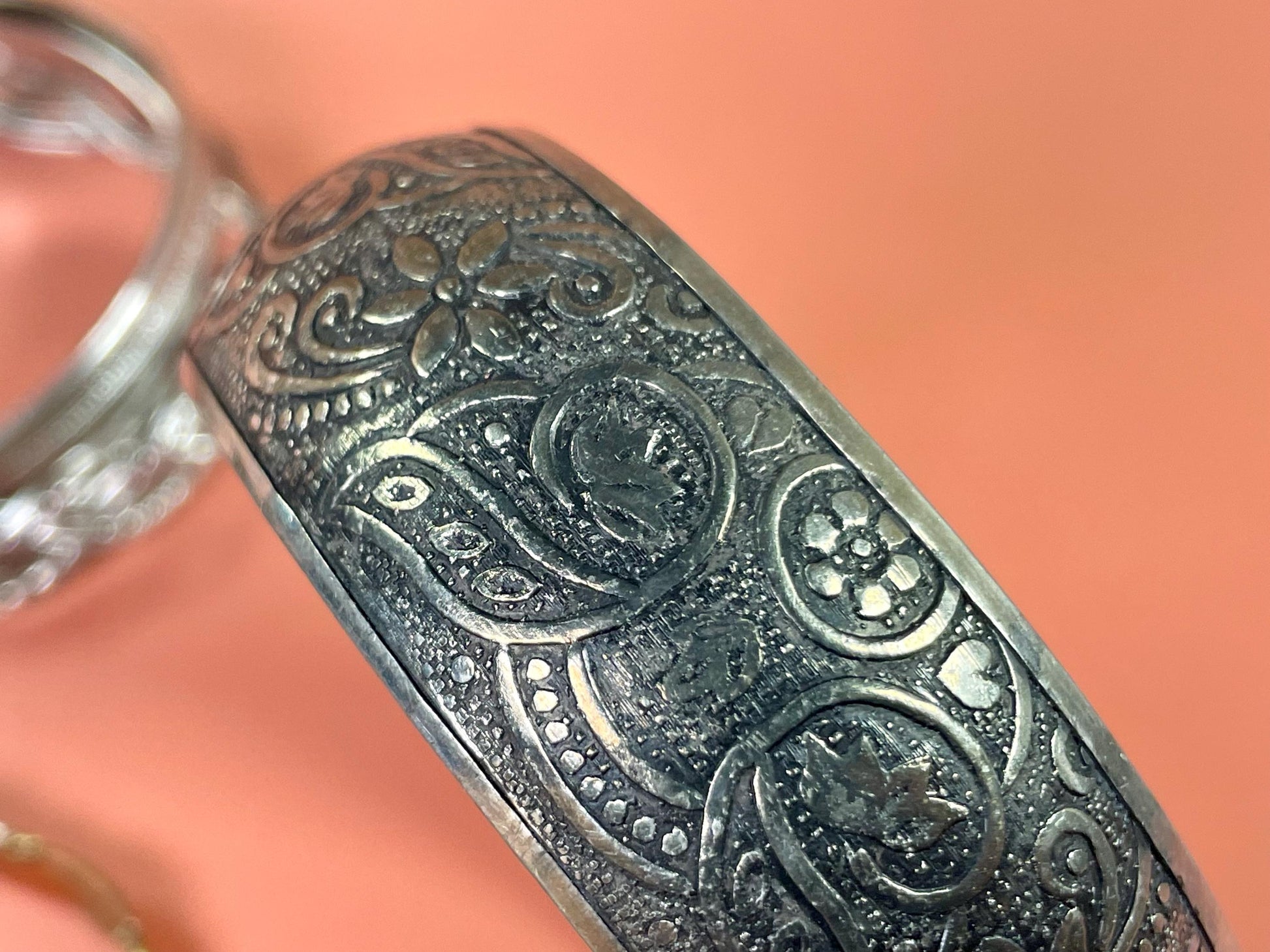 This unique lot of bracelets features a mix of vintage and artisan designs, including brass, silver-tone, and intricately engraved pieces. A perfect collection for stacking, gifting, or adding a touch of bohemian charm to any outfit.