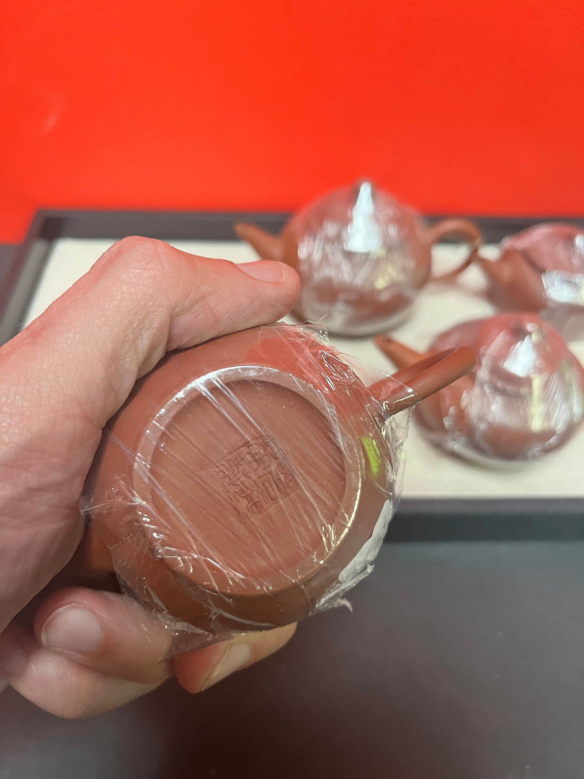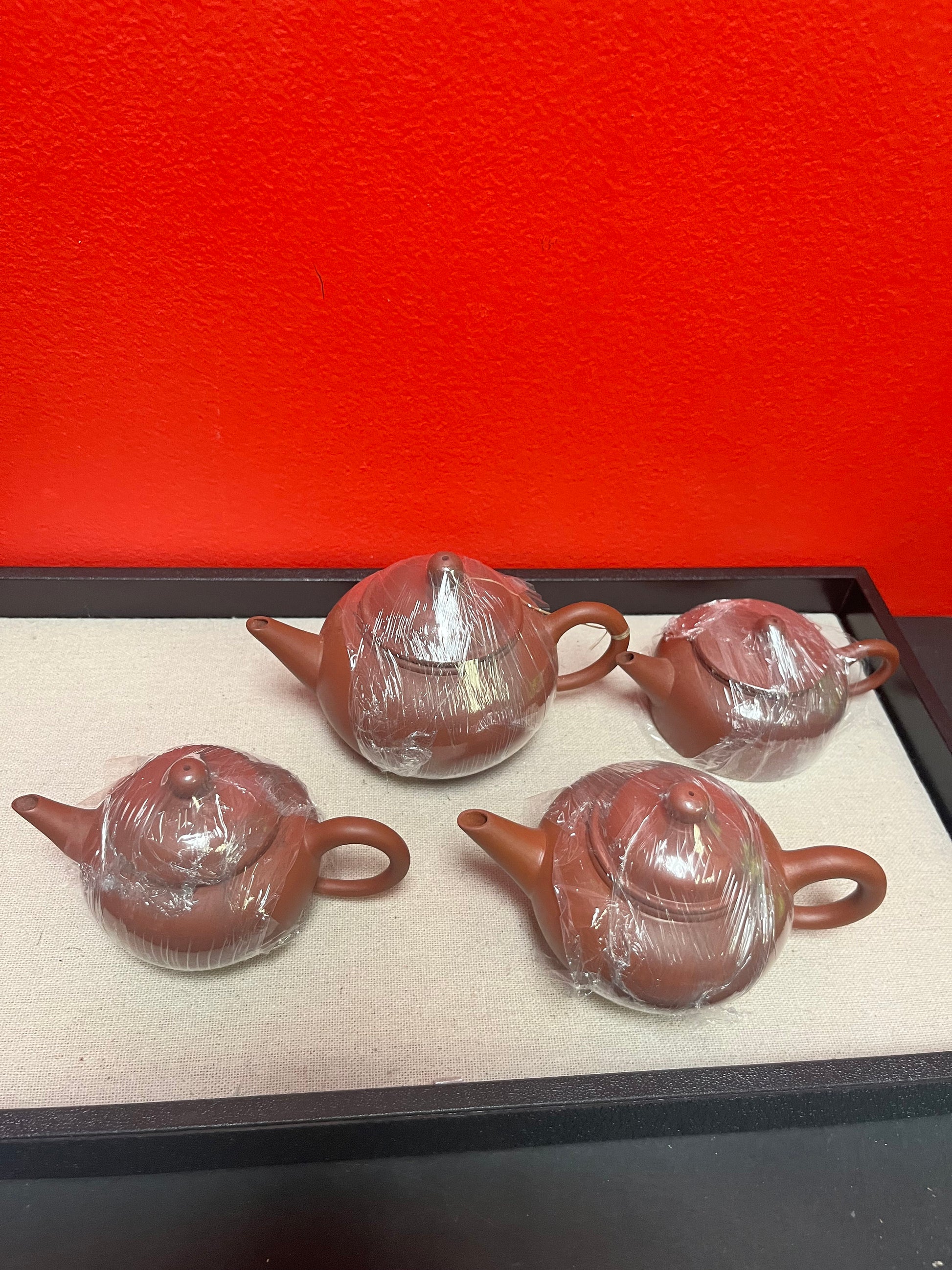 Lot of four beautiful Chinese purple clay yixing teapots price for all all signed perfect condition wow