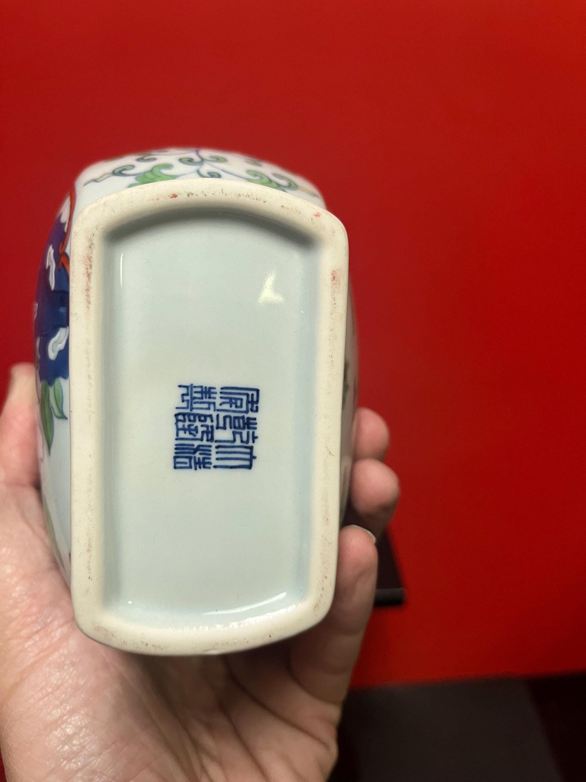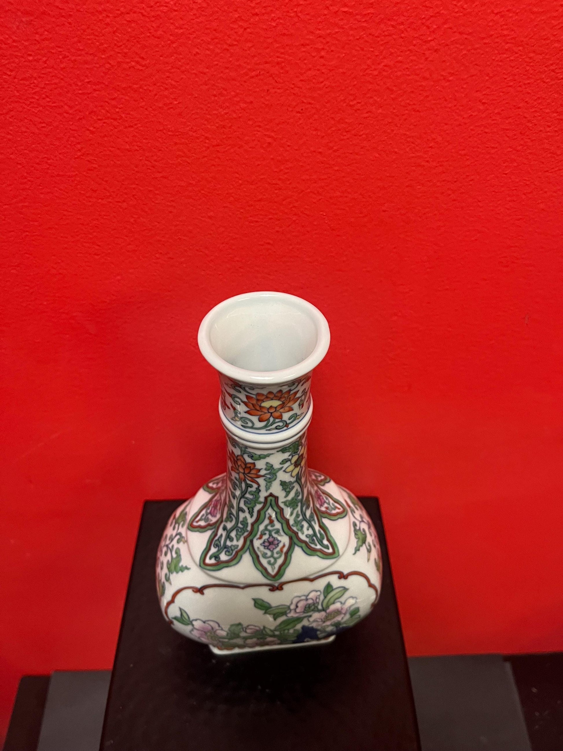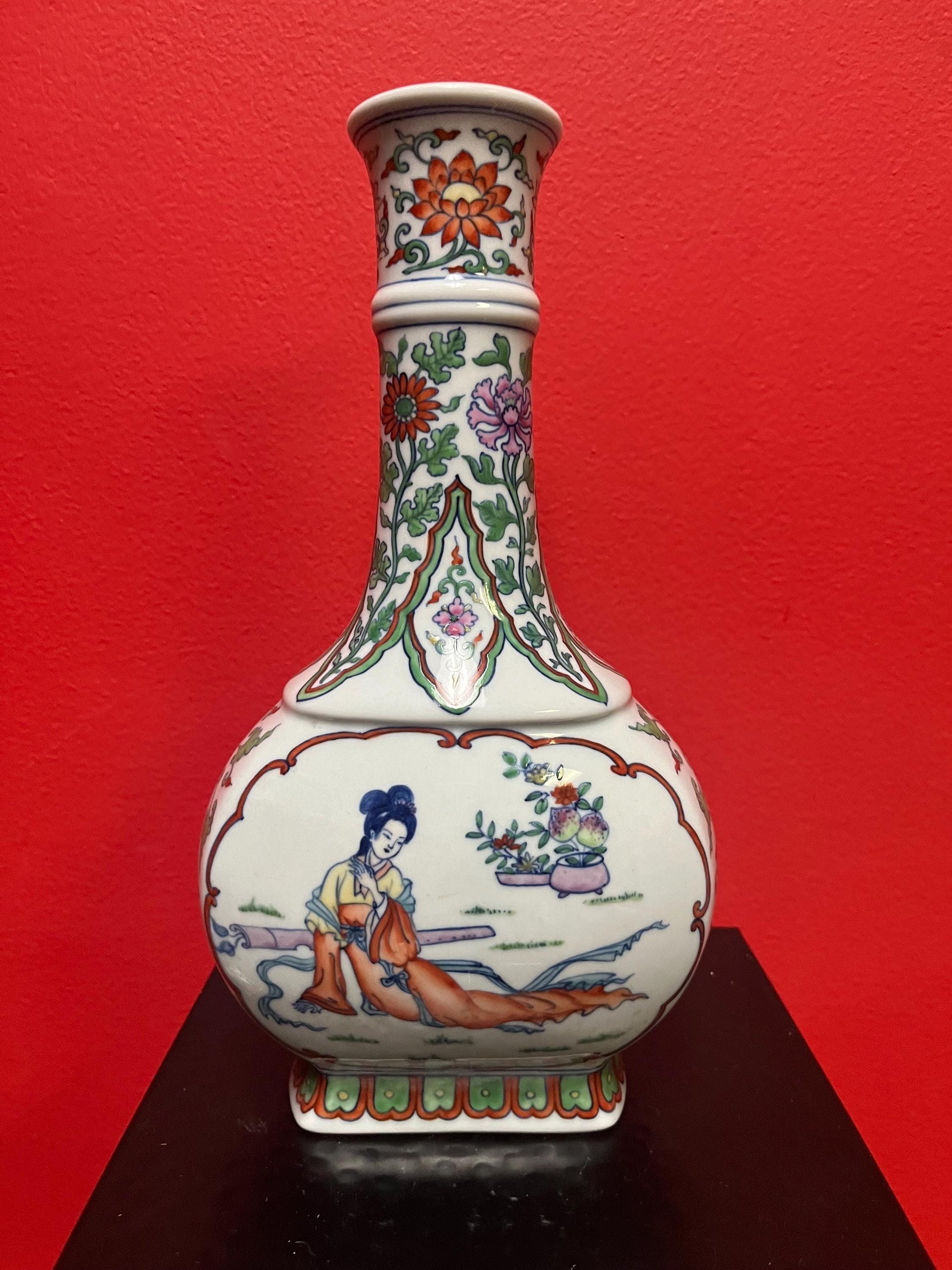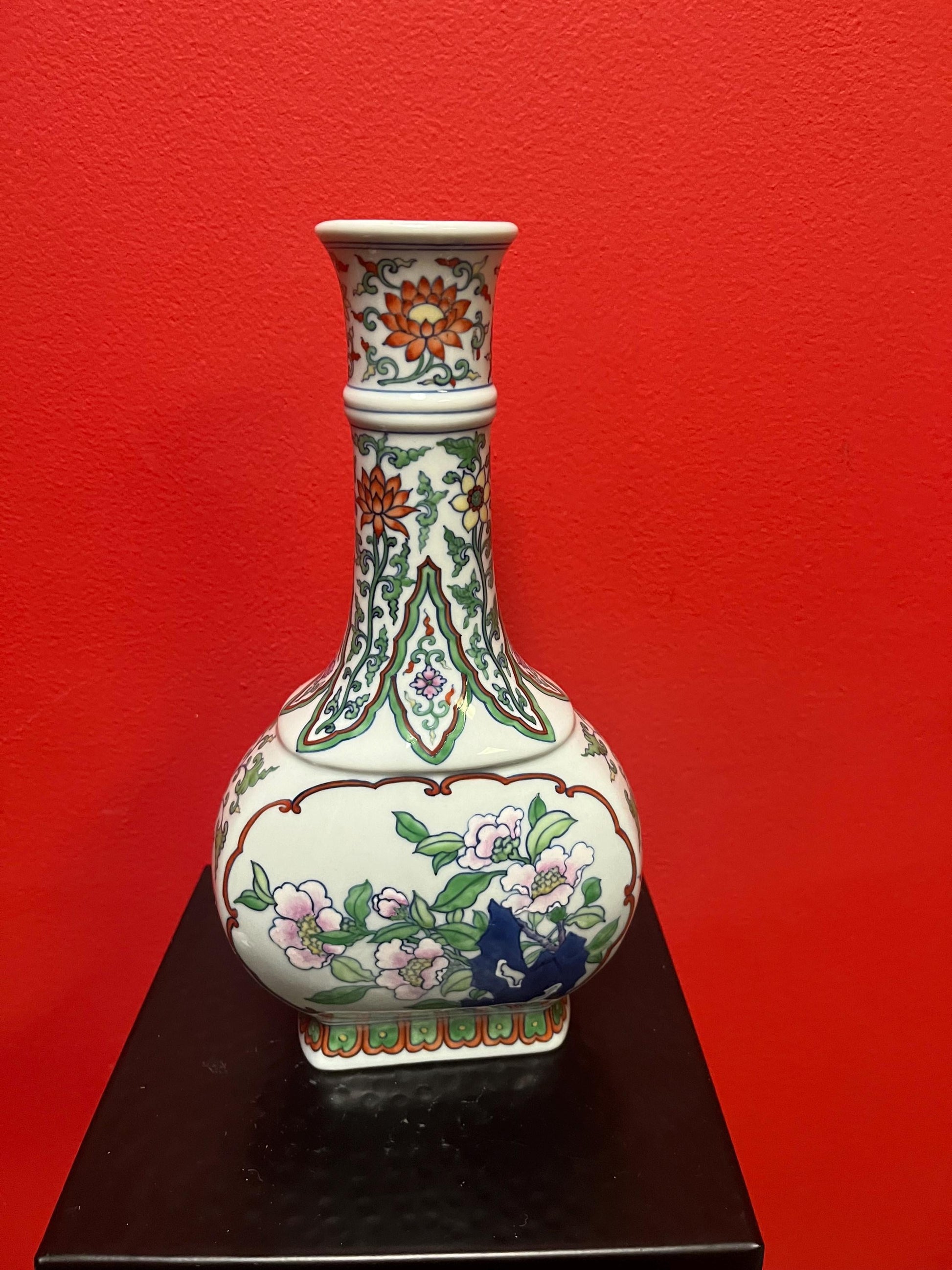 Lovely 10 inch tall signed Chinese porcelain vase with great unusual shape