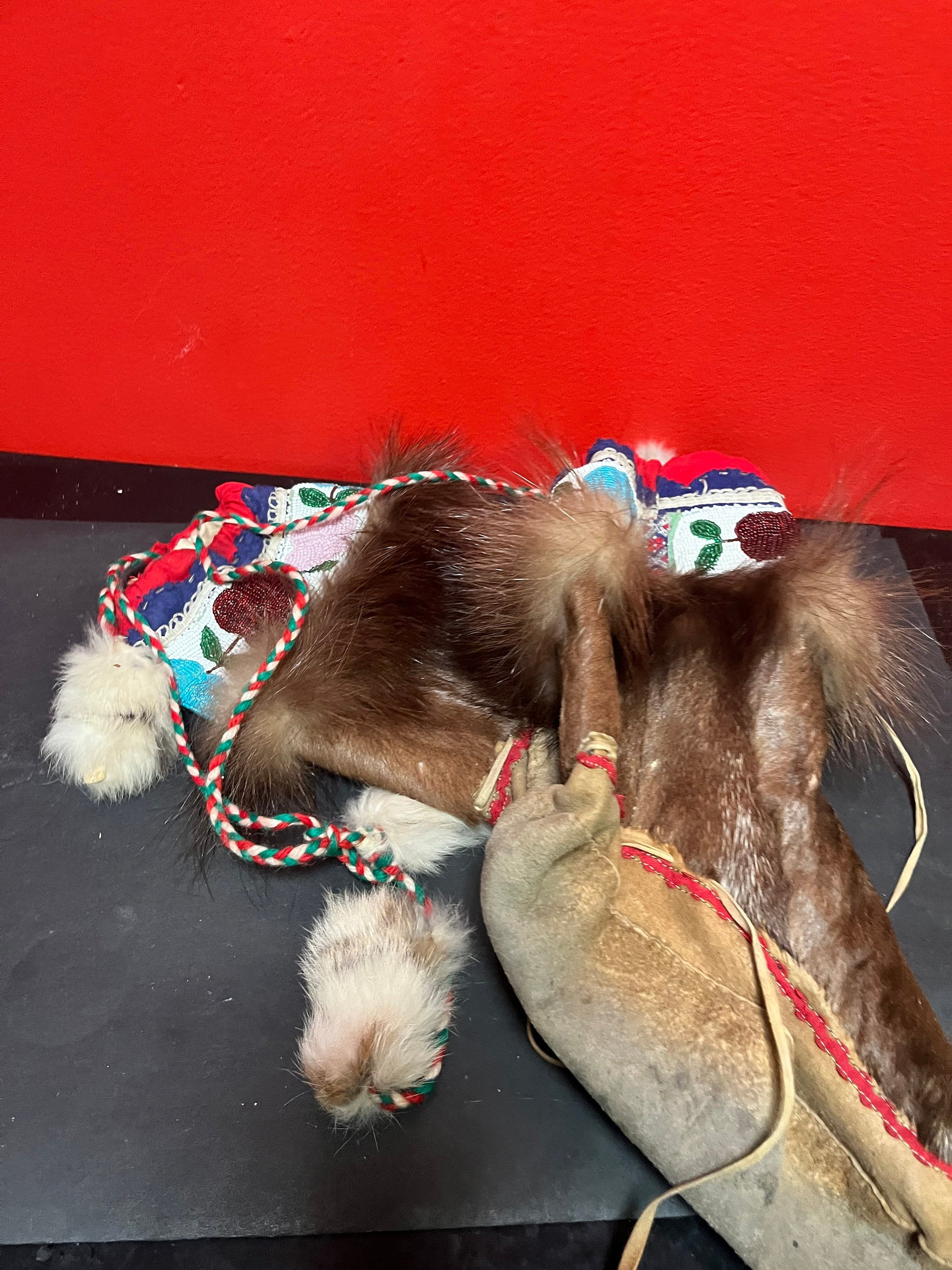 Lovely 10 x 13“ antique beaded indigenous, first nations, Pacific Northwest coast moccasin boots