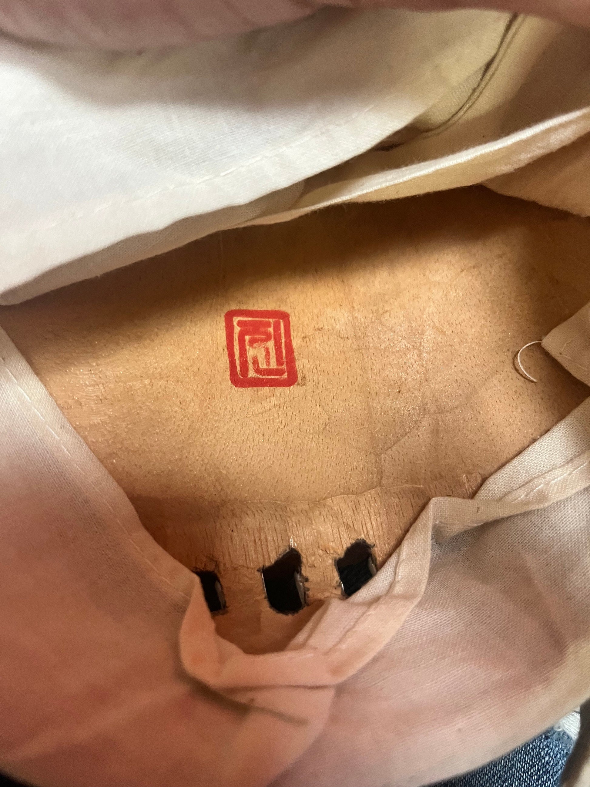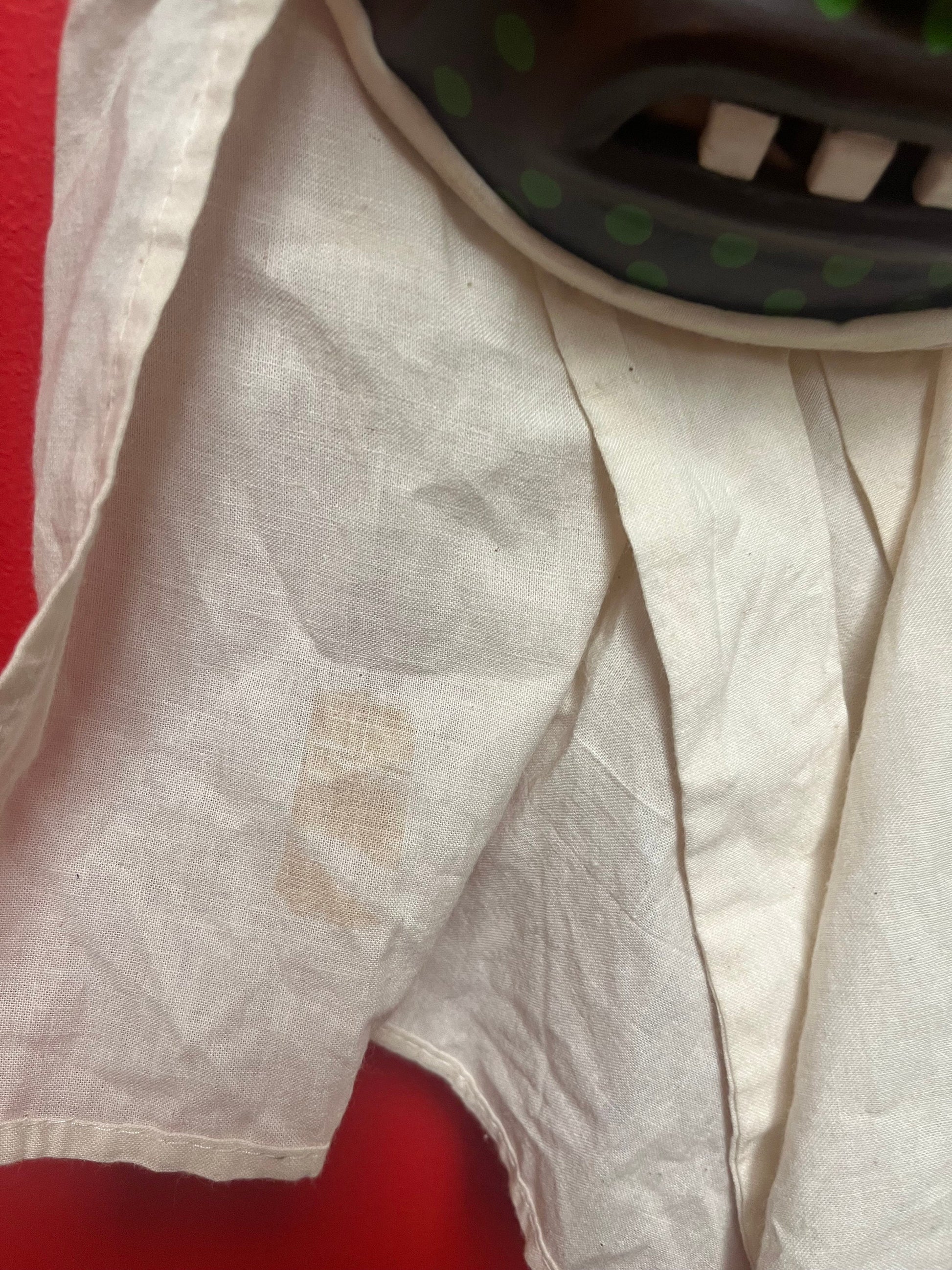 Lovely 10 x 7 Korean vintage signed wooden drama mask with fabric ready to hang Great colour and design