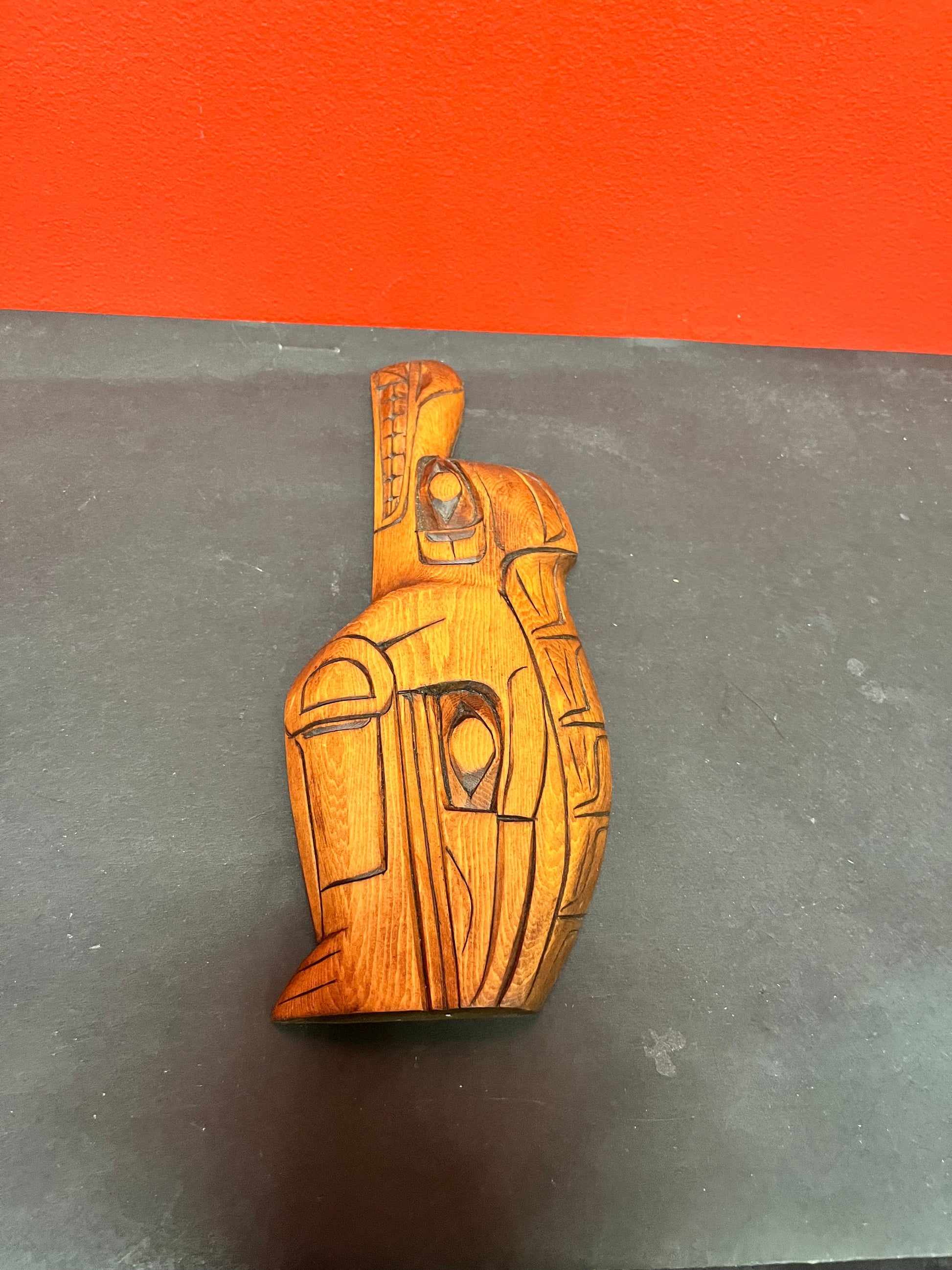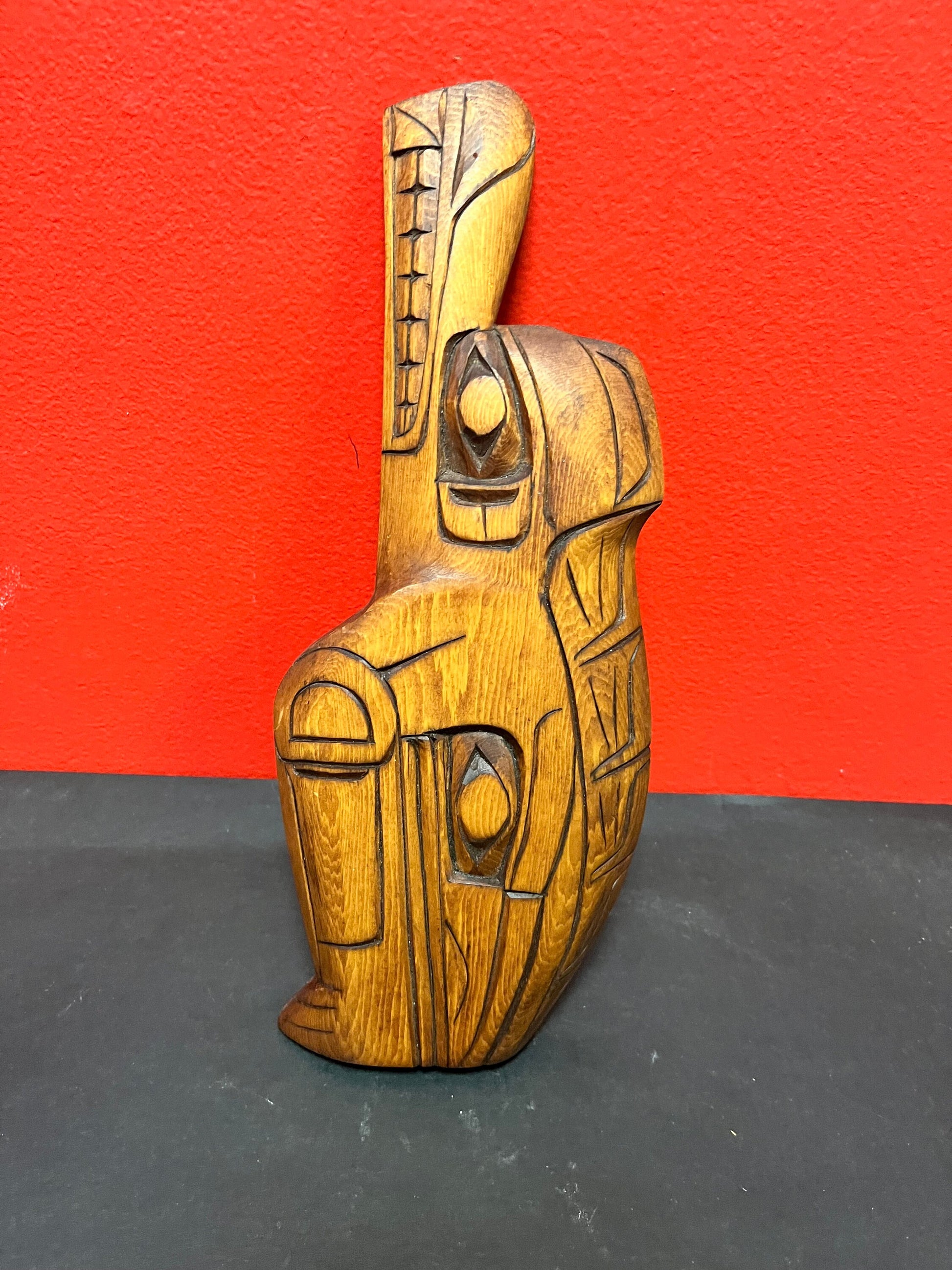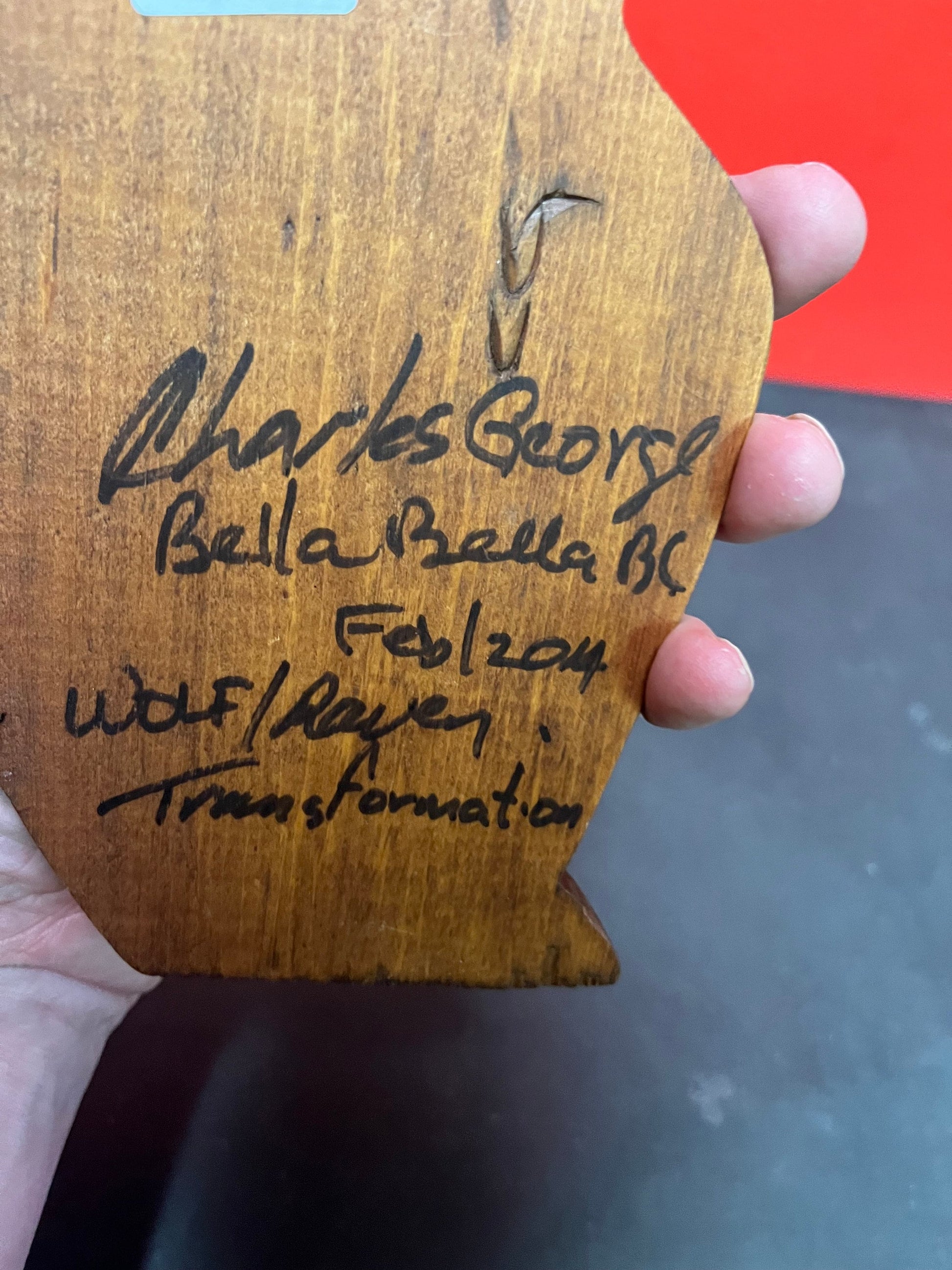 Lovely 11 inch indigenous first nations wolf raven transformation by Charles George Coast Salish art needs a hanger