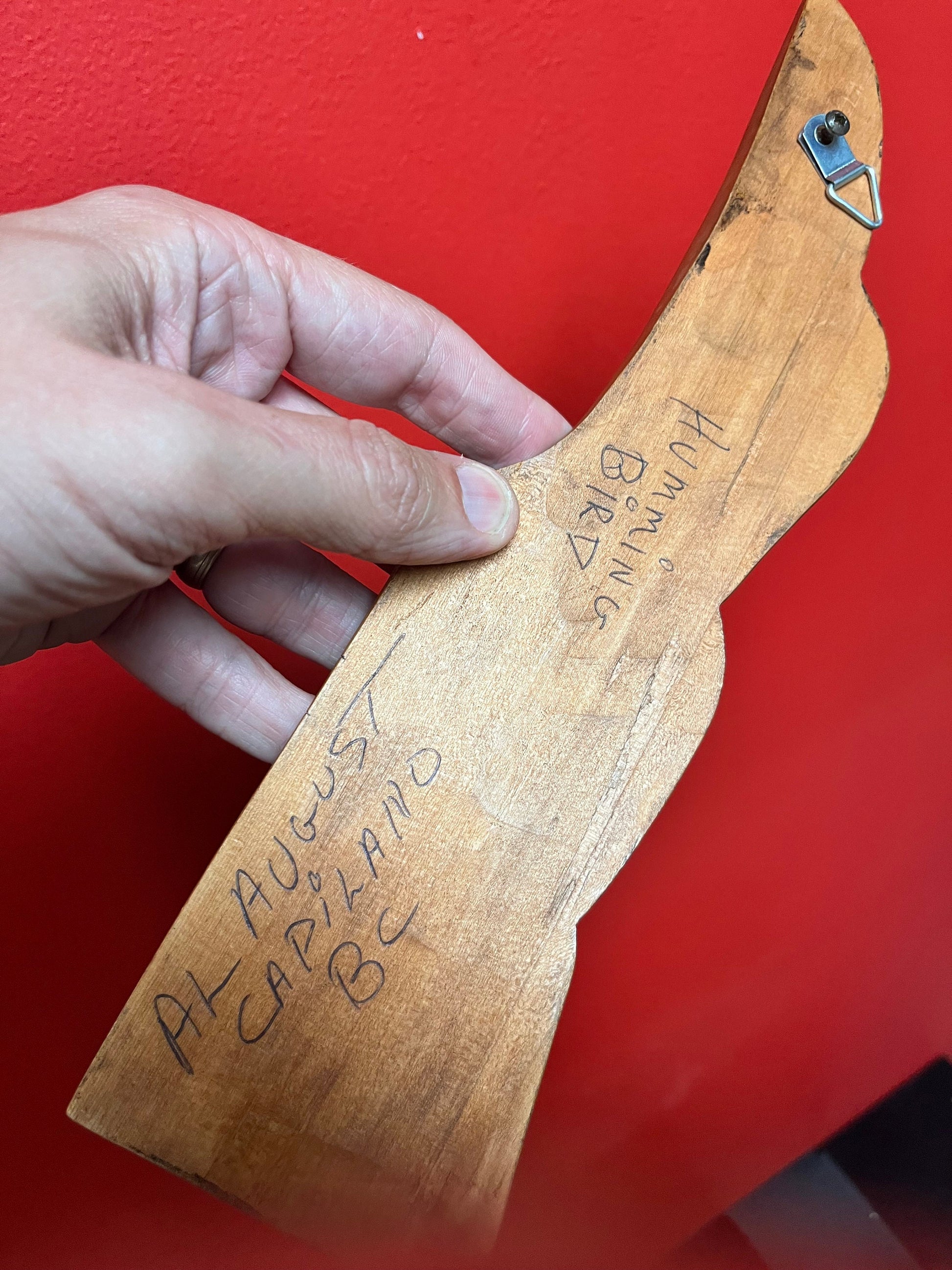 Lovely 11 inches tall indigenous First Nations pacific northwest coast signed cedar hummingbird — lovely gift