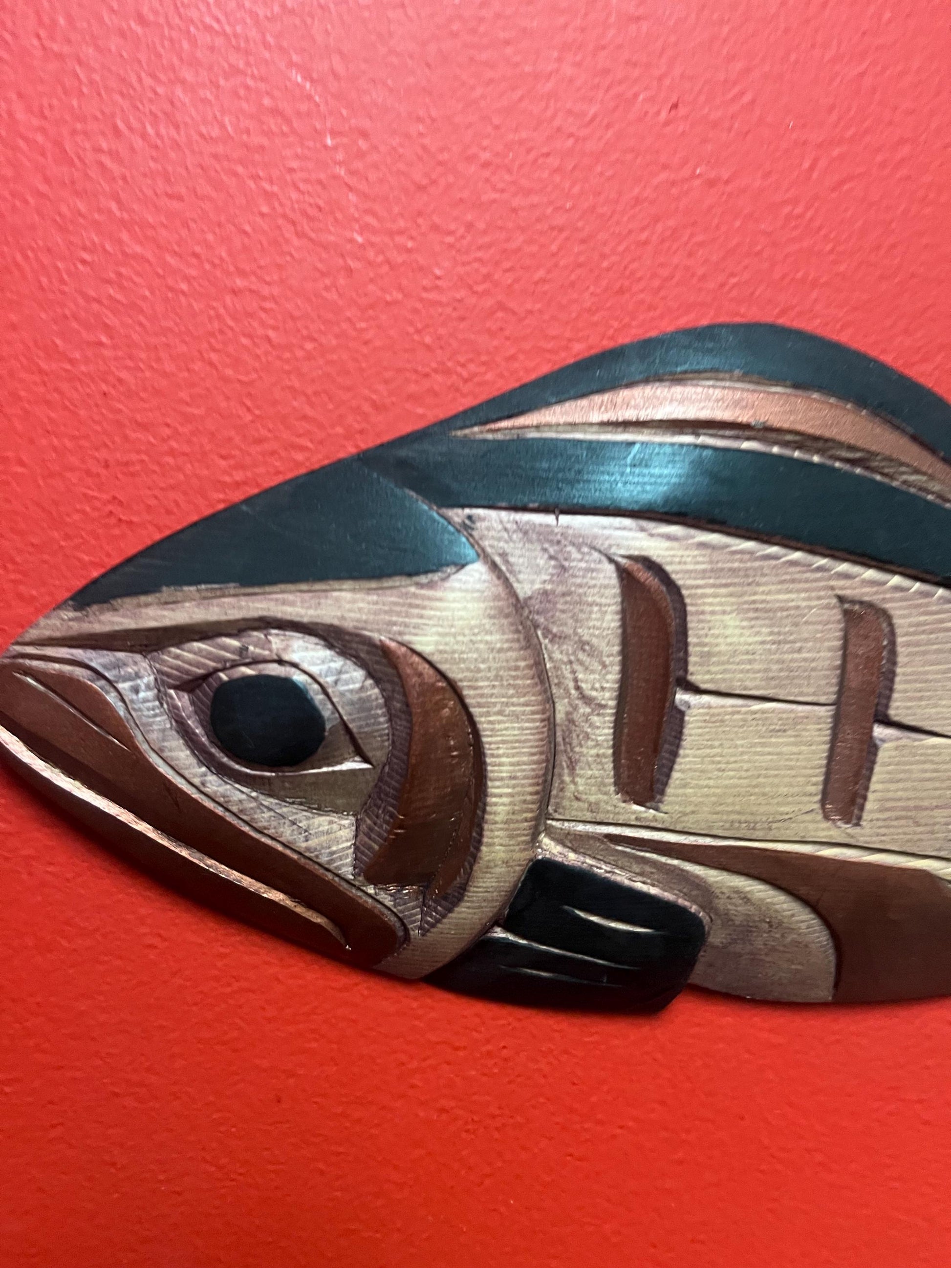 Lovely 12 inch long Charles George salmon plaque ready to hang - indigenous first nation Pacific Northwest Coast beauty