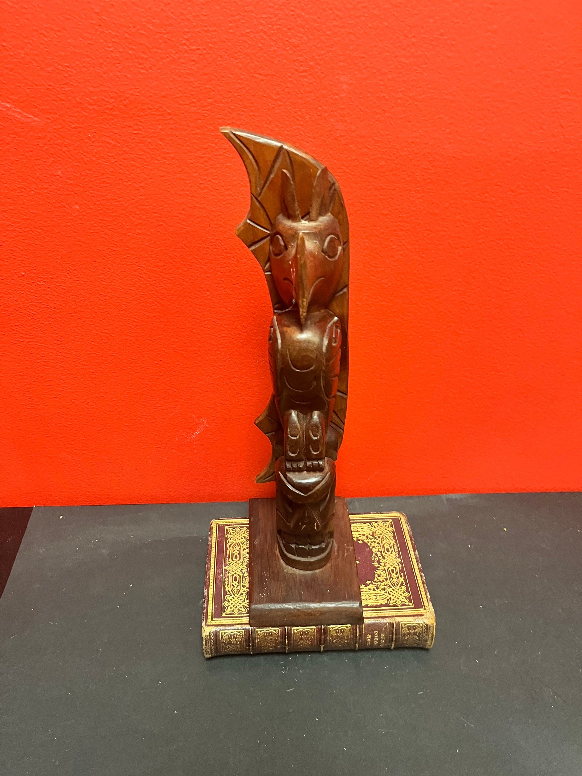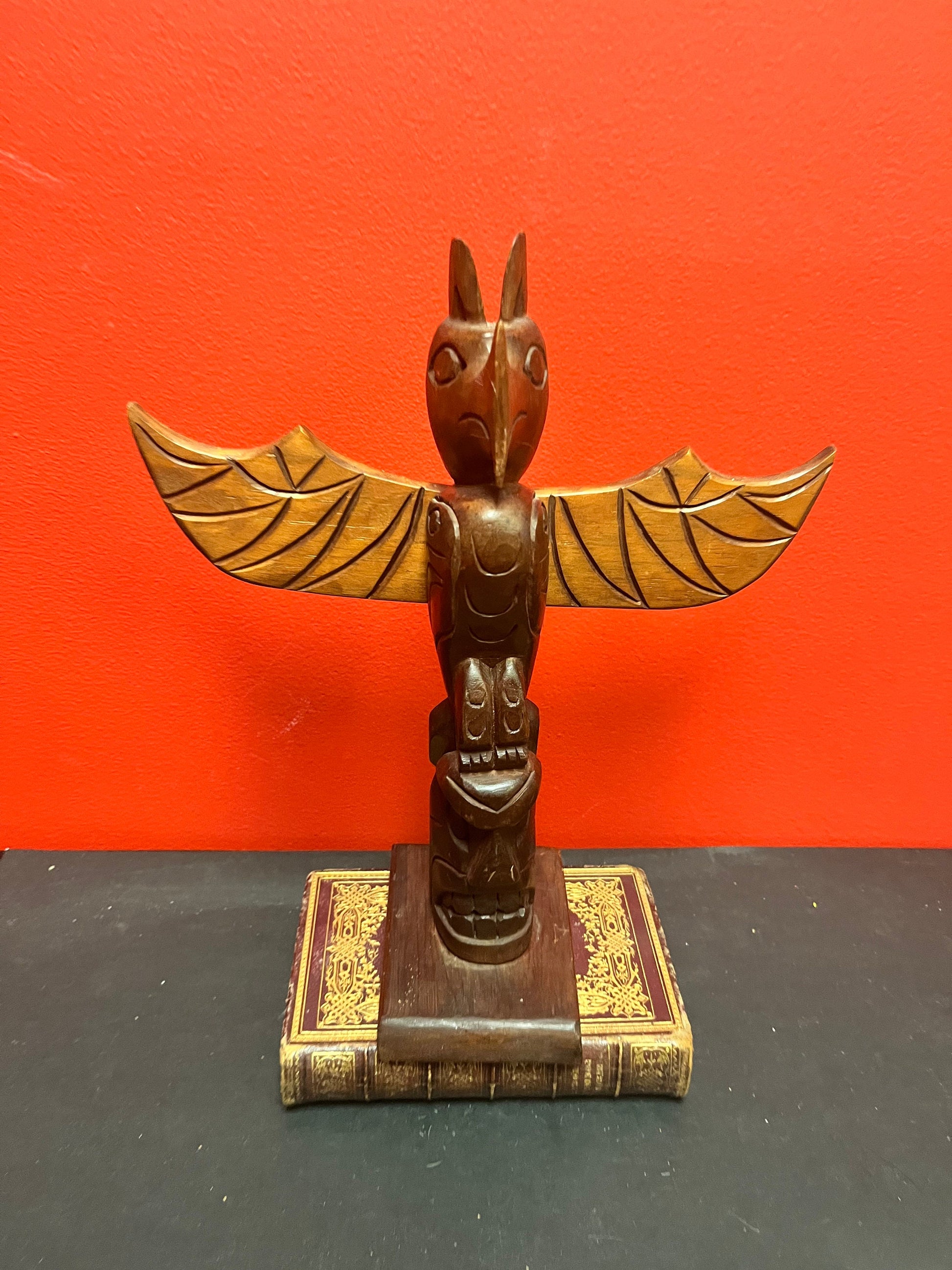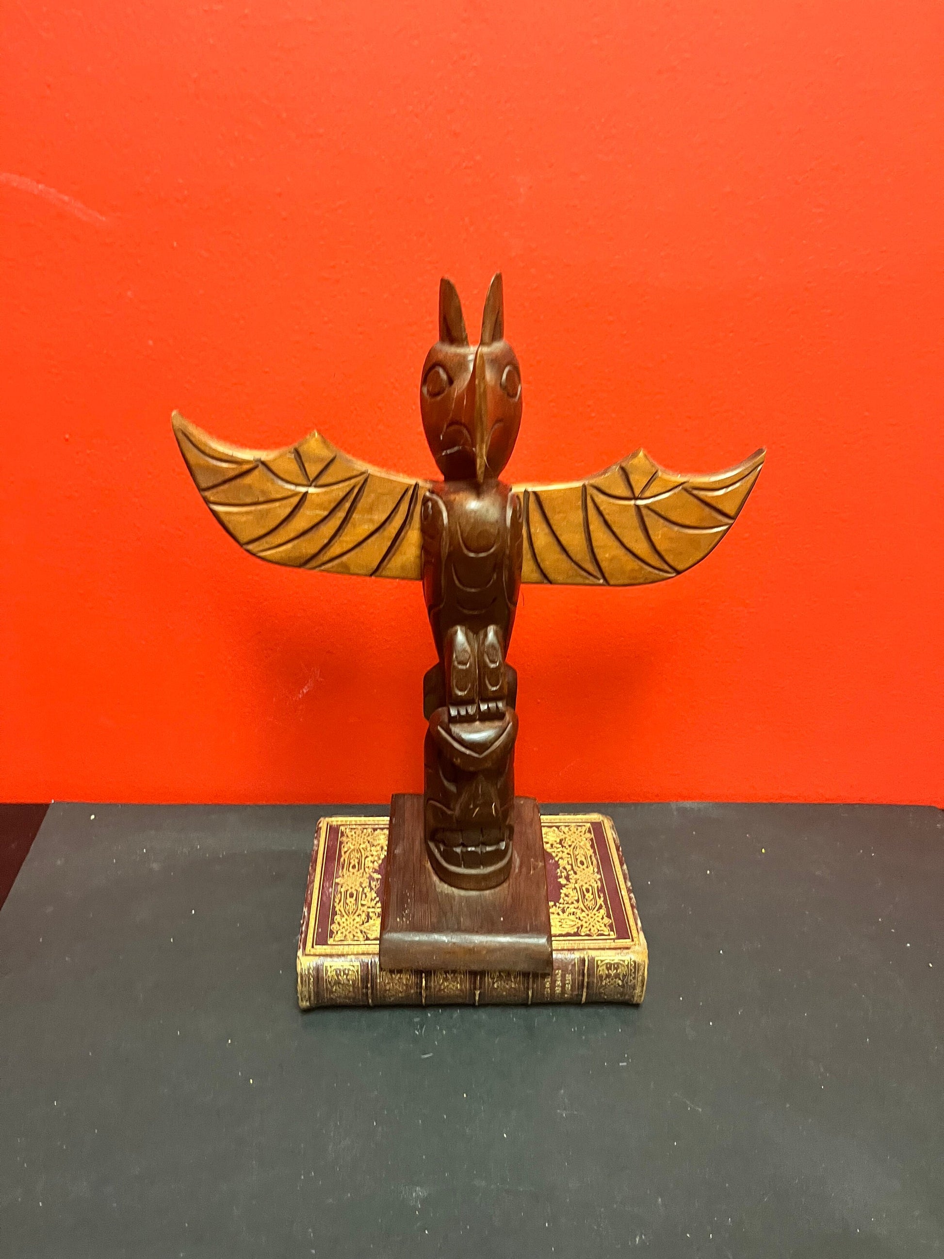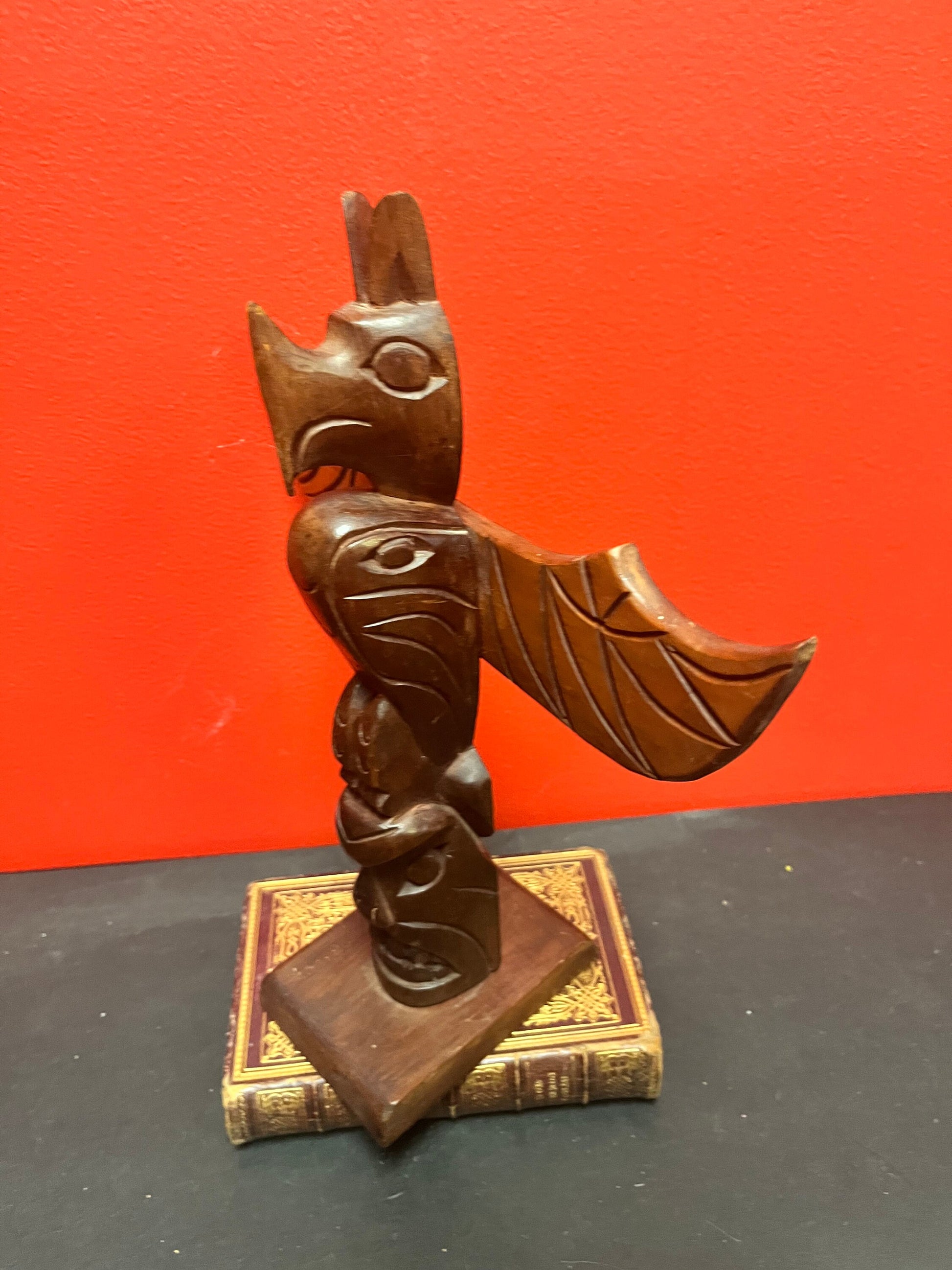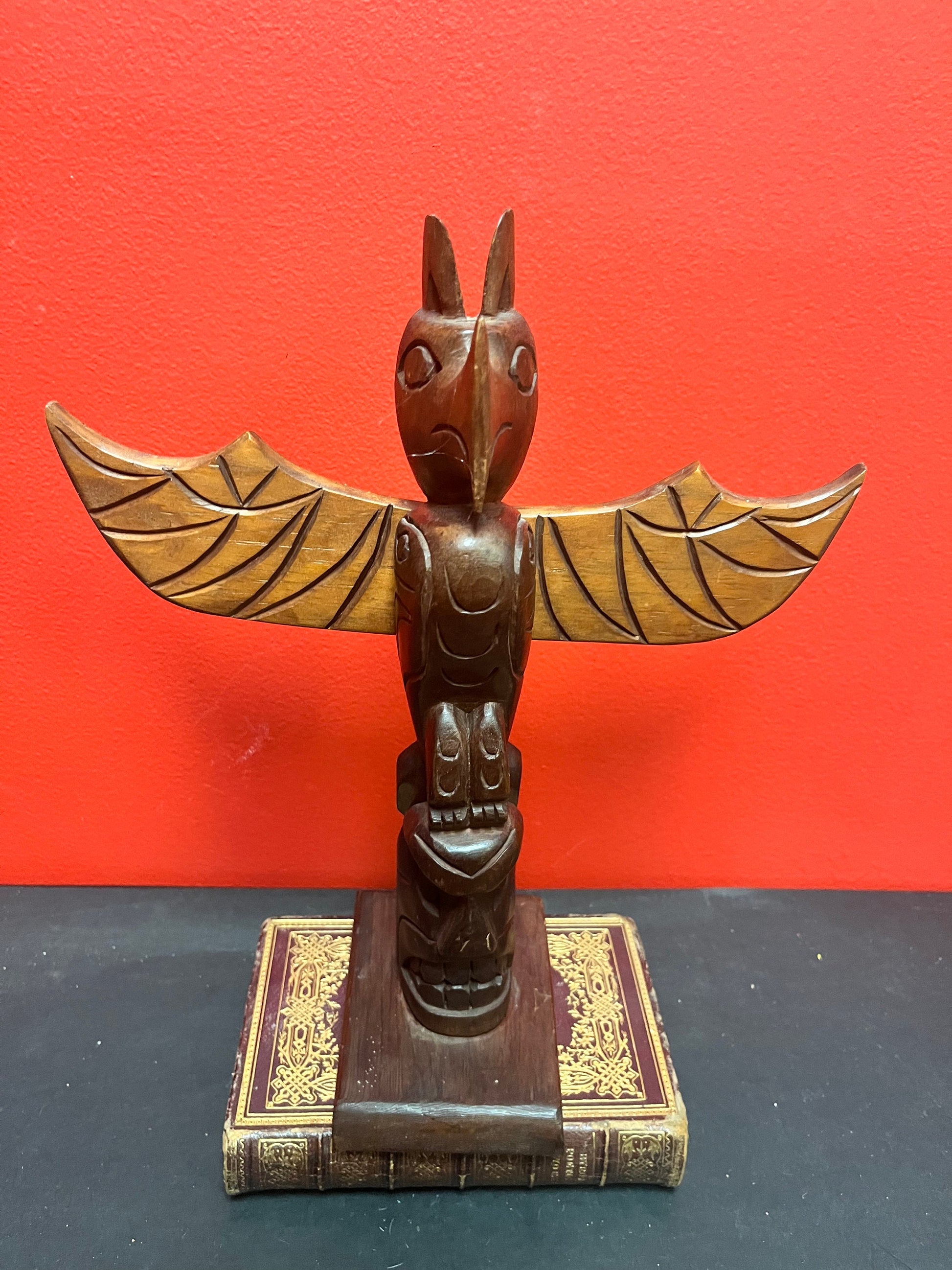 Lovely 12 x 10 inch wide cedar Indigenous first nations pacific northwest coast signed totem pole lovely detail