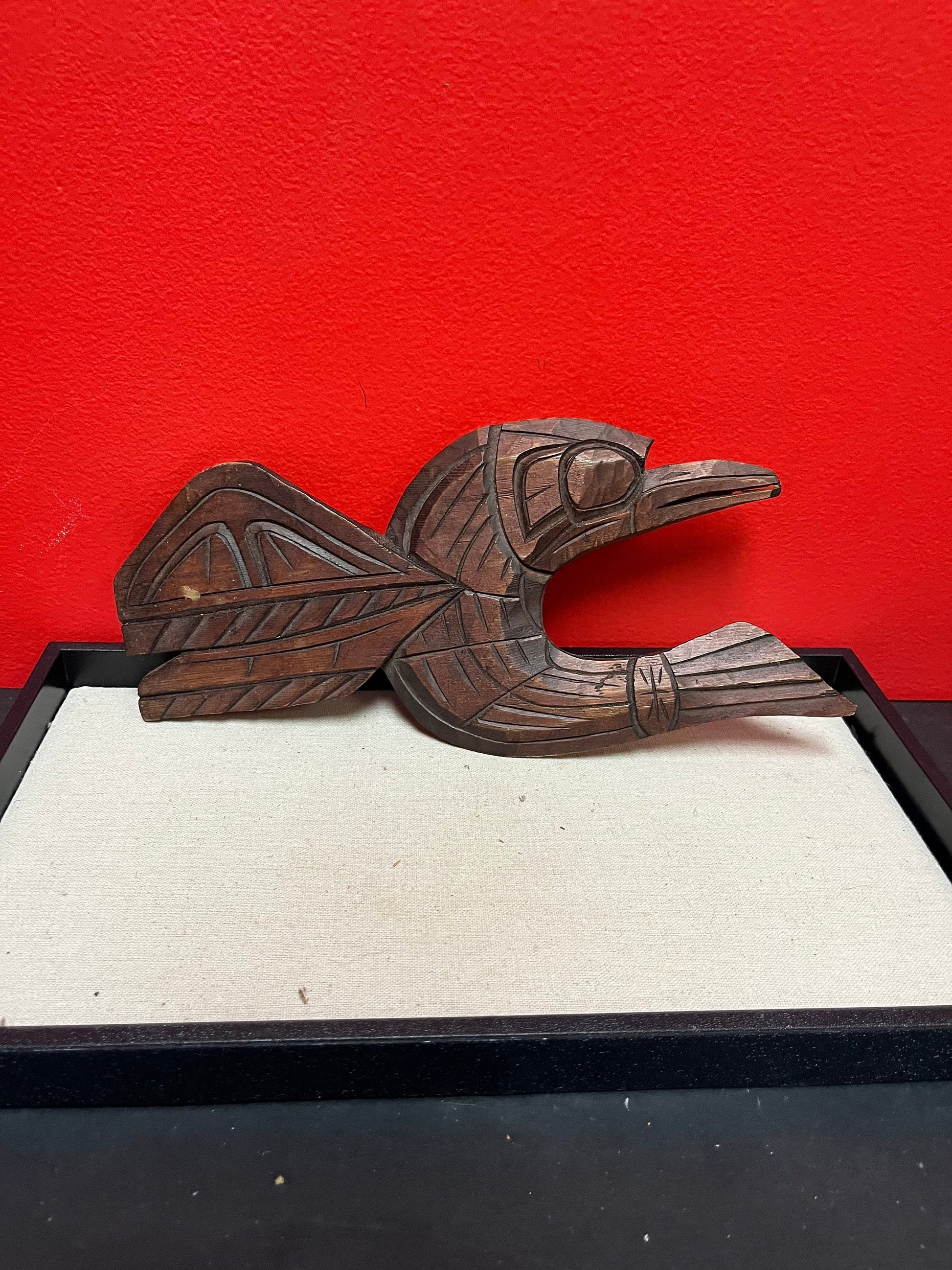 Lovely 12 x 6“ high indigenous First Nations pacific northwest coast hummingbird - signed on back needs hanger