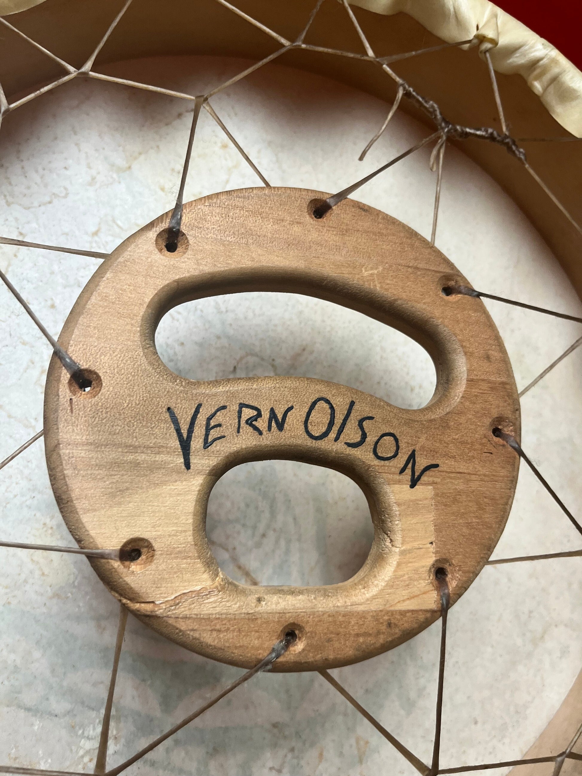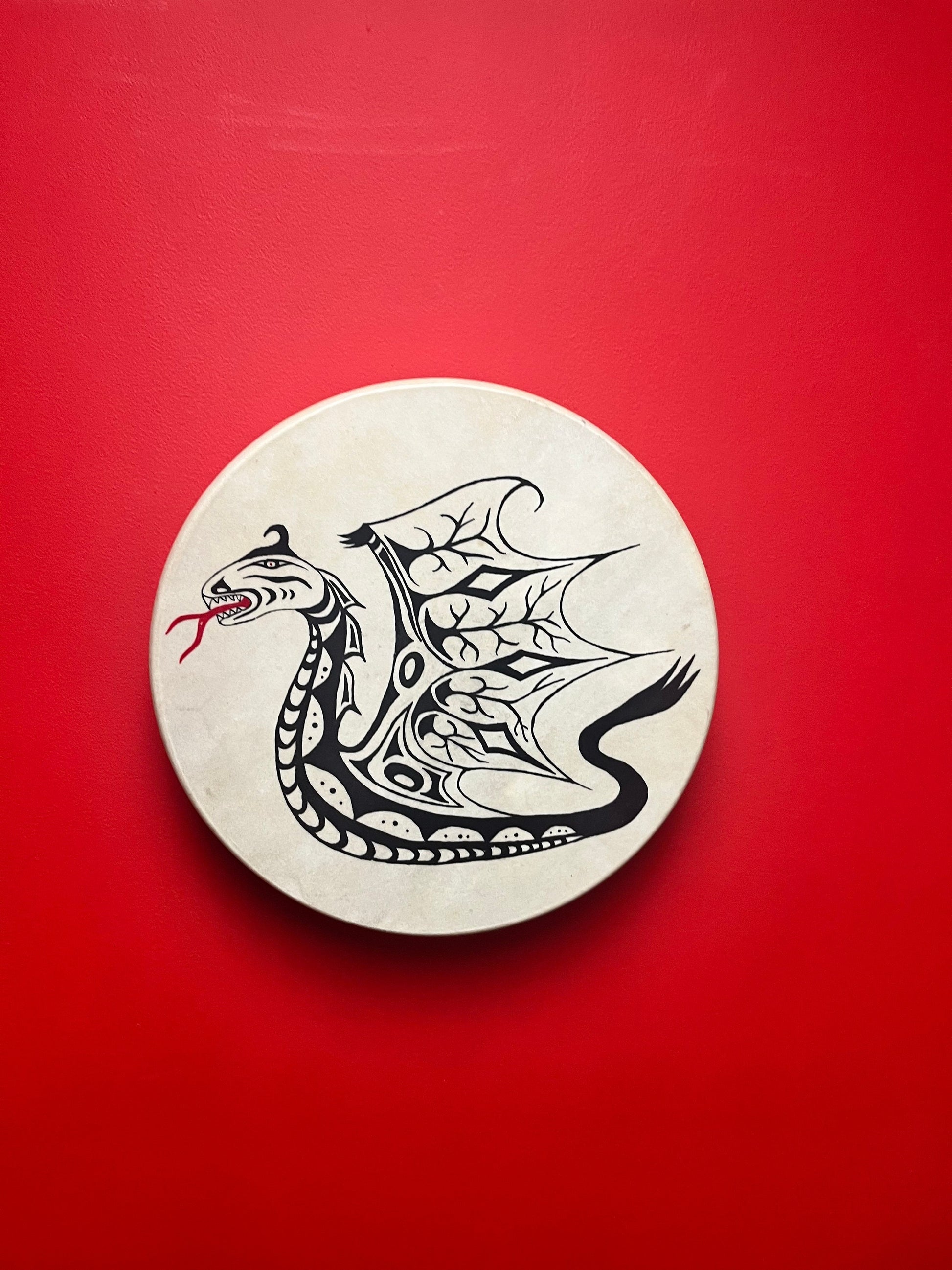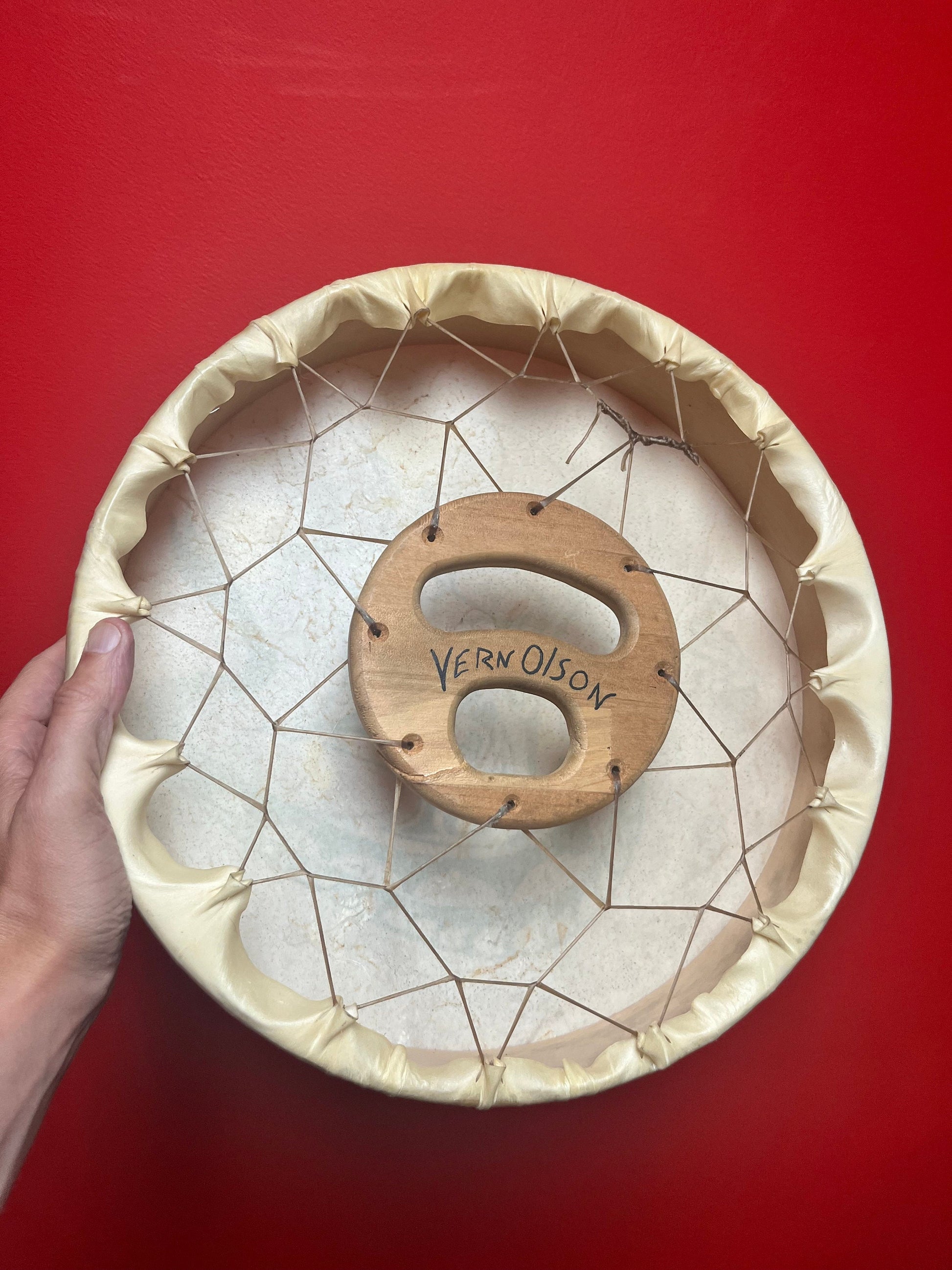 Lovely 14 inch indigenous first nations drum signed sea monster Vern Olson great condition and sound amazing gift