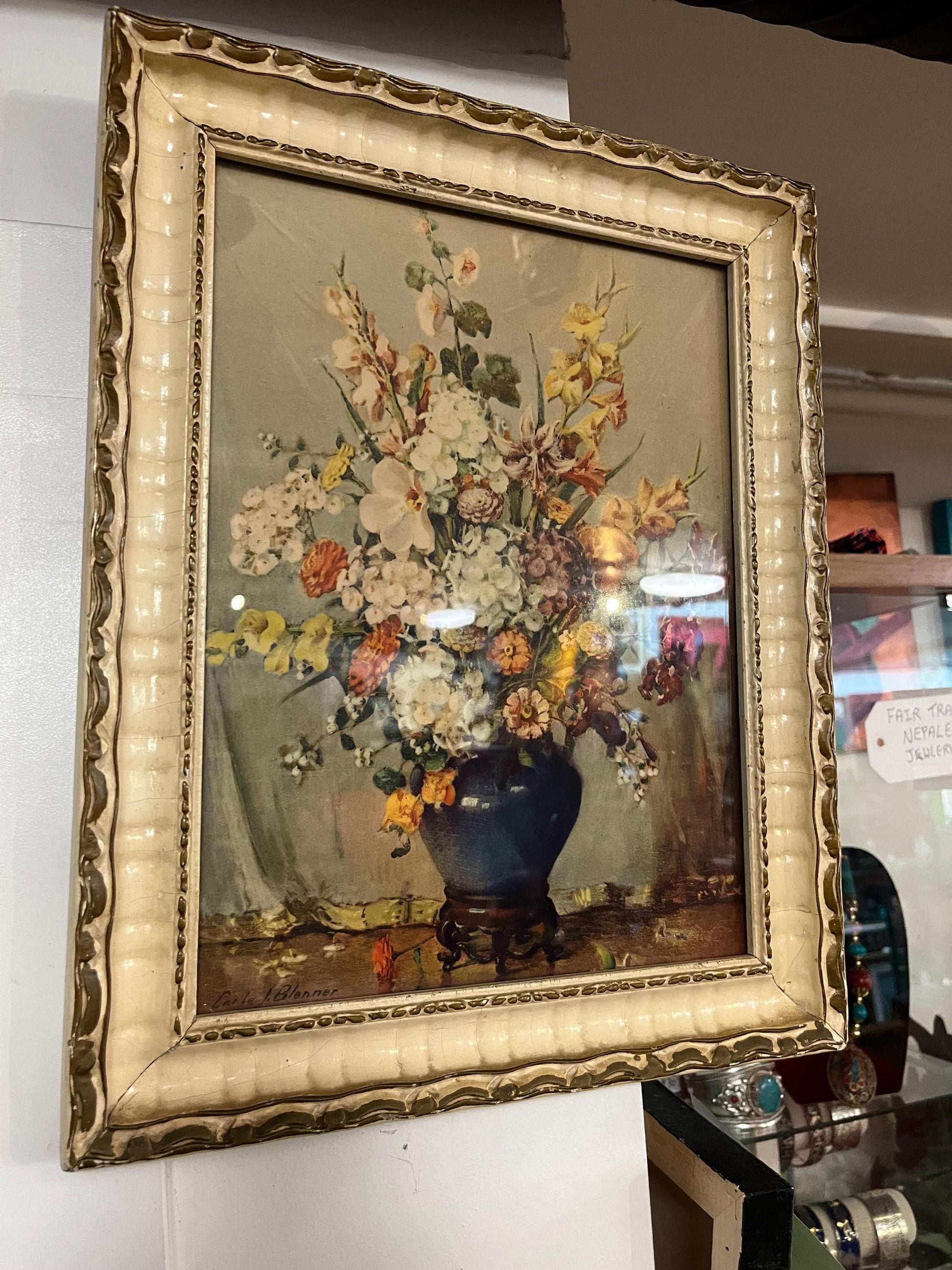Lovely 14 x 12 vintage signed print in frame floral delight