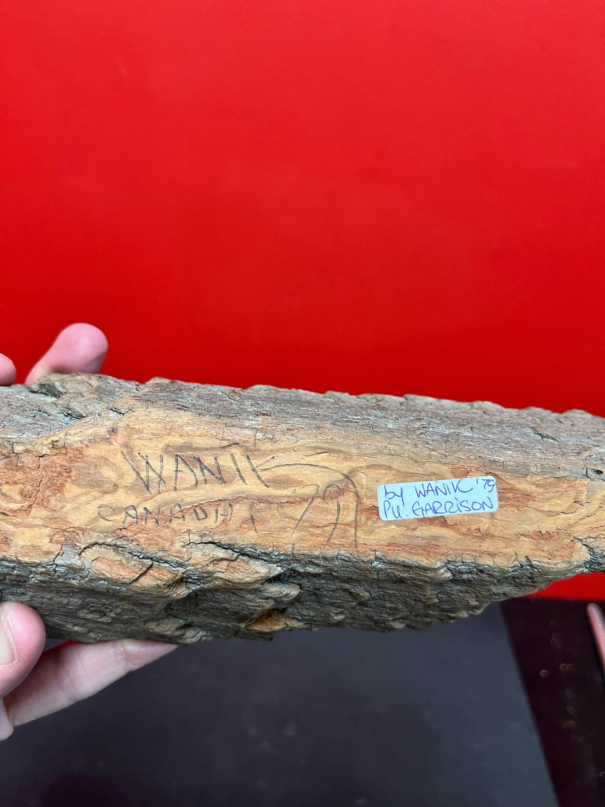 Lovely 17 x 3“ wide WANIK Garrison 1979 indigenous first nations Pacific northwest coast signed live Edge wood plaque needs hanger