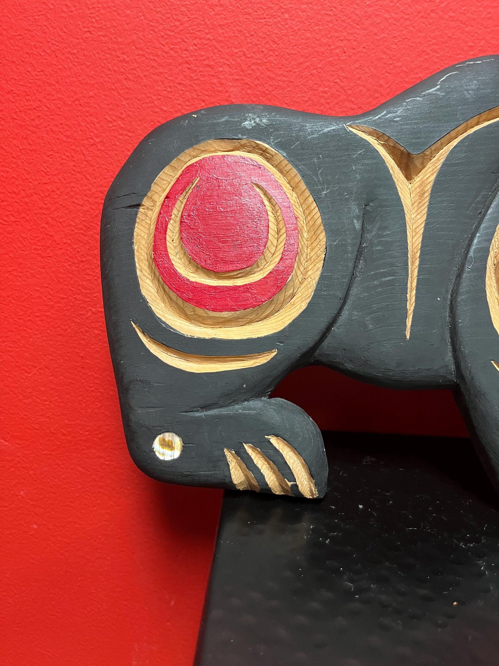Lovely 17 x 9 high indigenous first nations Pacific northwest Coast Bear with abalone great detail and fabulous look but unsigned