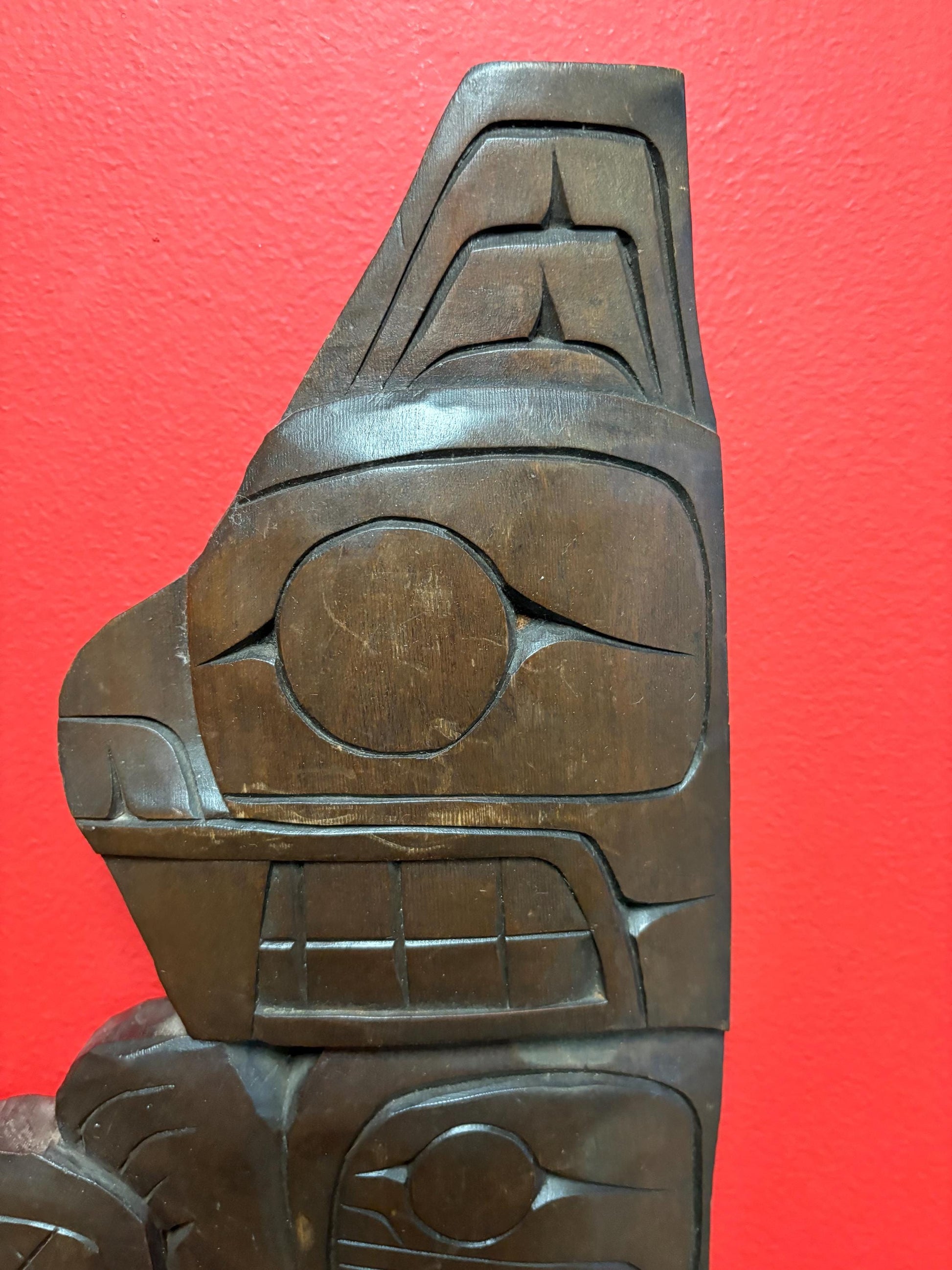Lovely 19 inch tall signed indigenous first nations Pacific Northwest Cedar transformation plaque RS