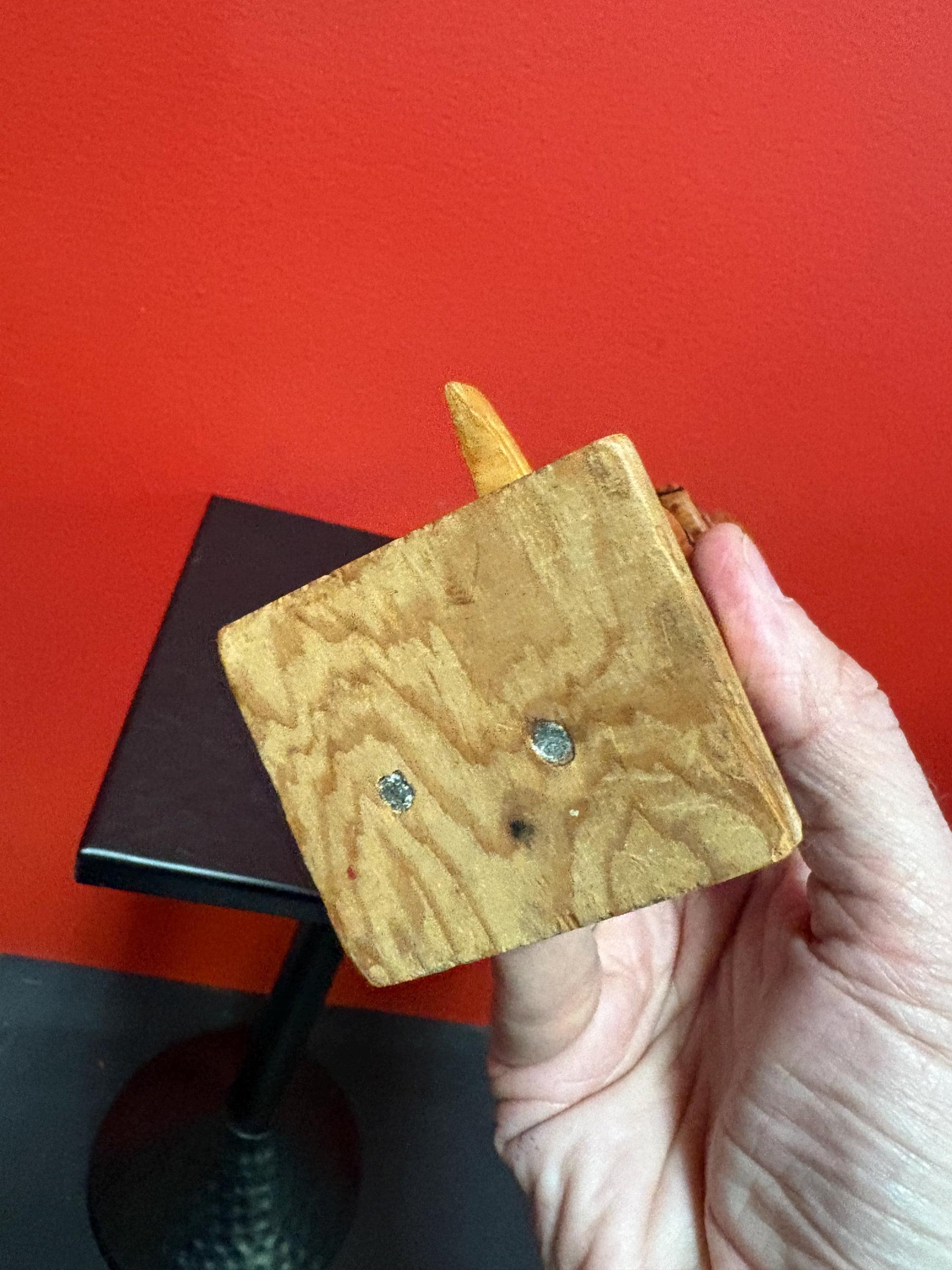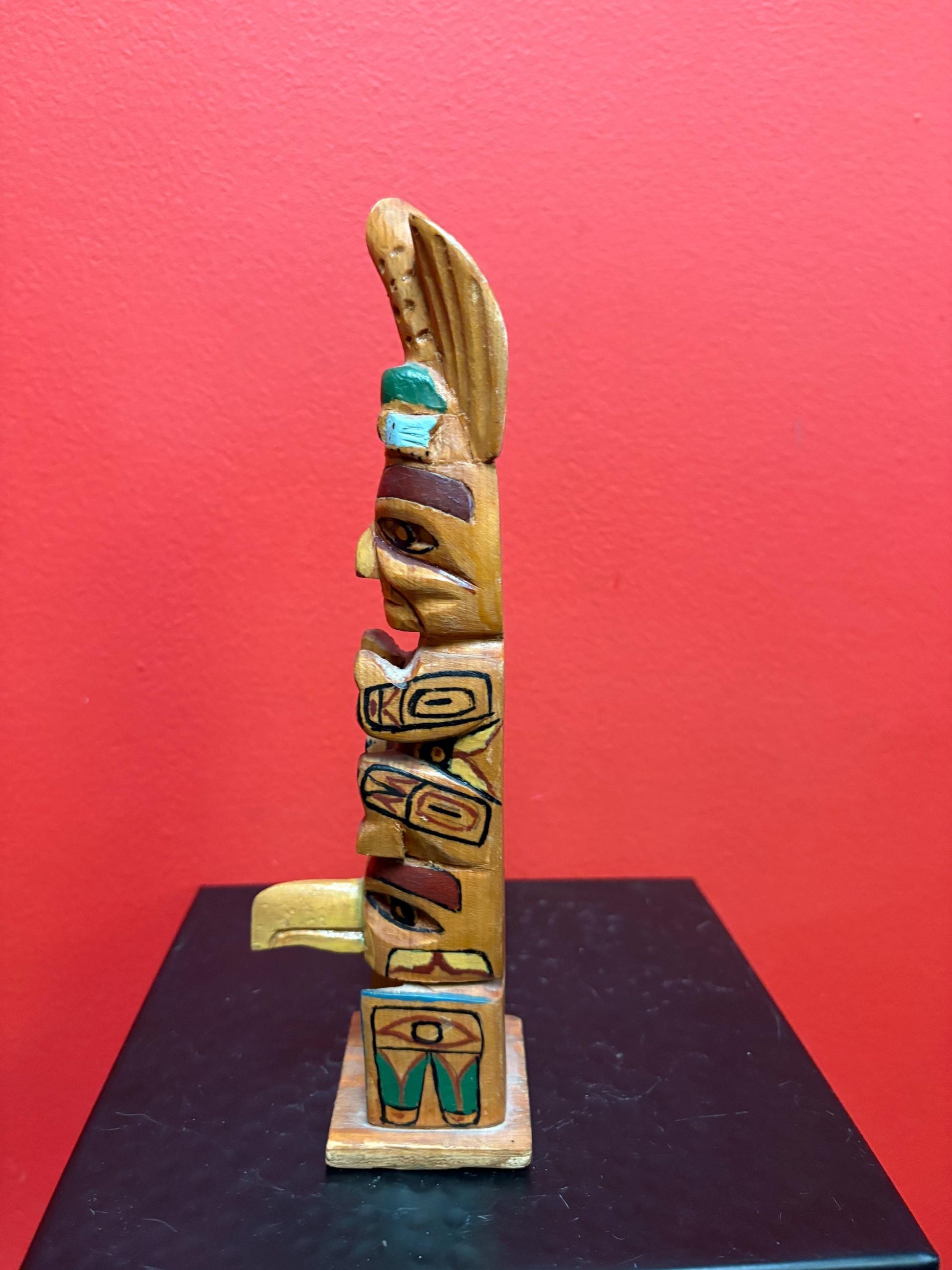 Lovely 1950s indigenous first nation, Pacific Northwest Coast polychrome painted totem pole with chip on top great value