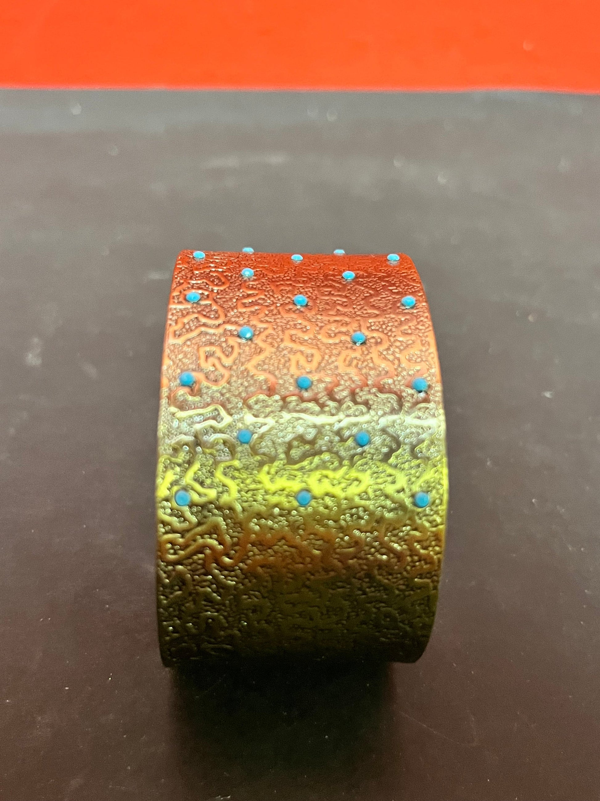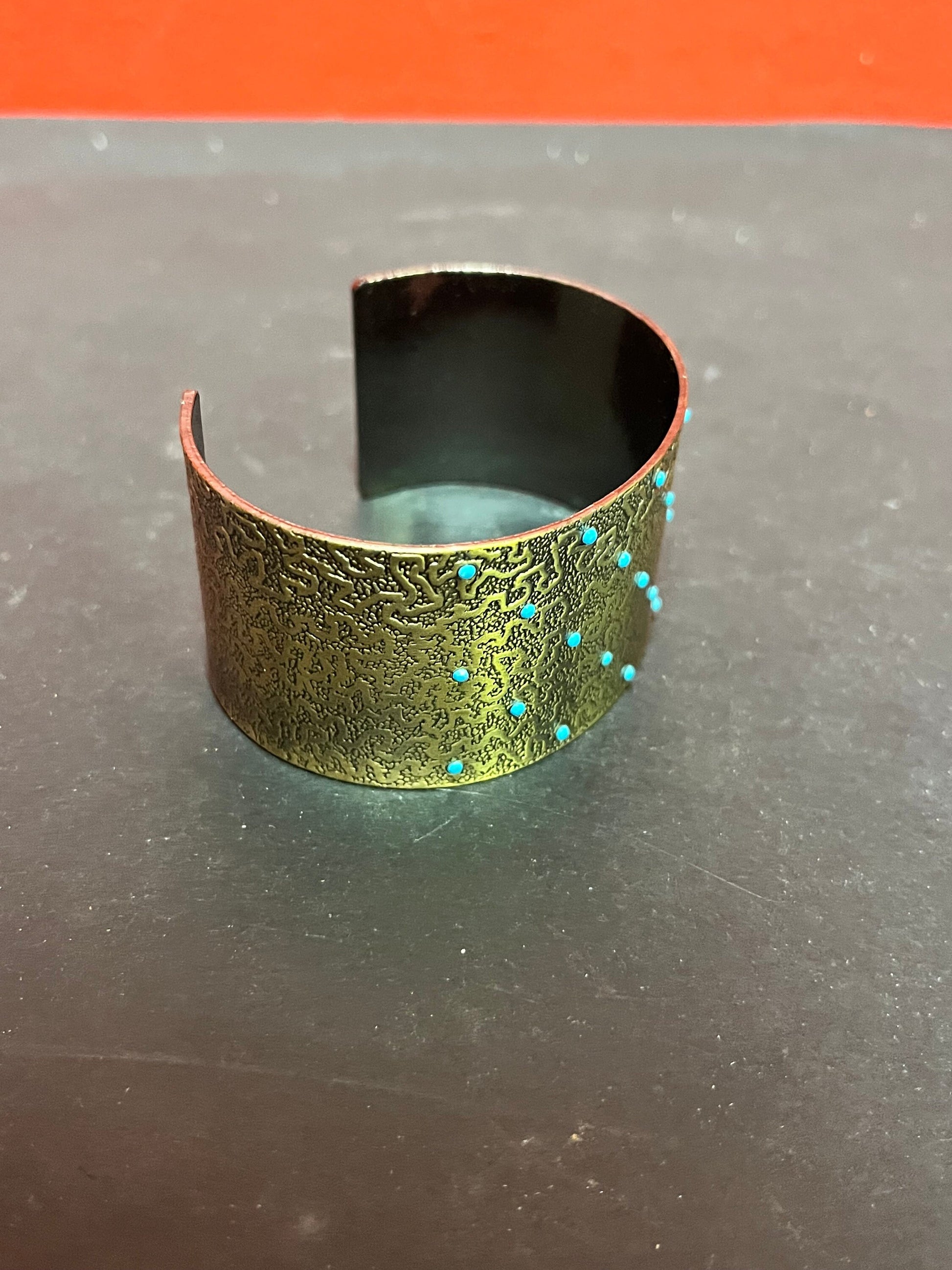 Lovely 2.5 inch wide metal and turquoise bracelet Cuff