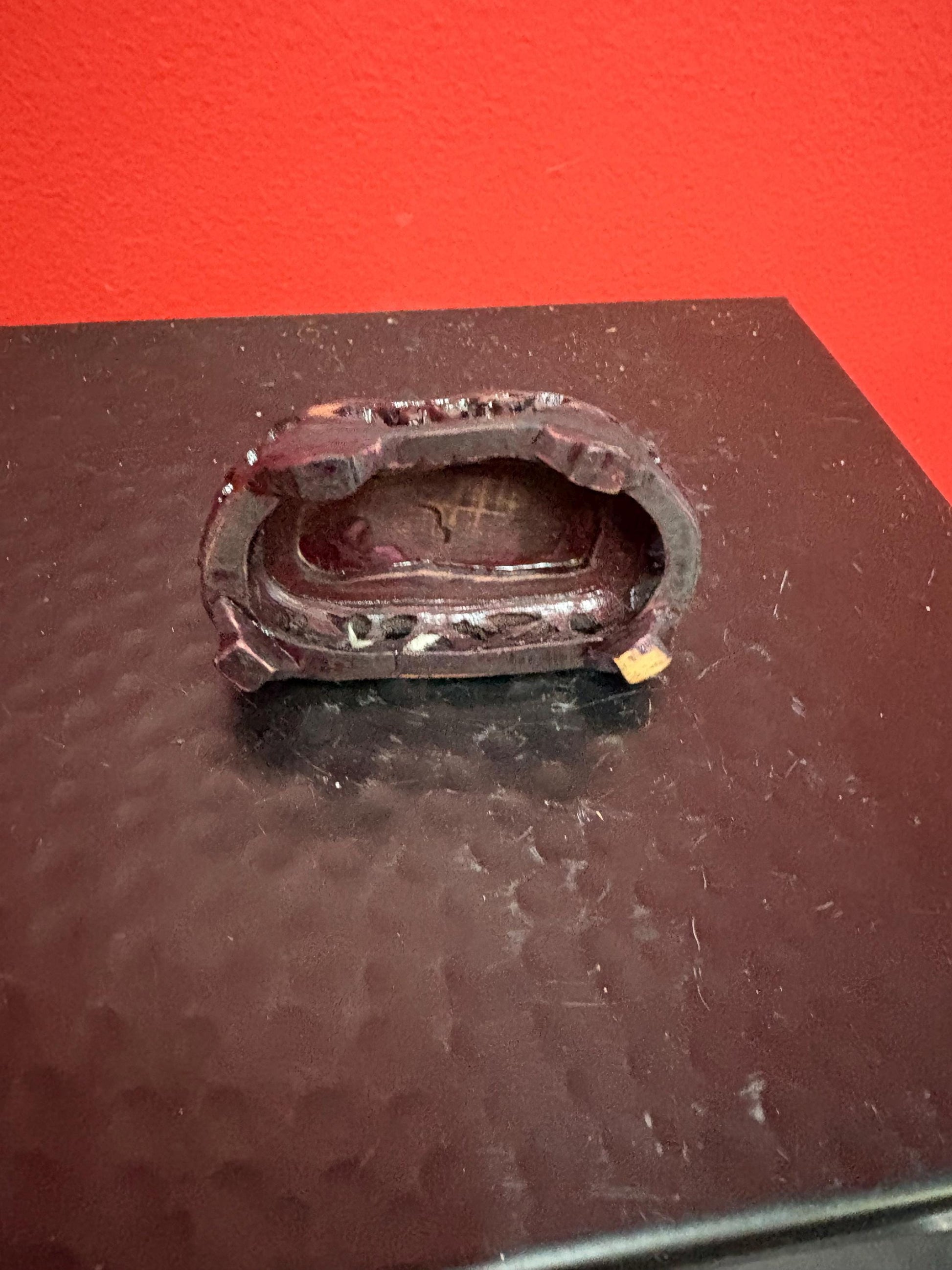 Lovely 2 inch long Chinese rock crystal horse on carved wooden stand