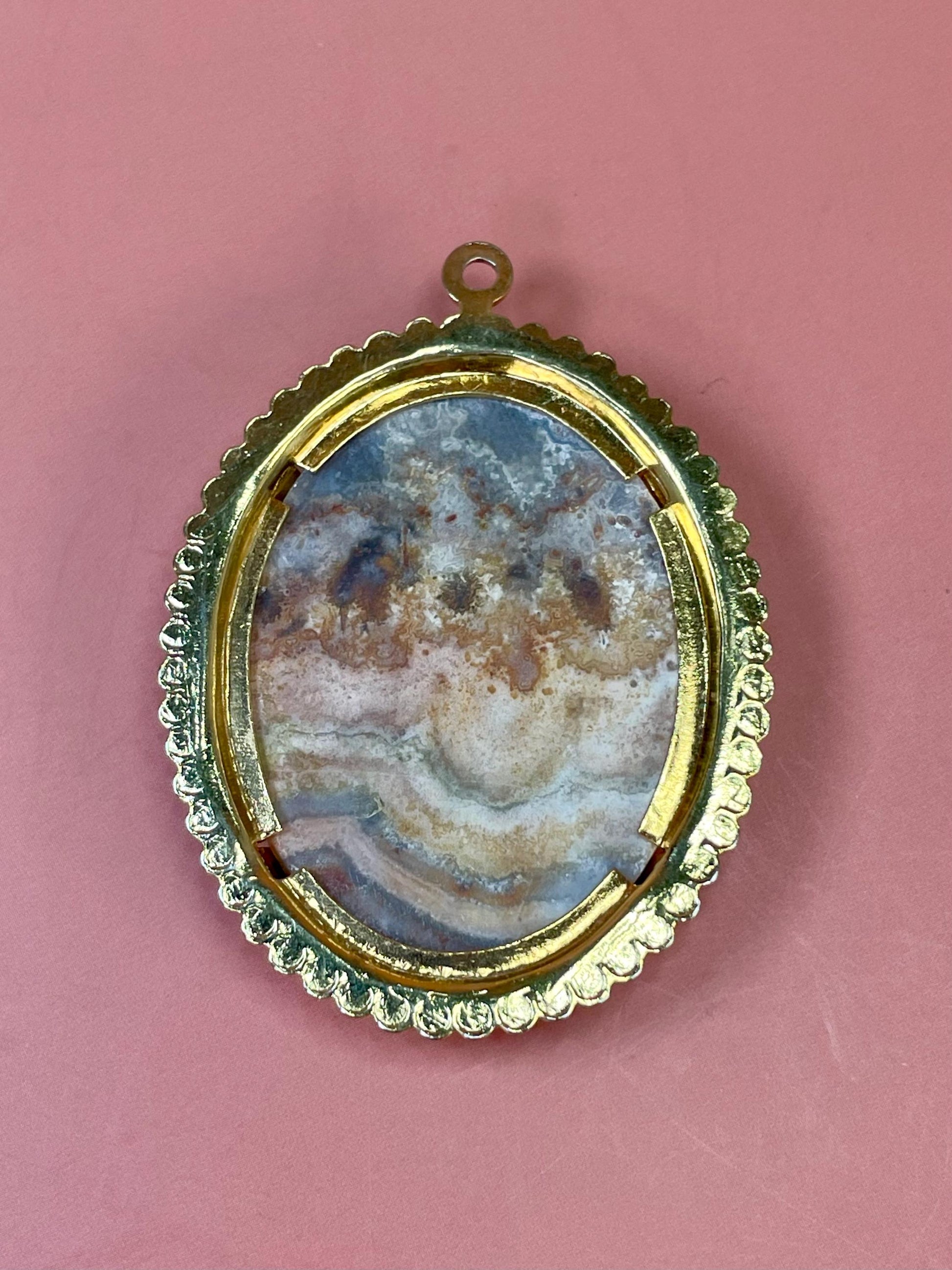 Lovely untested gold and stone pendant. Approximately 2 inches long and 1.5 inches wide