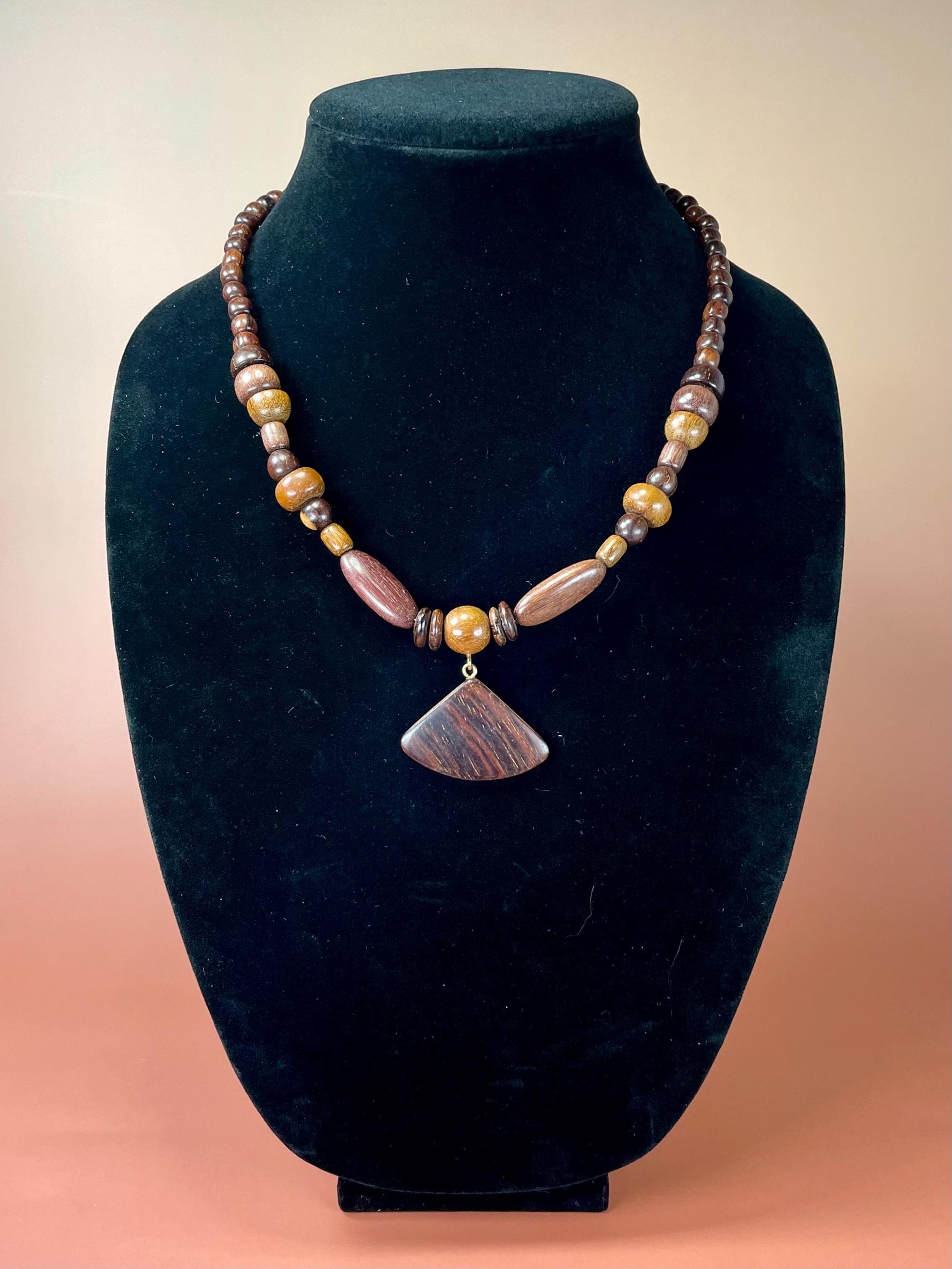Lovely 20 inch long wood Beaded necklace with 1 inch pendant