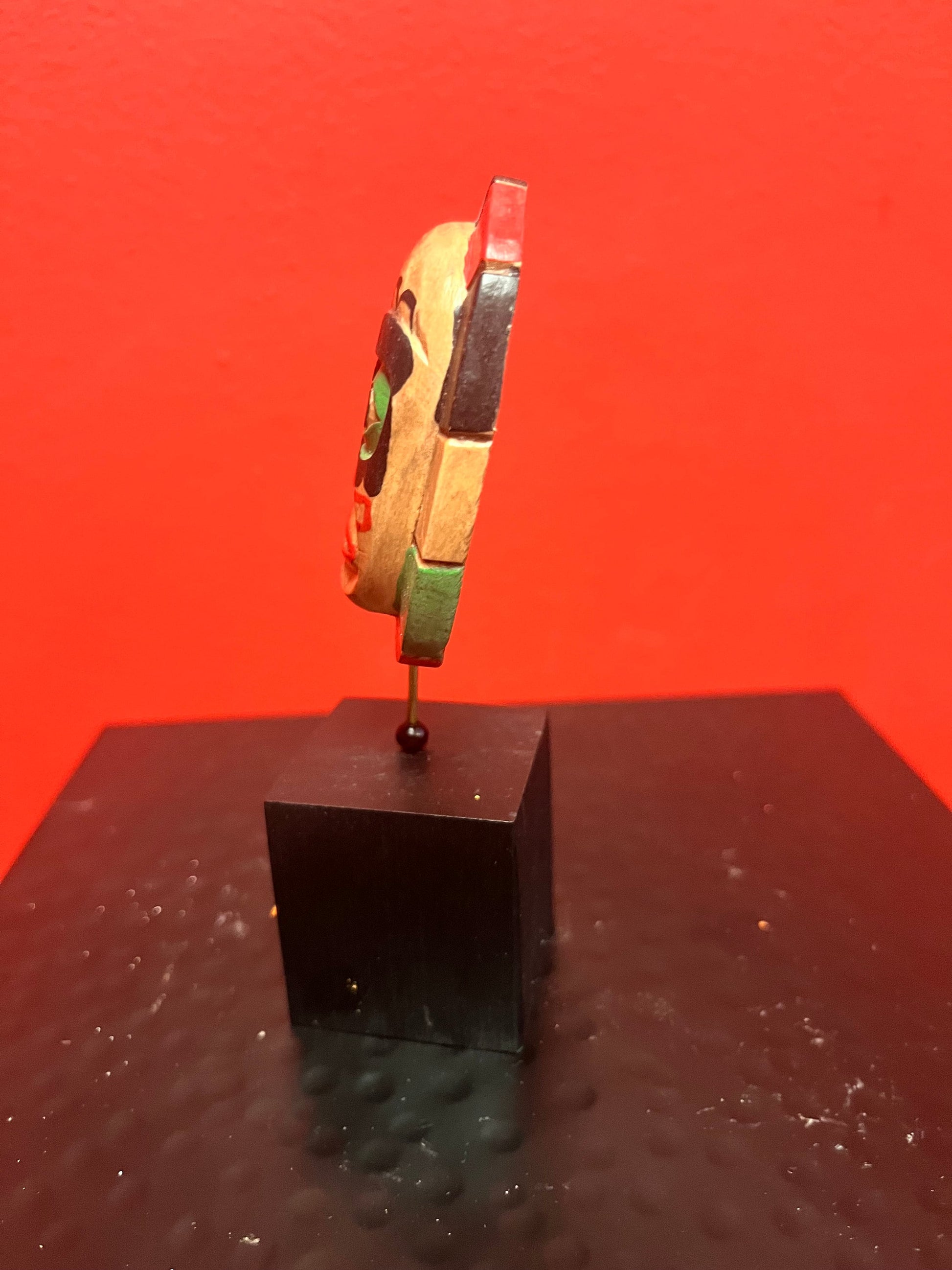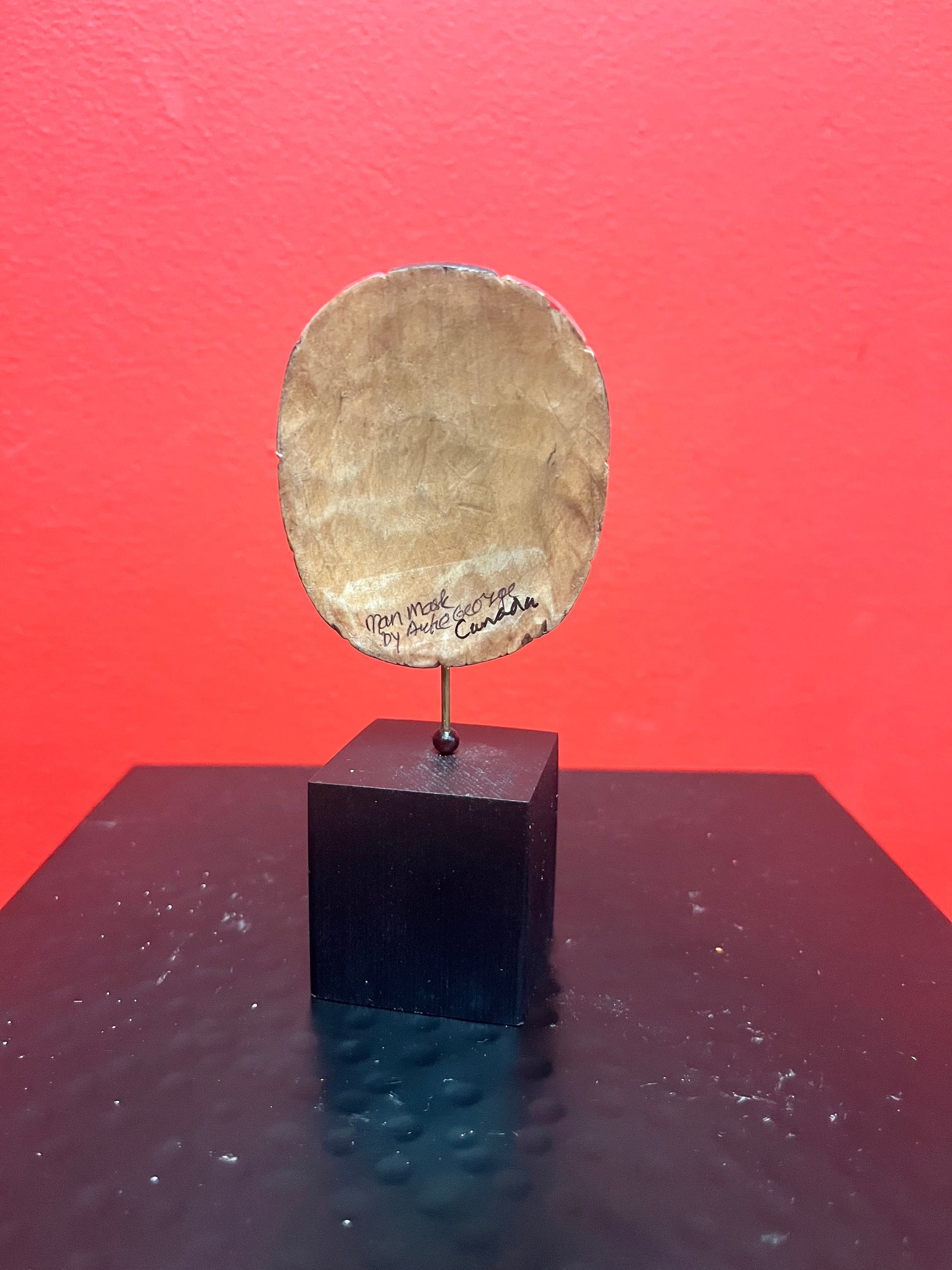 Lovely 3 inch indigenous first Nations Pacific northwest Coast Artie George mask on stand total 5 inches Lovely detail and quality