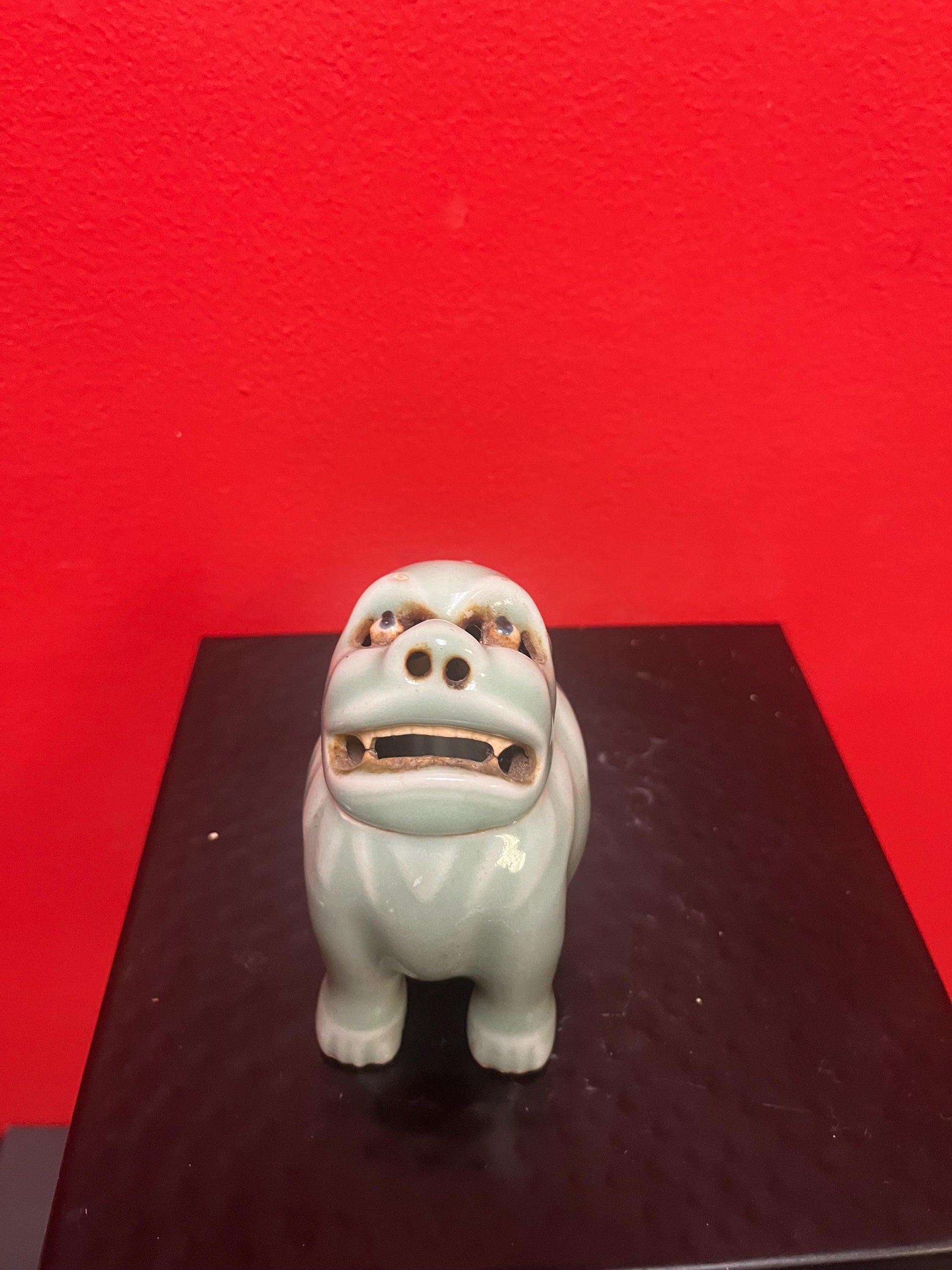 Lovely 4 inch high Chinese celadon foo dog box - perfect condition cool small Chinese porcelain piece