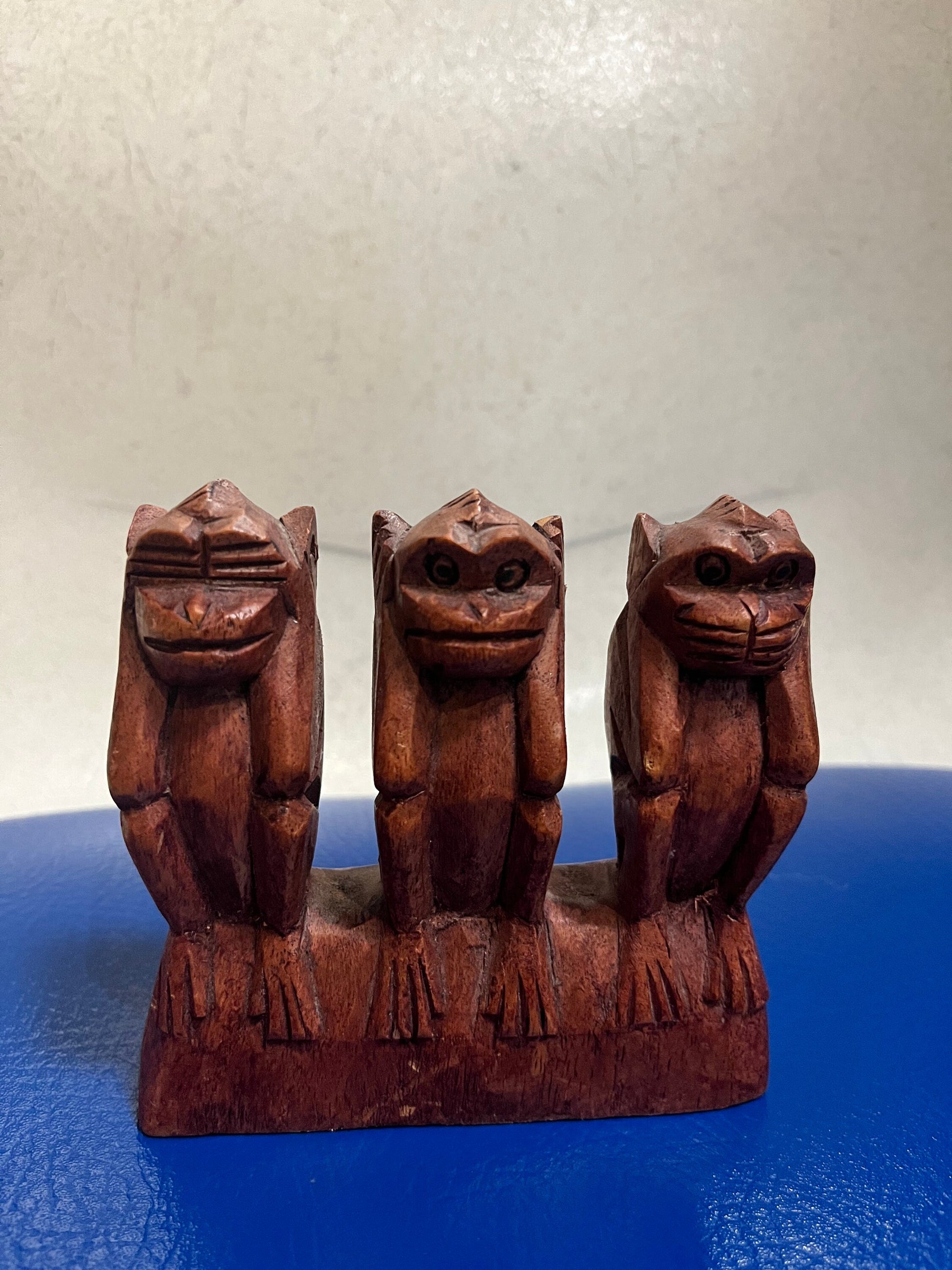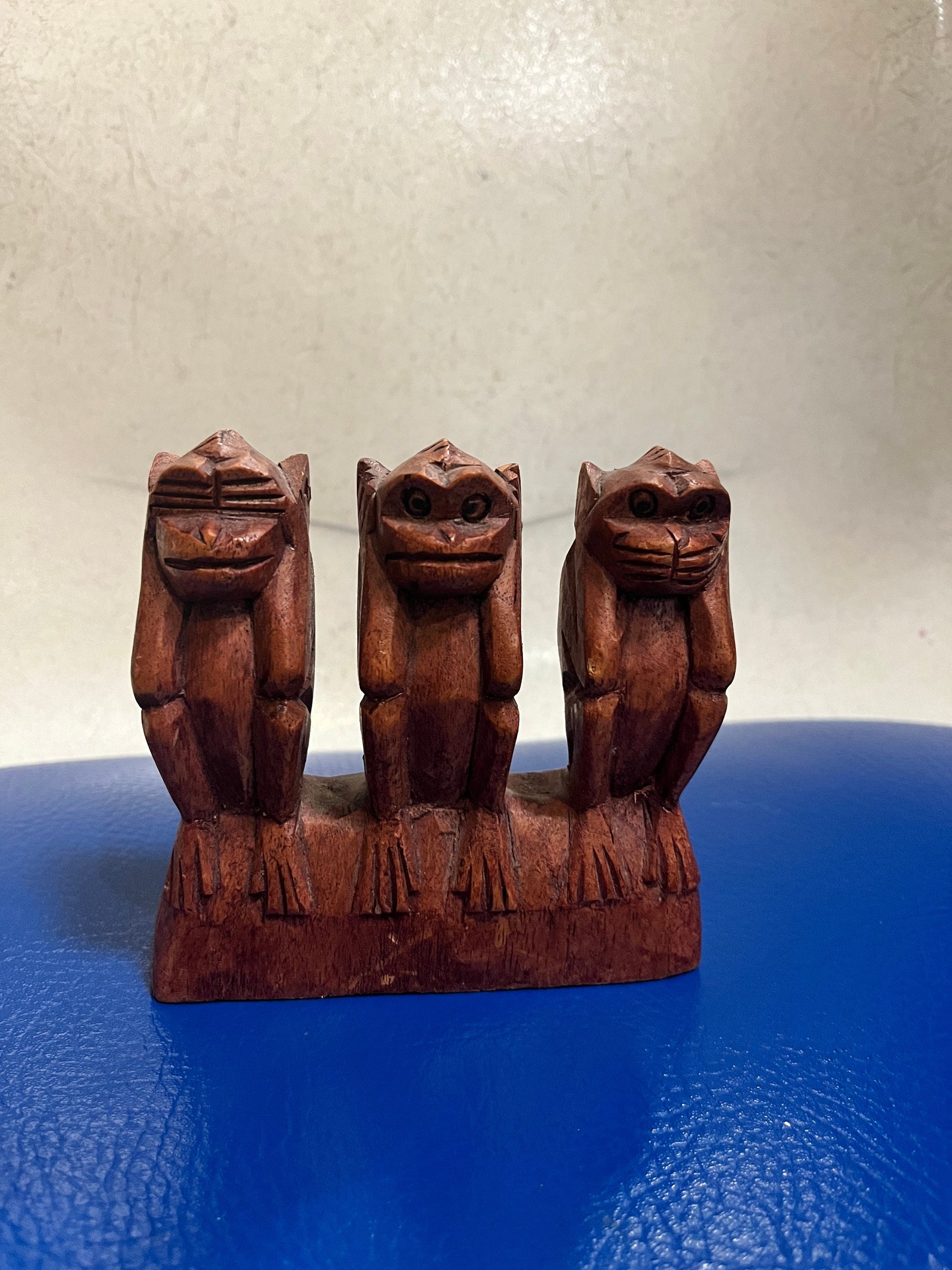 Lovely 4 x 4, inch vintage wooden monkeys See no speak no hear no evil great gift