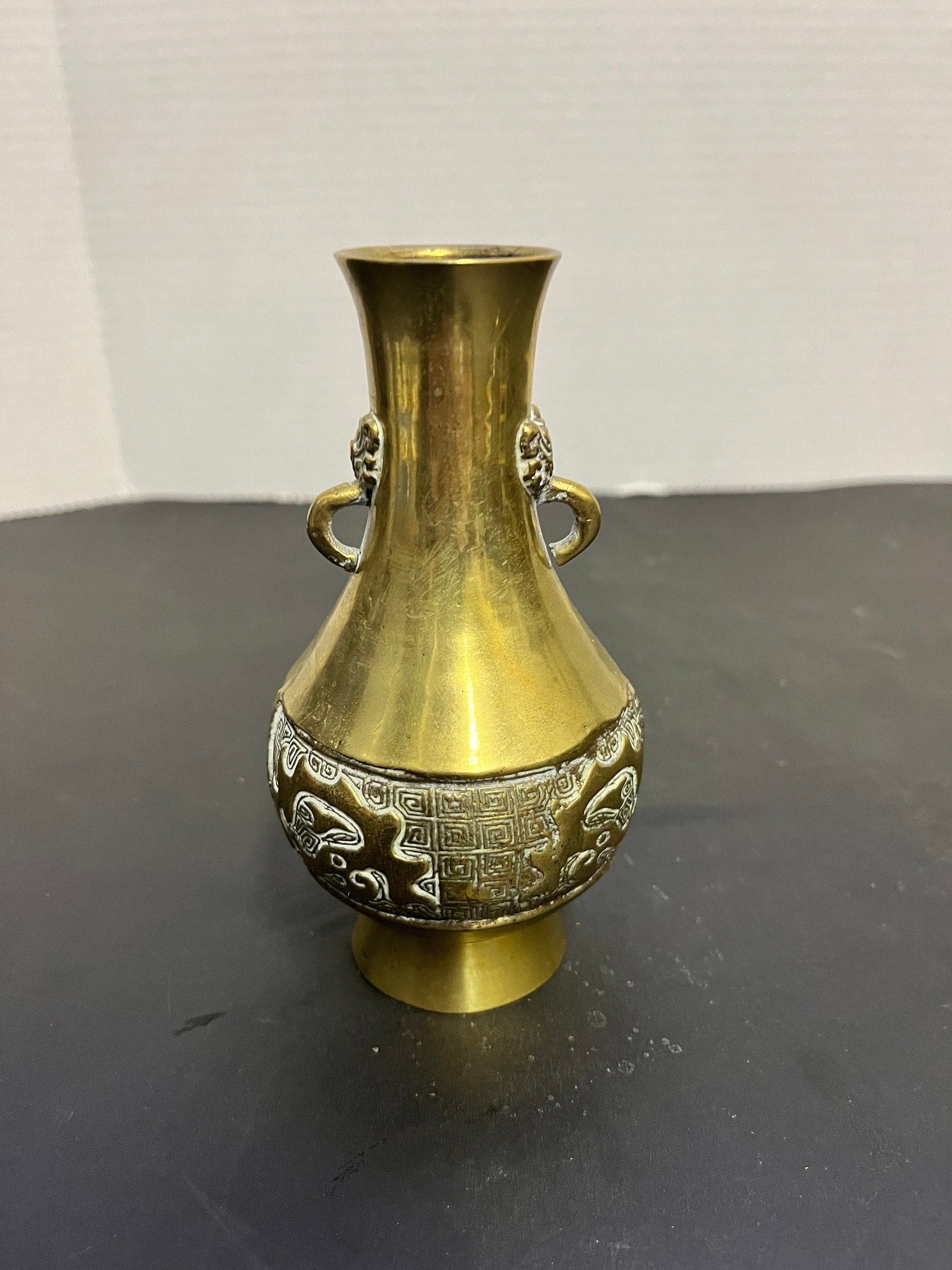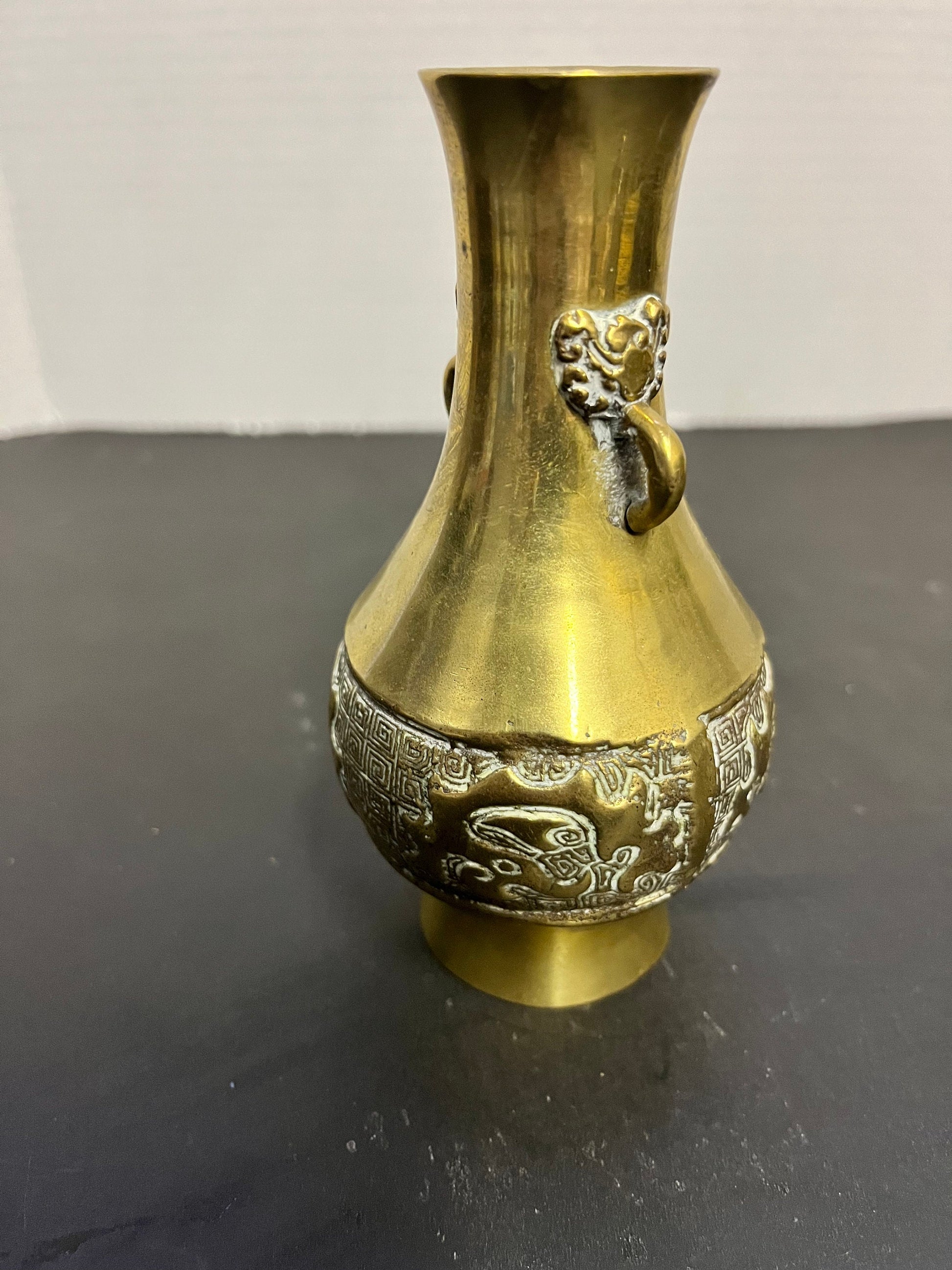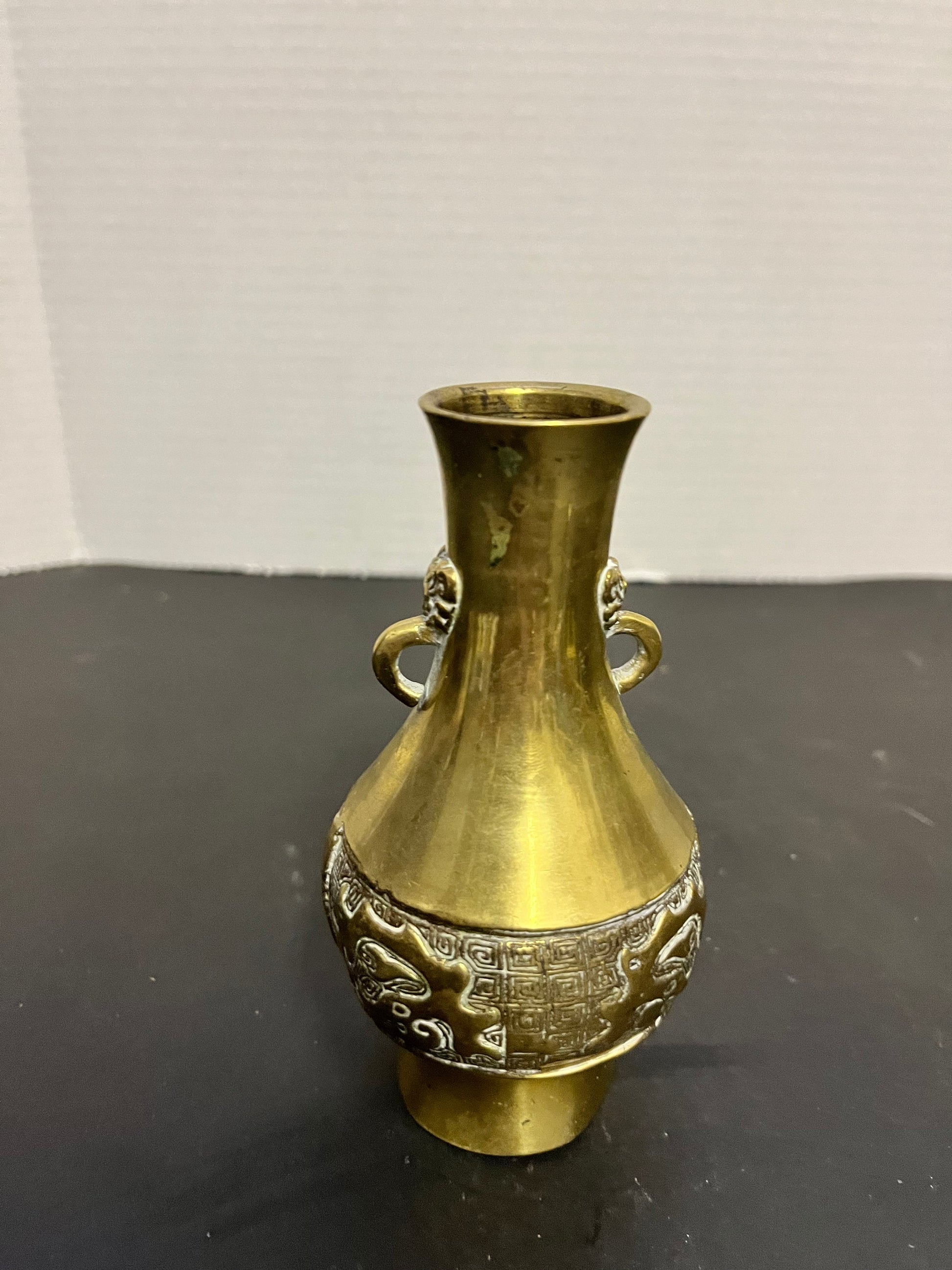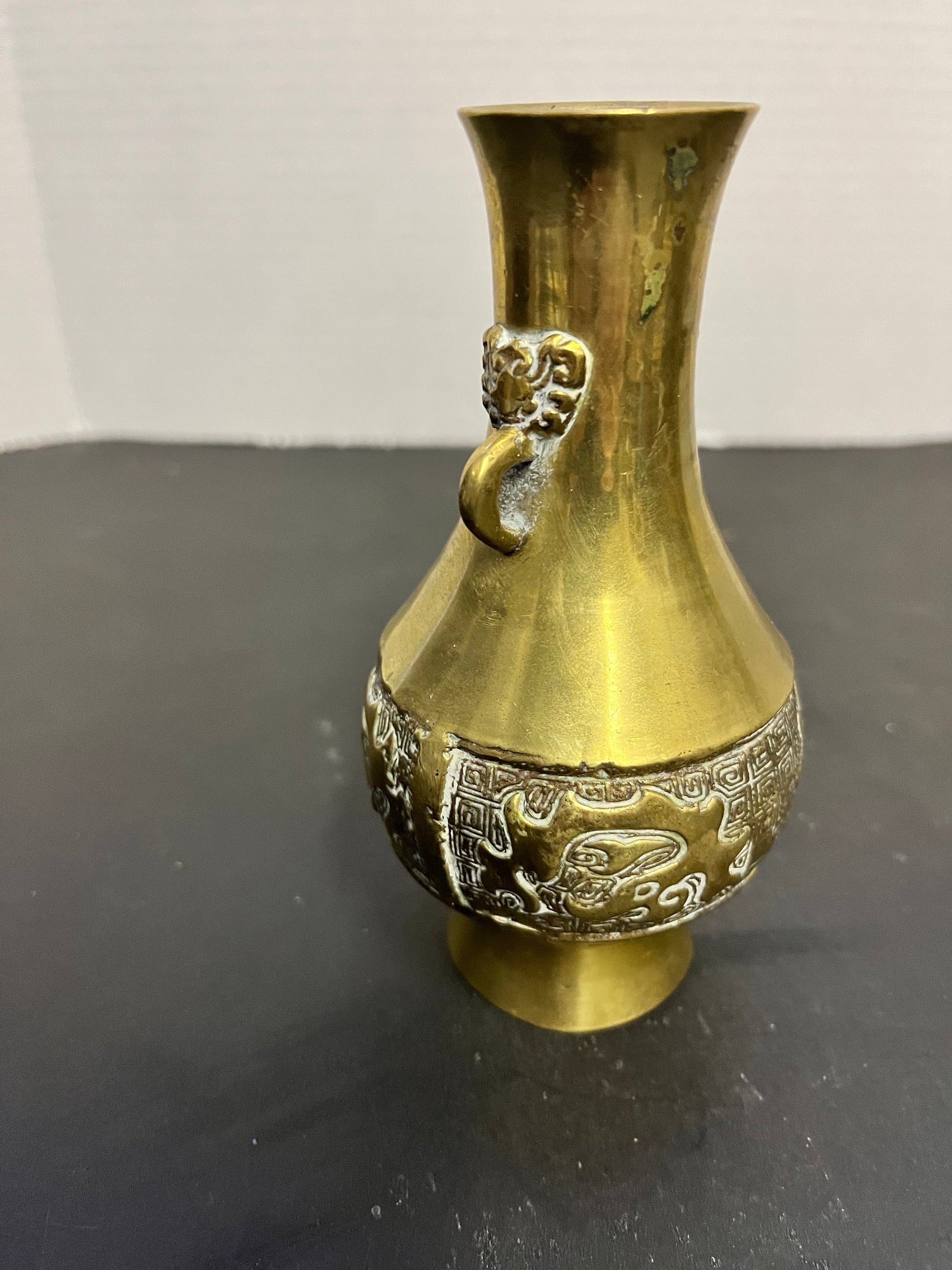 Lovely 5 inch bronze Chinese heavily decorated vase in nice condition Perfect gift or for your collection