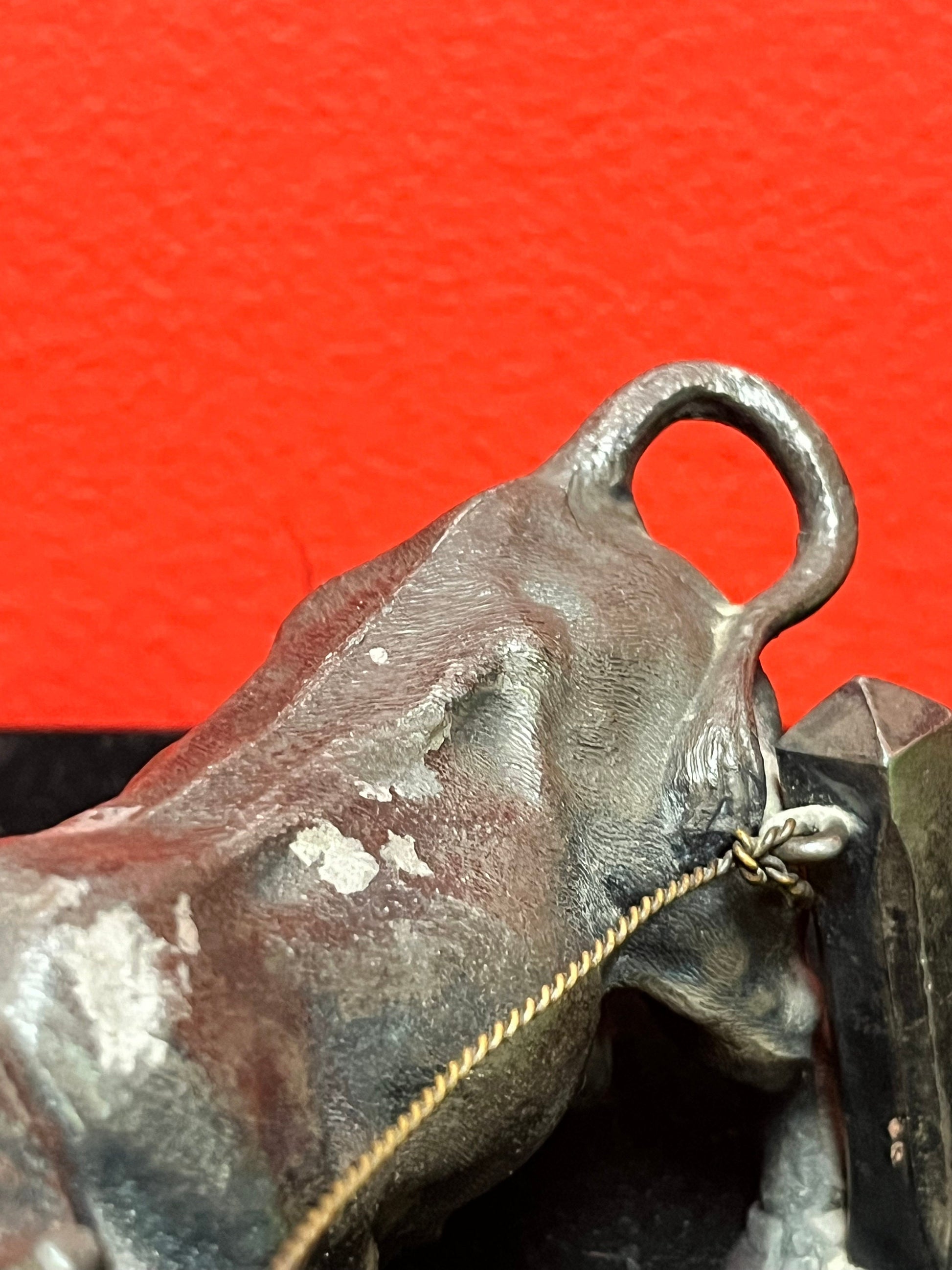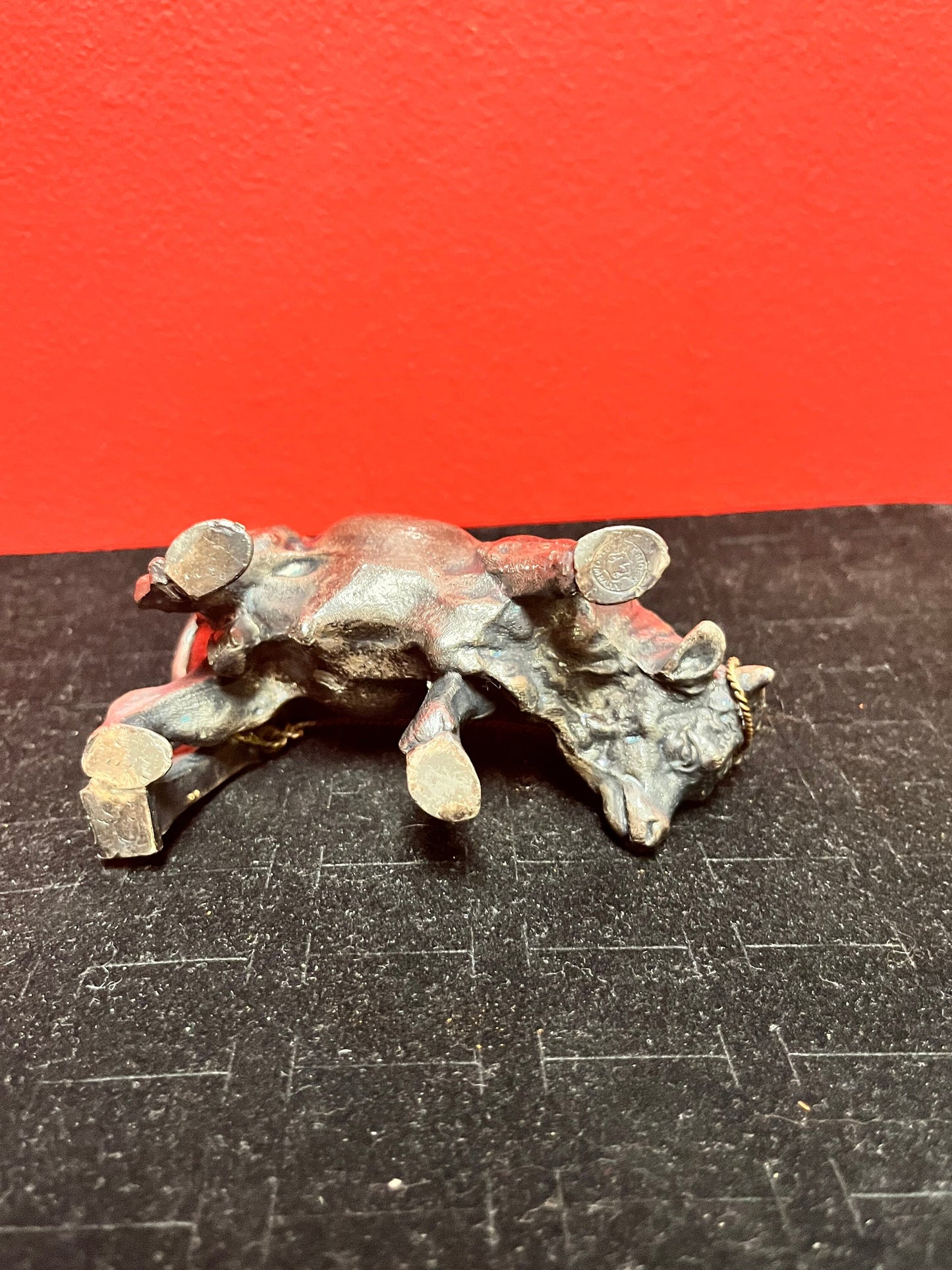 Lovely 5 inch long meridian silver plate antique heavy heavy bull statue