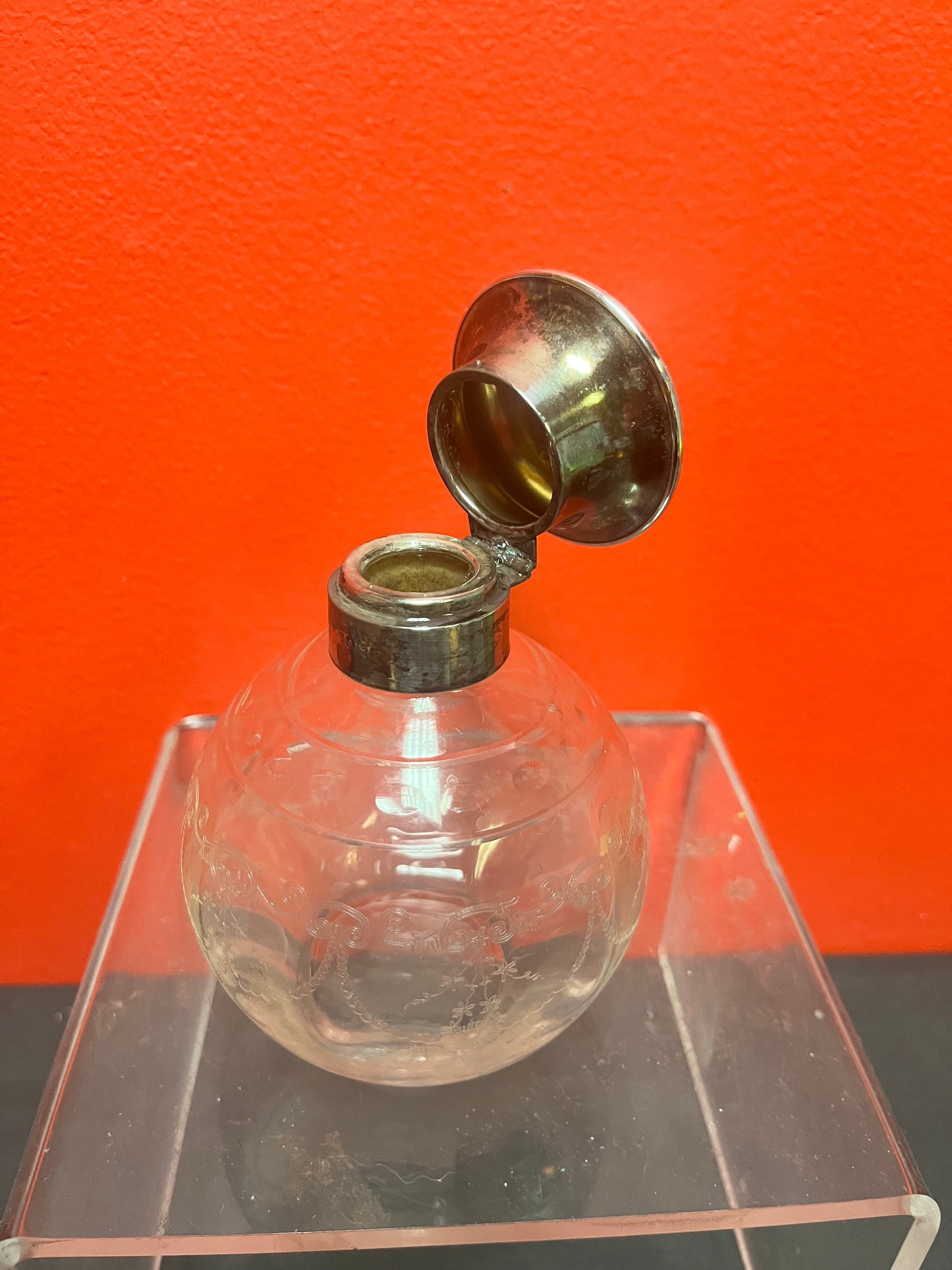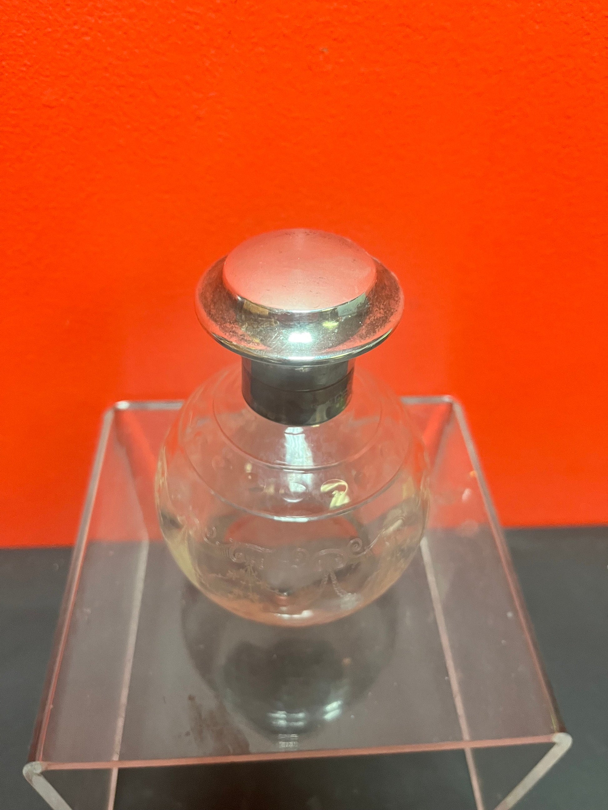 Lovely 5 inch tall sterling topped English perfume bottle in good condition