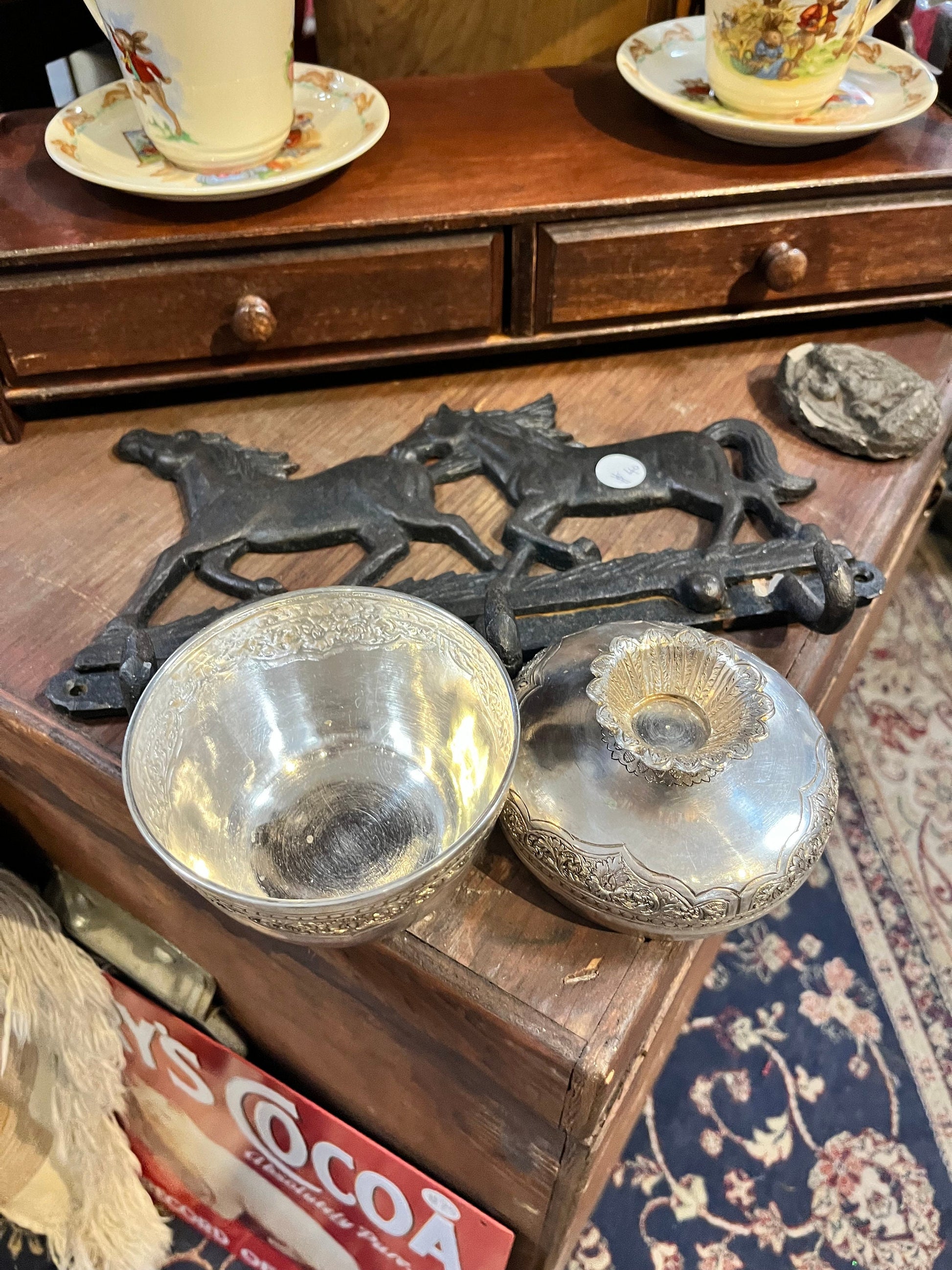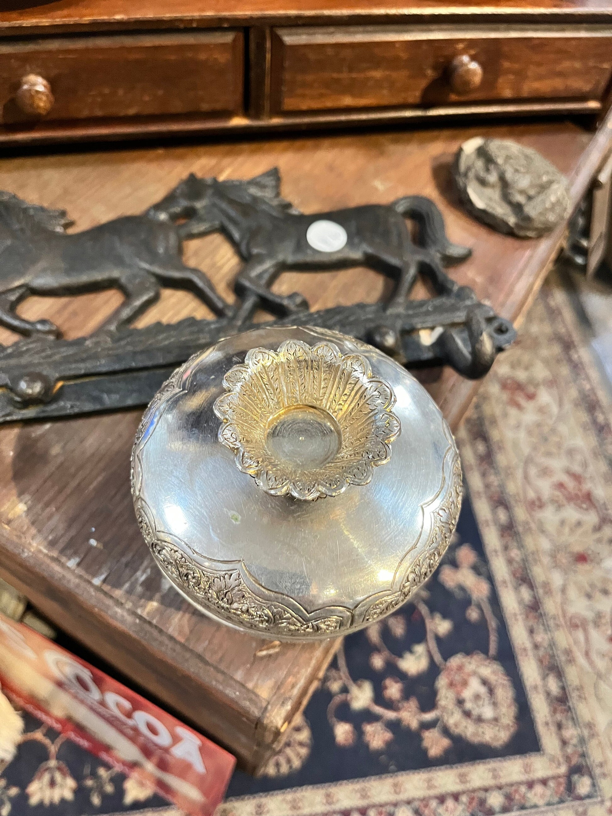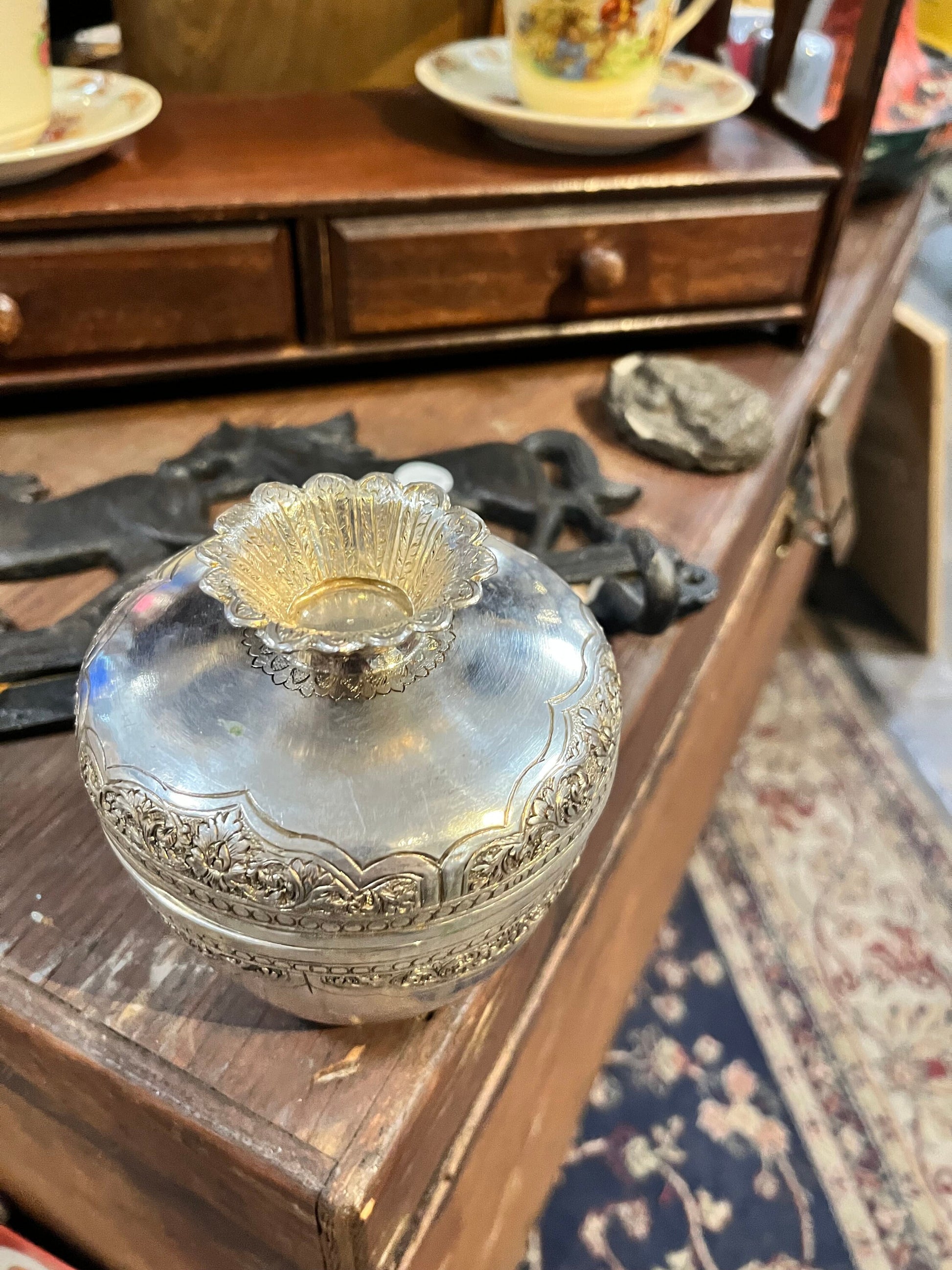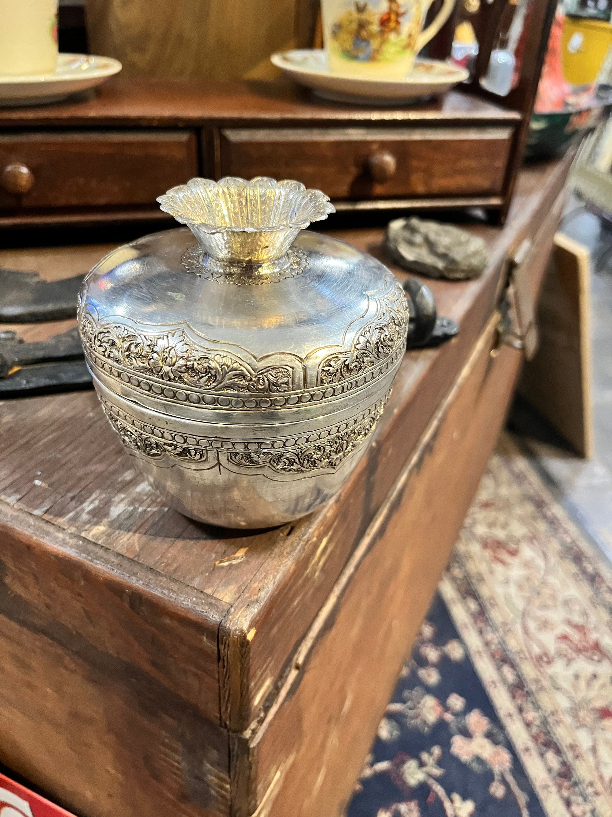 Lovely 5 inch tall untested silver raj lidded pot wonderful decoration great value