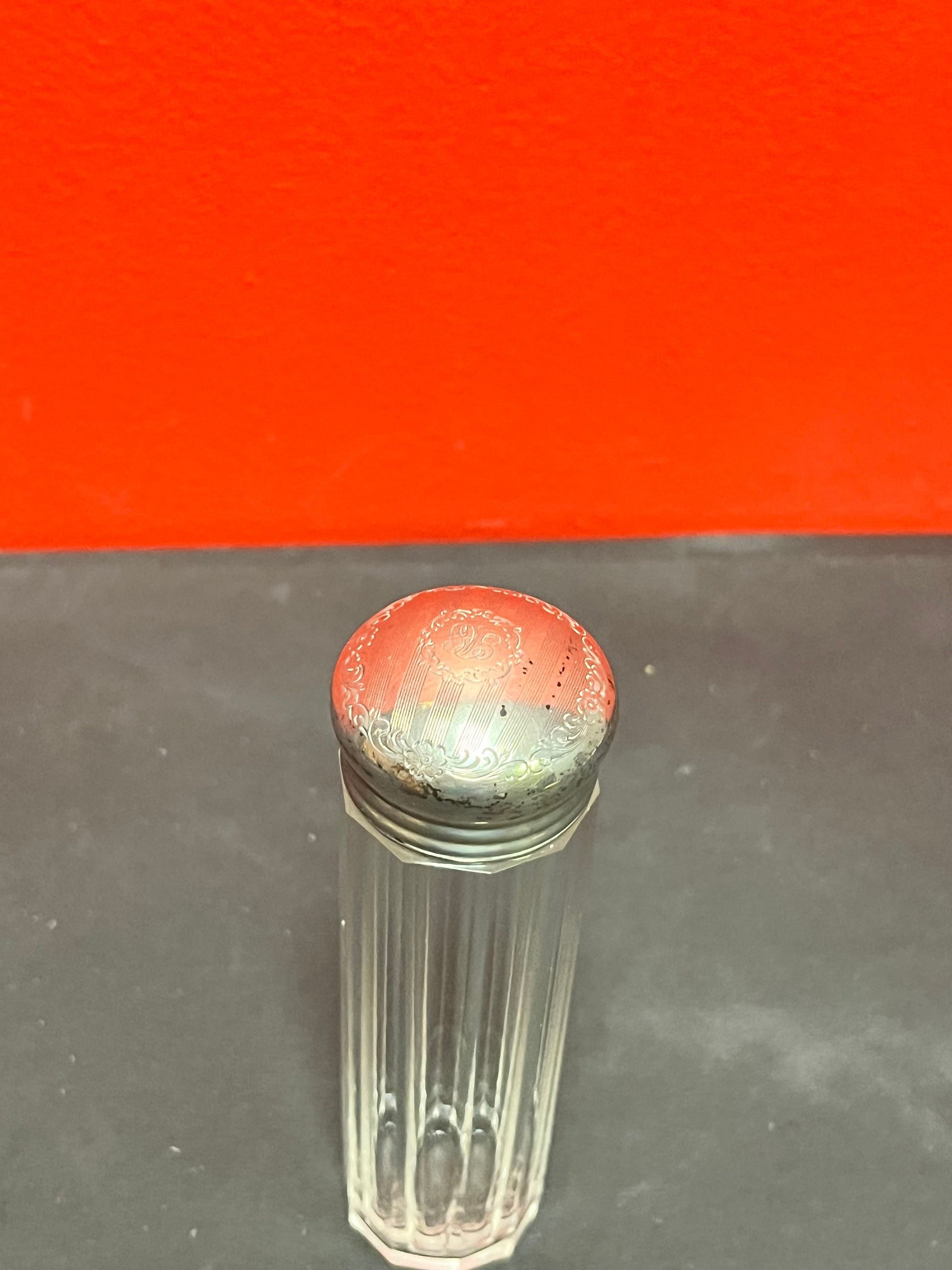 Lovely 6 inch crystal and sterling English hallmark powder jar small chip on bottom and needs a polish - value priced