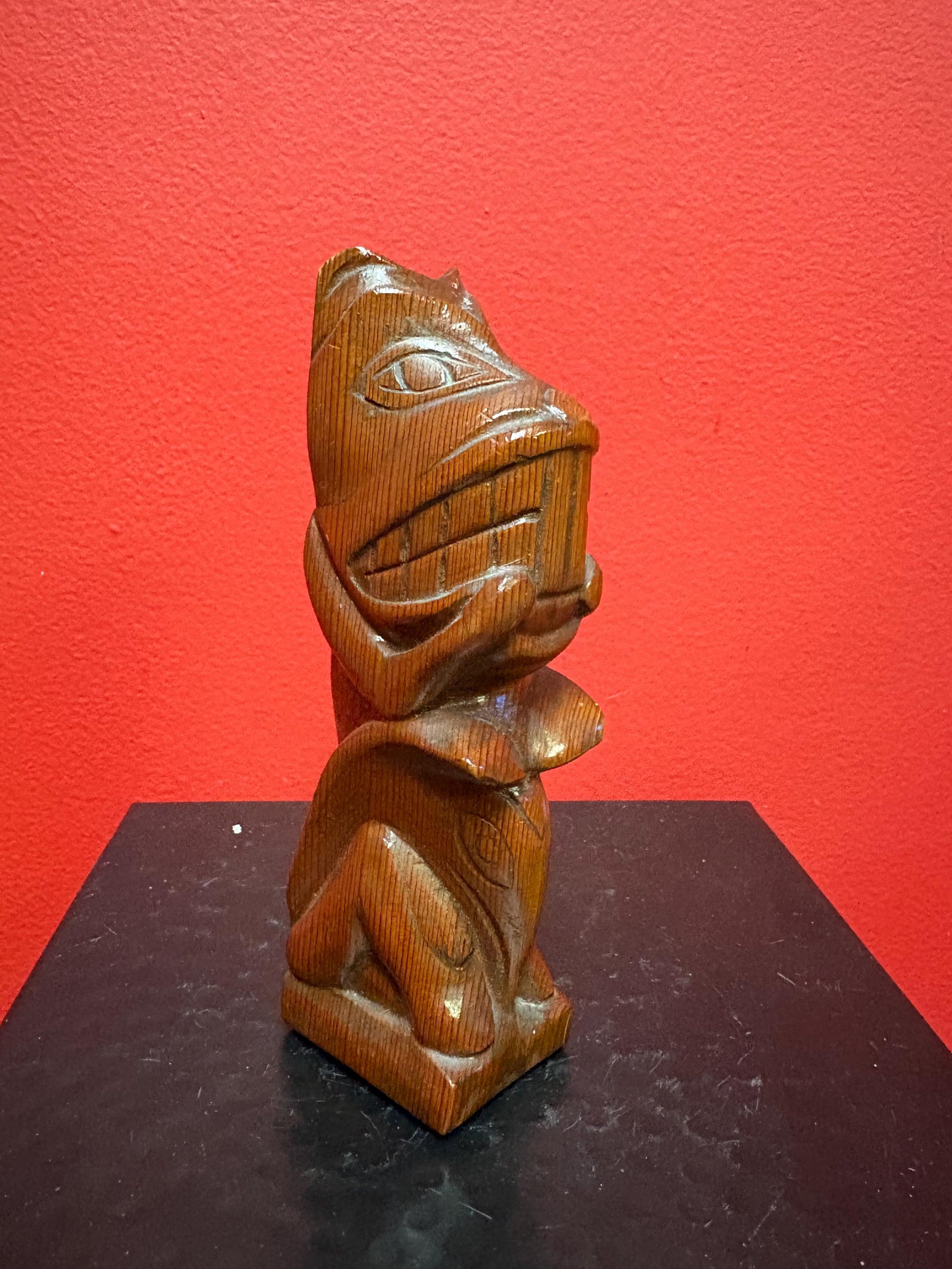 Lovely 6 inch indigenous first Nations, Pacific NorthwestCoast beaver killer whale transformation totem with honey glaze finish —