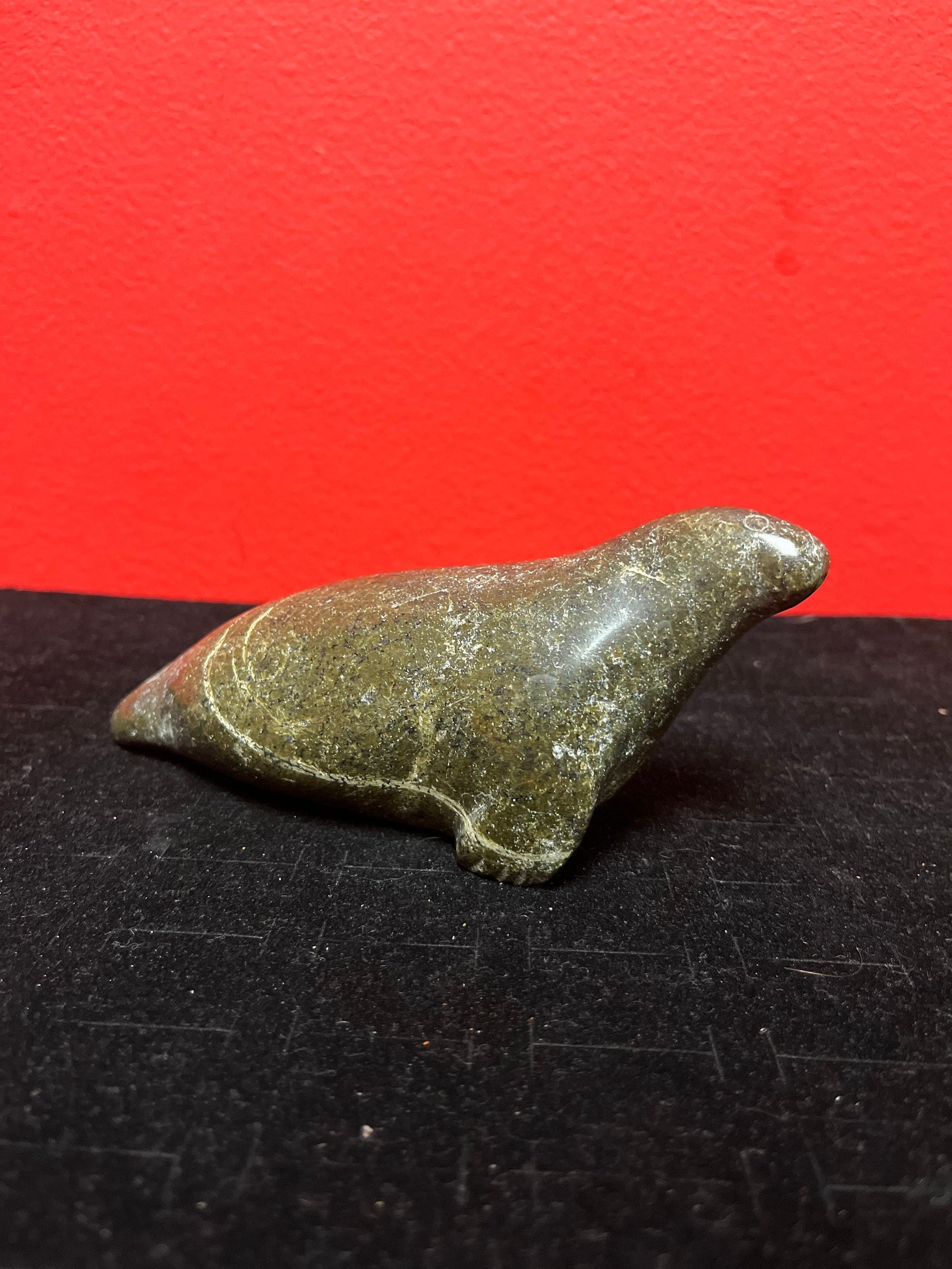 Lovely 6 inch signed Inuit indigenous, soapstone seal tranquil beautiful peace