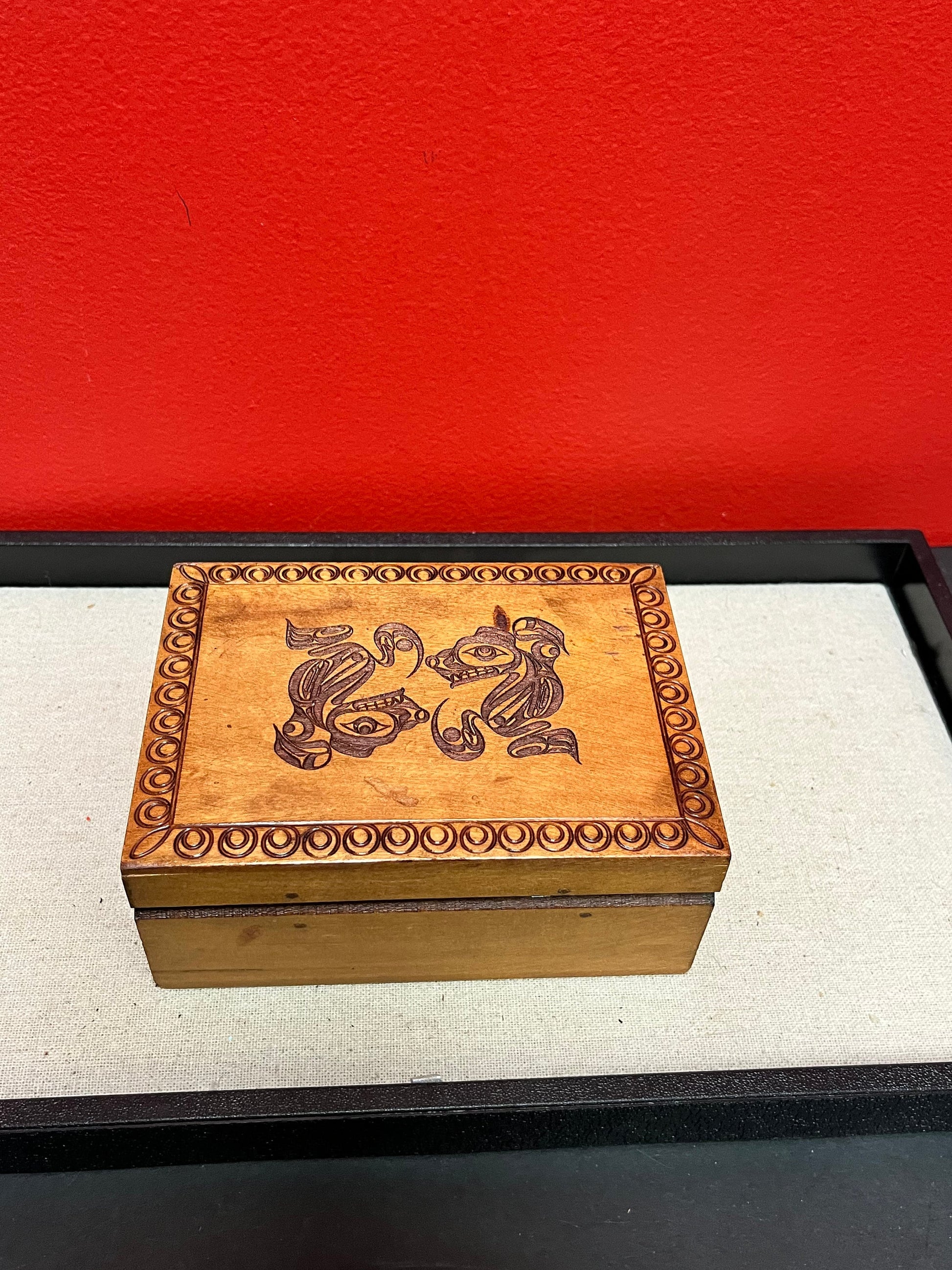 Lovely 6 x 4 x 2.5 inch high Brad Joseph wolf box indigenous first nations Pacific northwest coast