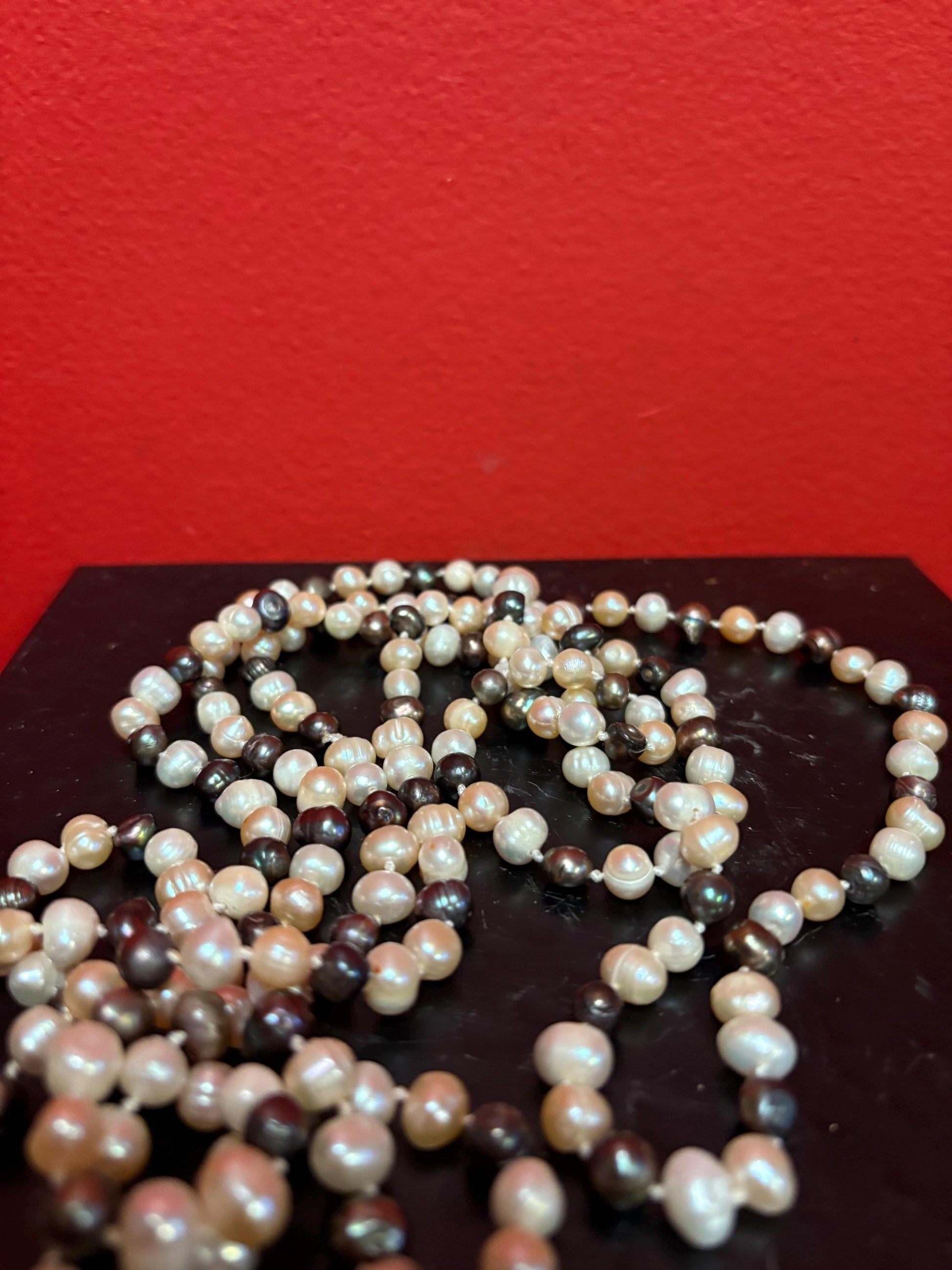 Lovely 66 inch multi coloured pearl necklace multi strand -B-