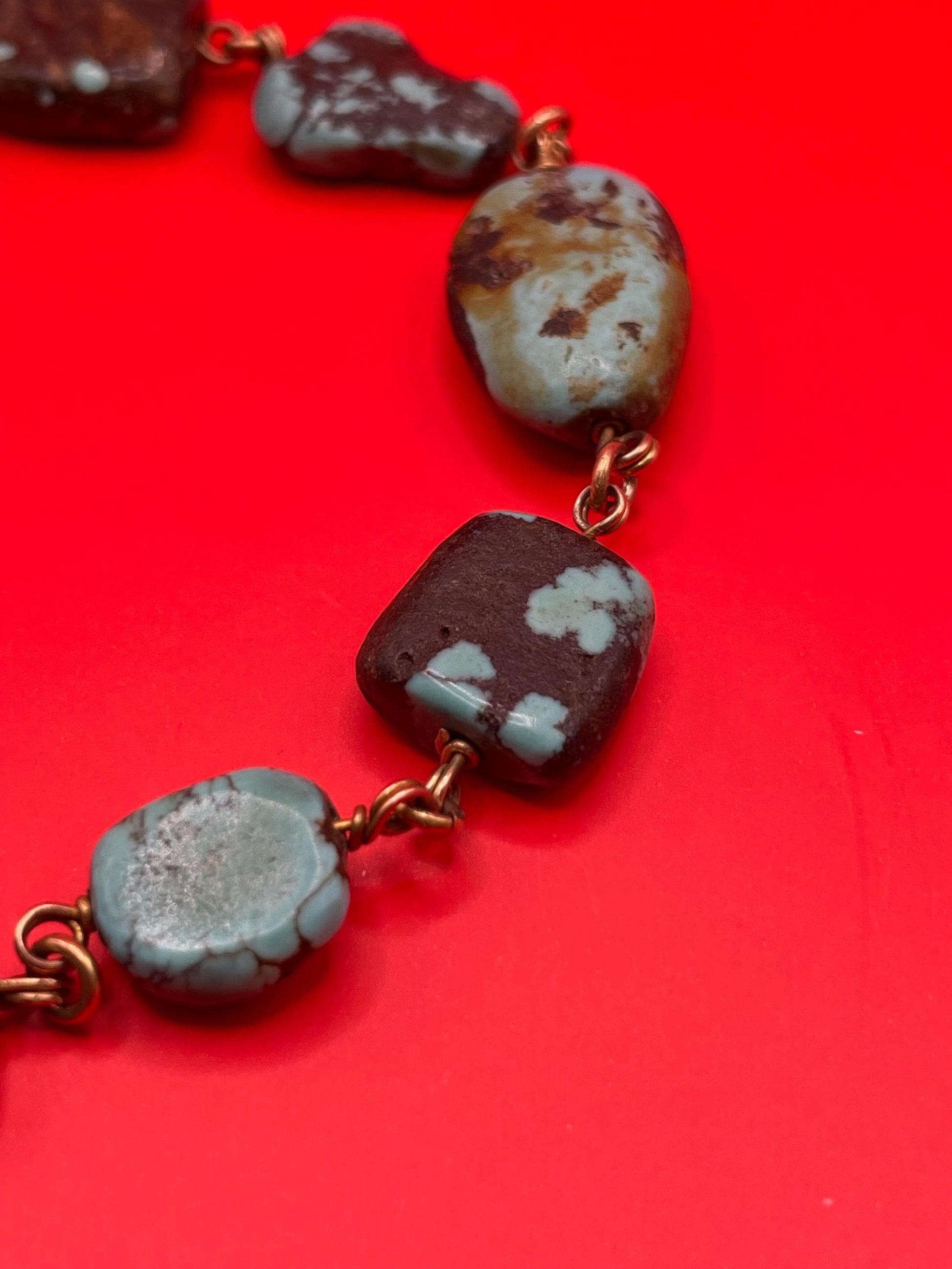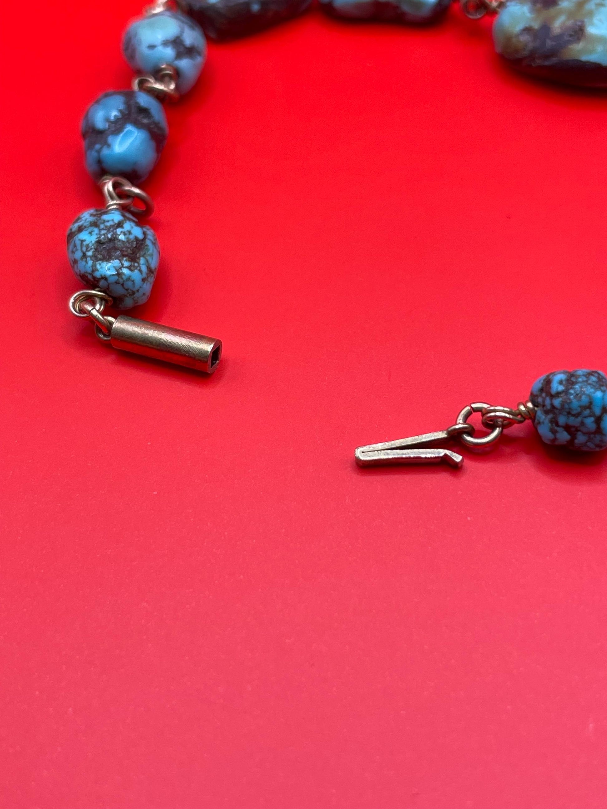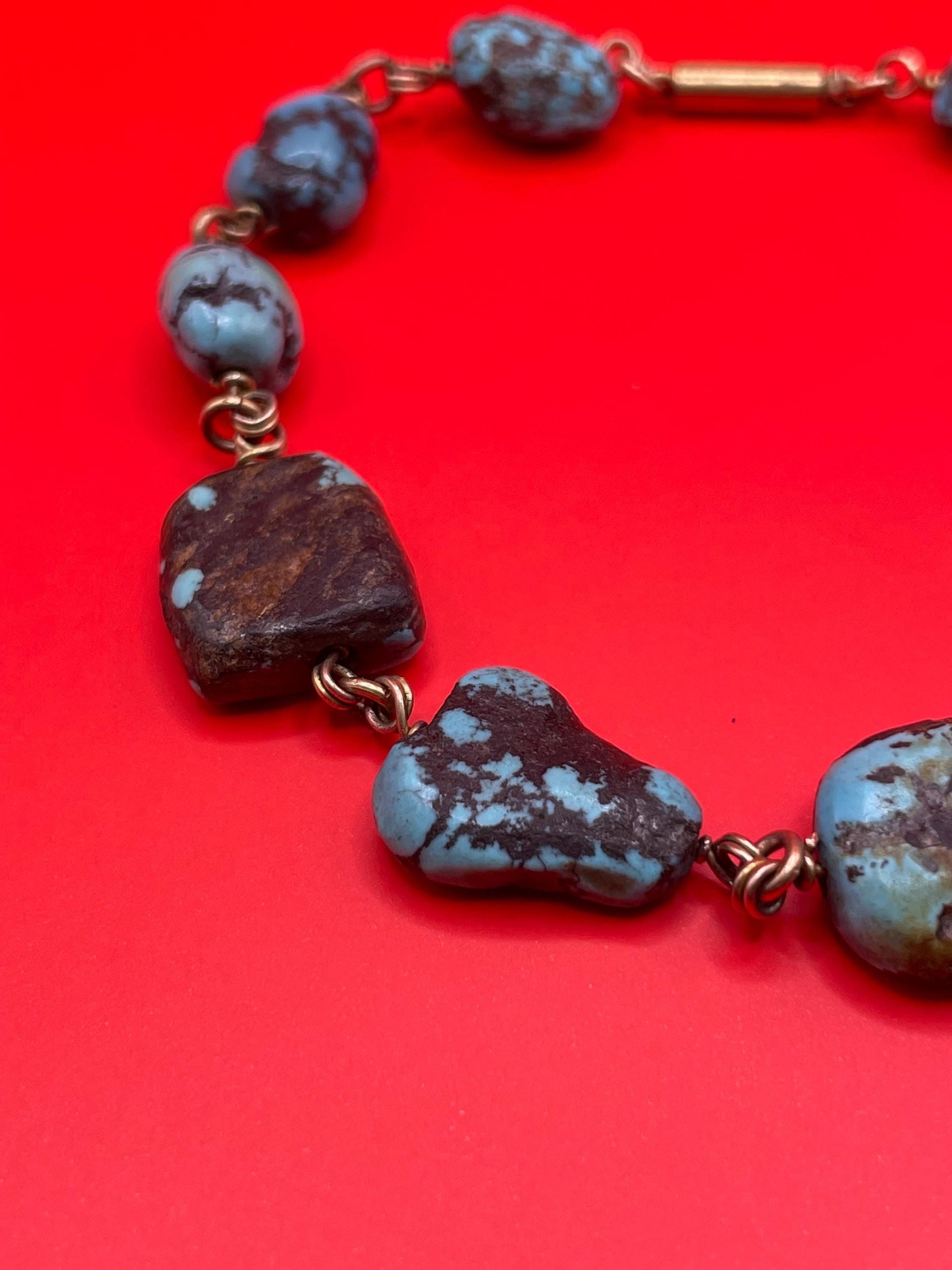 Beautifully veined turquoise chunks, it is definitely quality and wears nicely