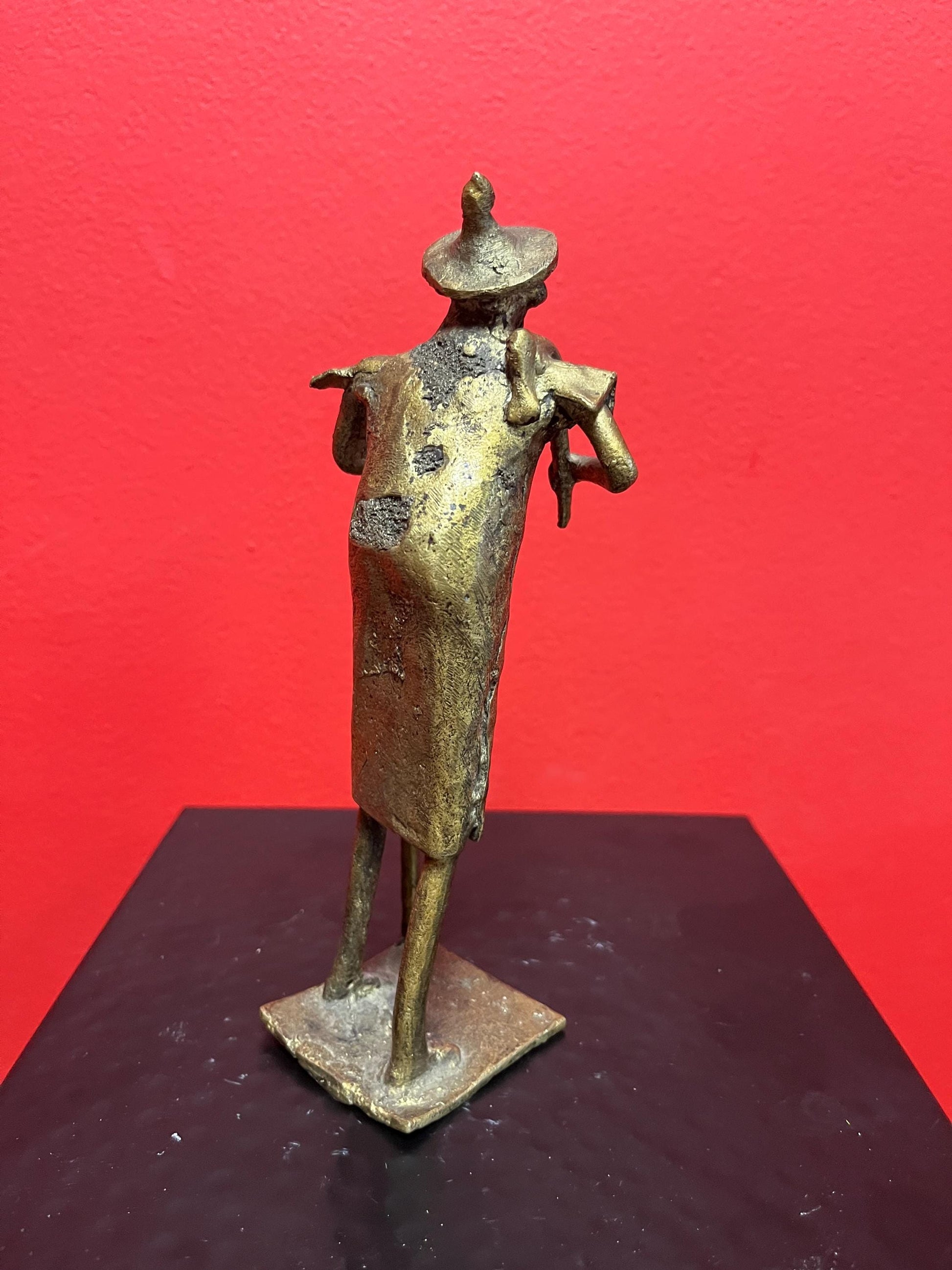 Lovely 7 inch tall African bronze Benin statue of a farmer -