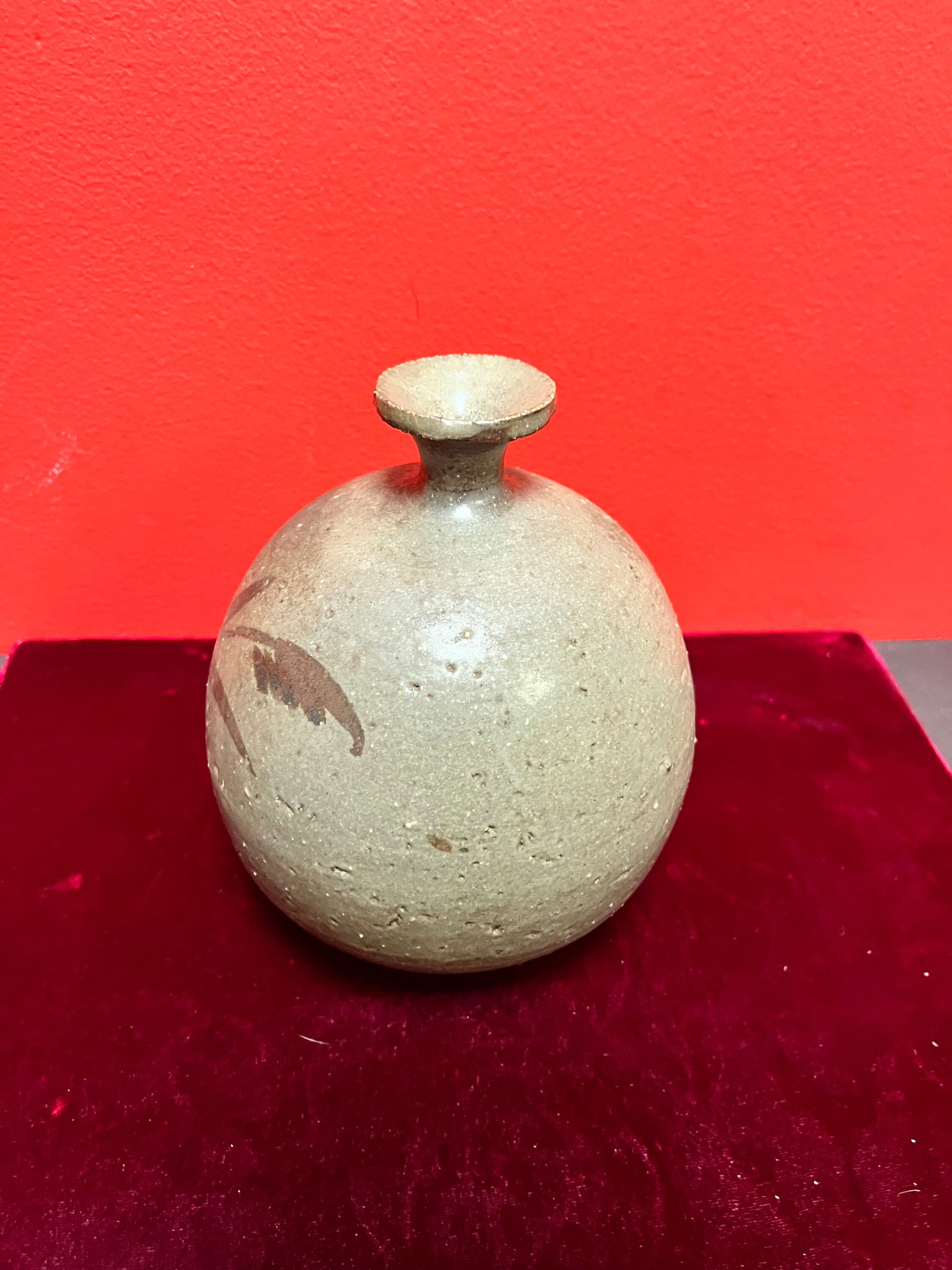 Lovely 7 inch tall Asian, glazed pottery vase signed unusual and cool great condition