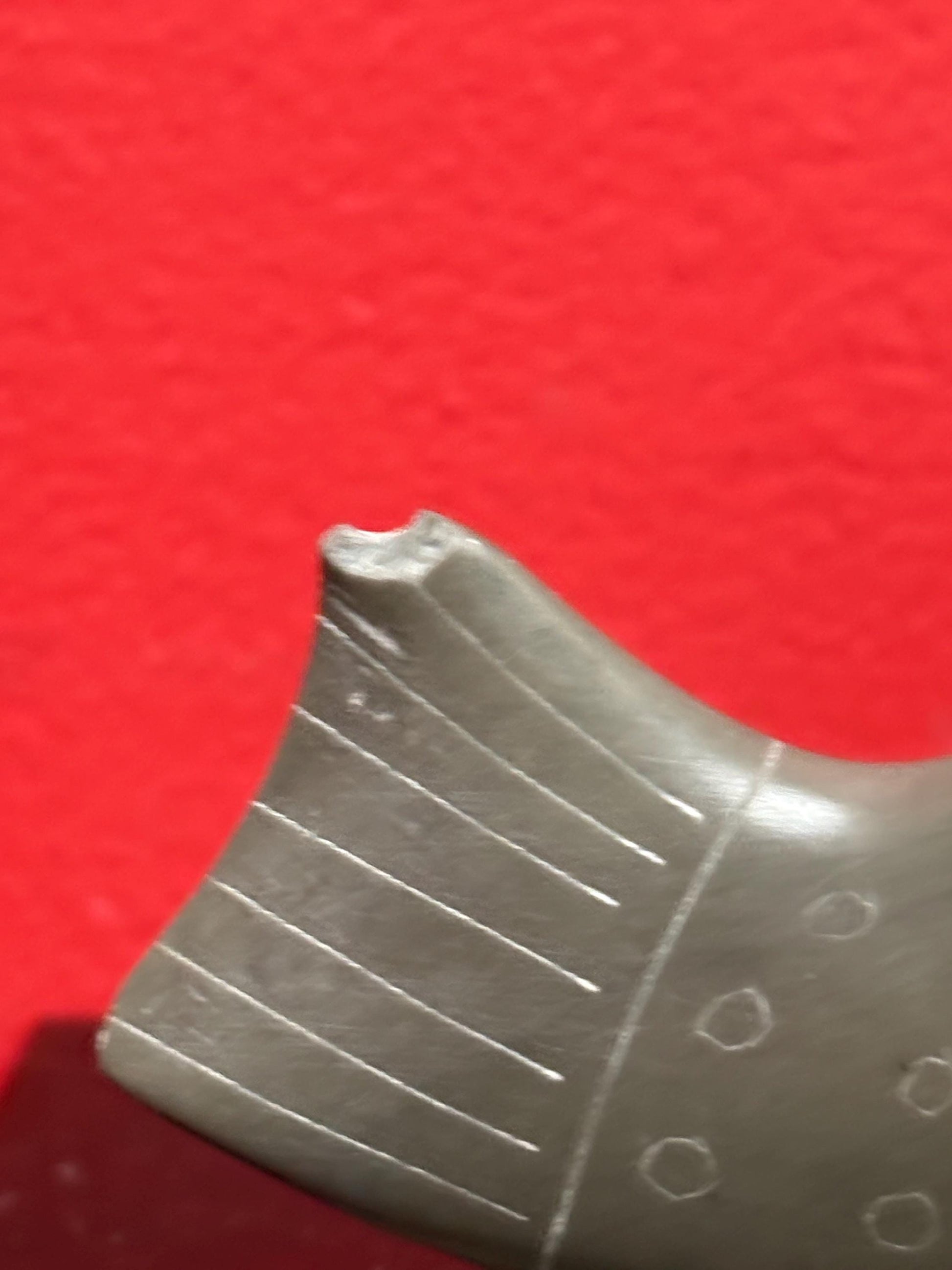 Lovely 7 x 3” high indigenous Inuit soapstone signed salmon — chip on tail— good value