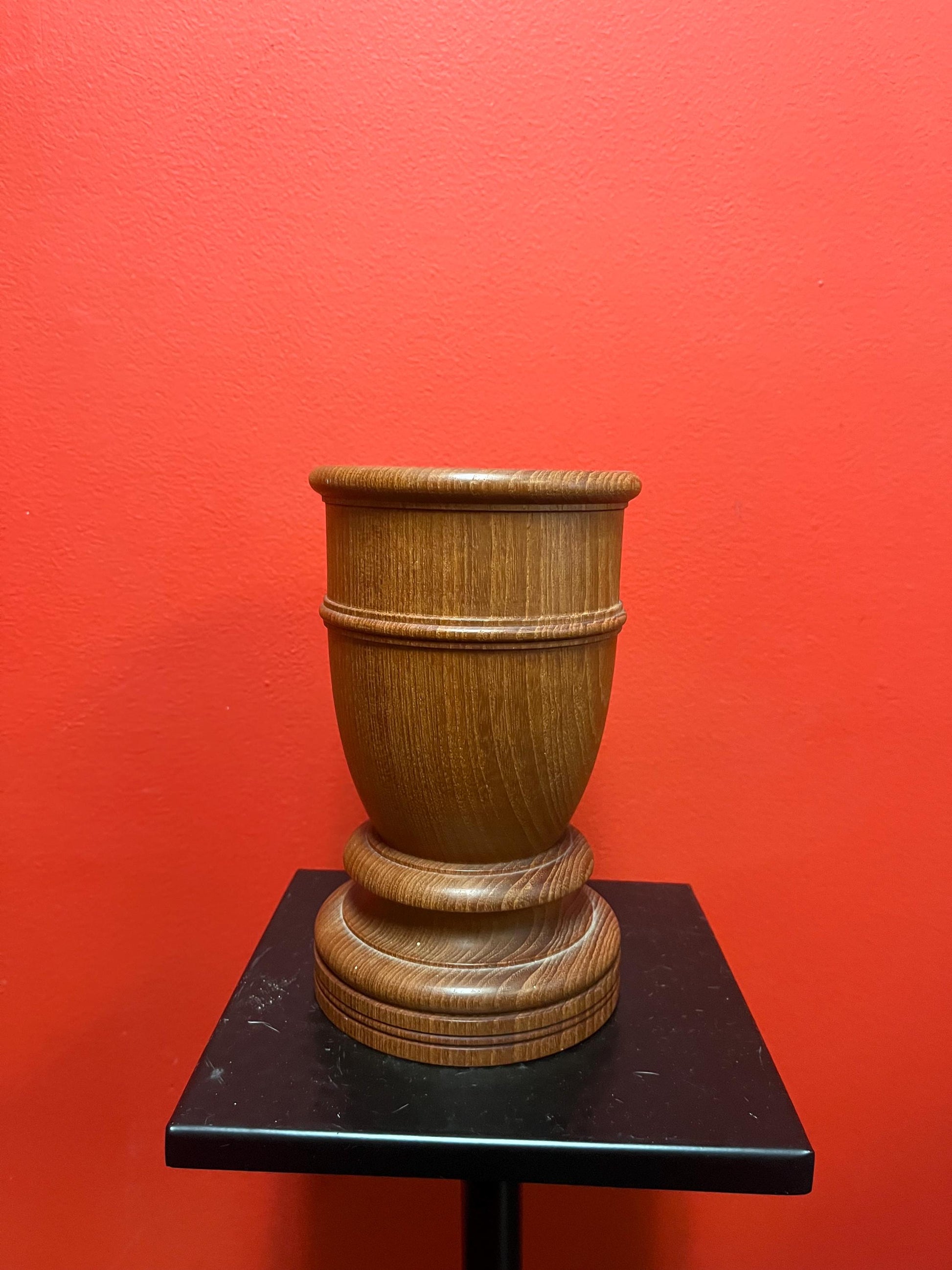 Lovely mid-century modern Danish teak 8 inch vase or pestal wonderful condition and look