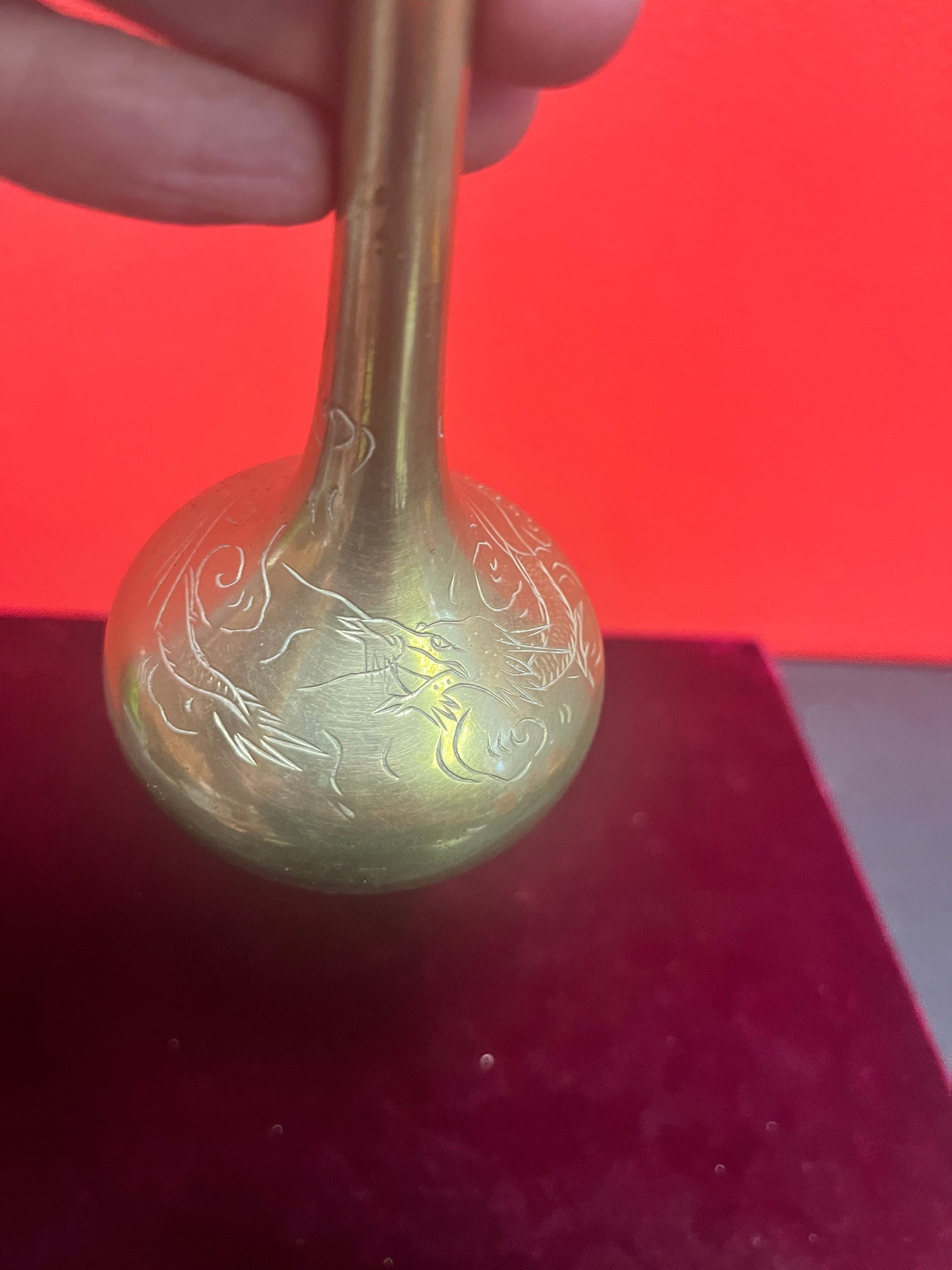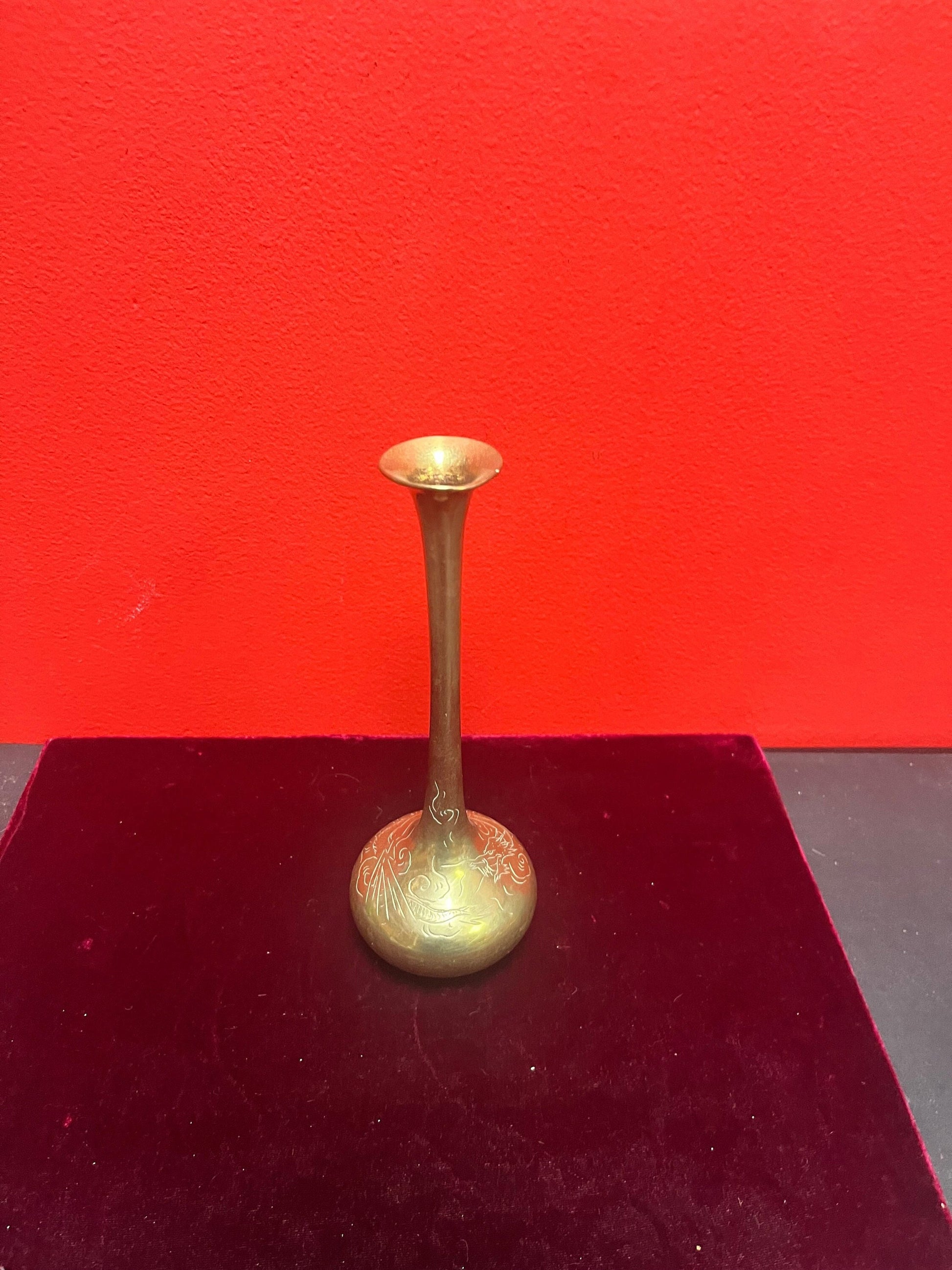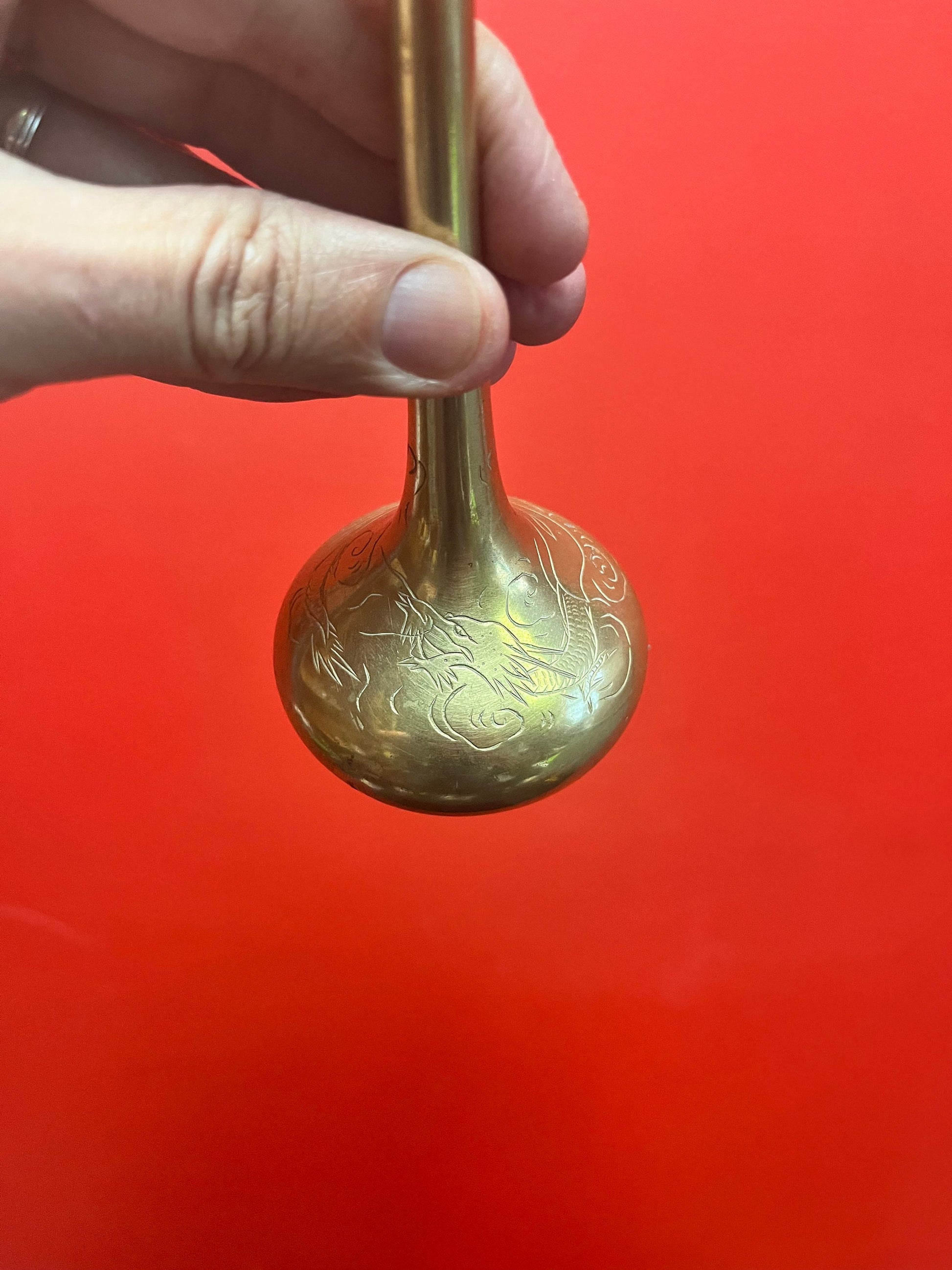 Lovely 8 inch tall Chinese dragon brass vase wonderful detail and quality