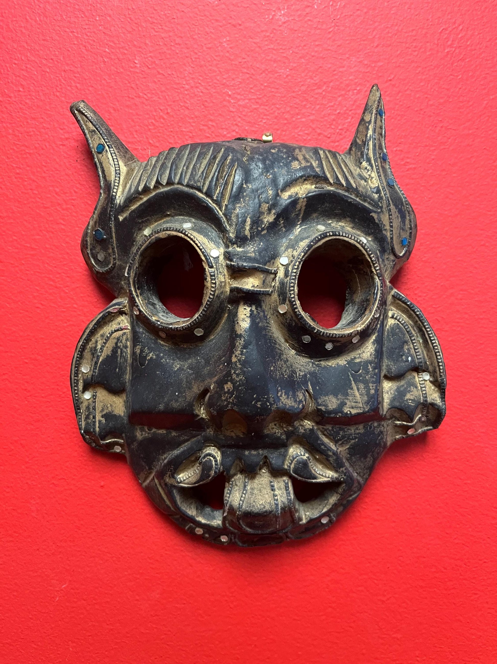 Lovely antique 10 x 8 Tibetan mask with Sparkled jewels great patina, and ready to hang wow
