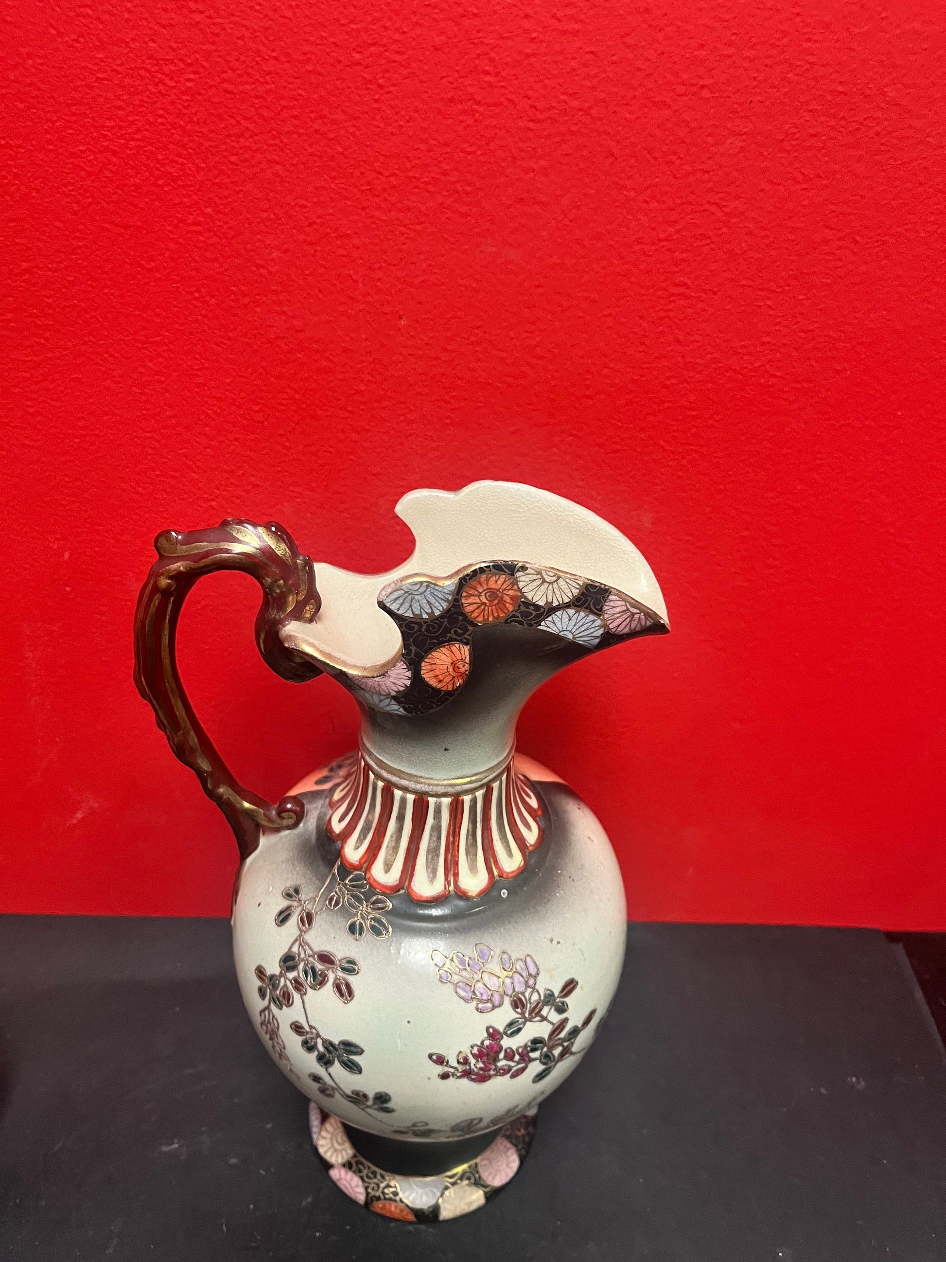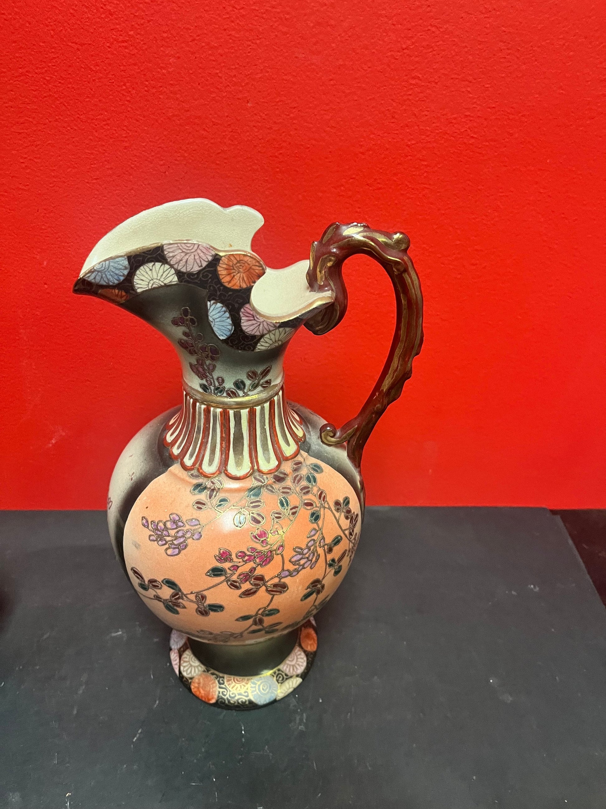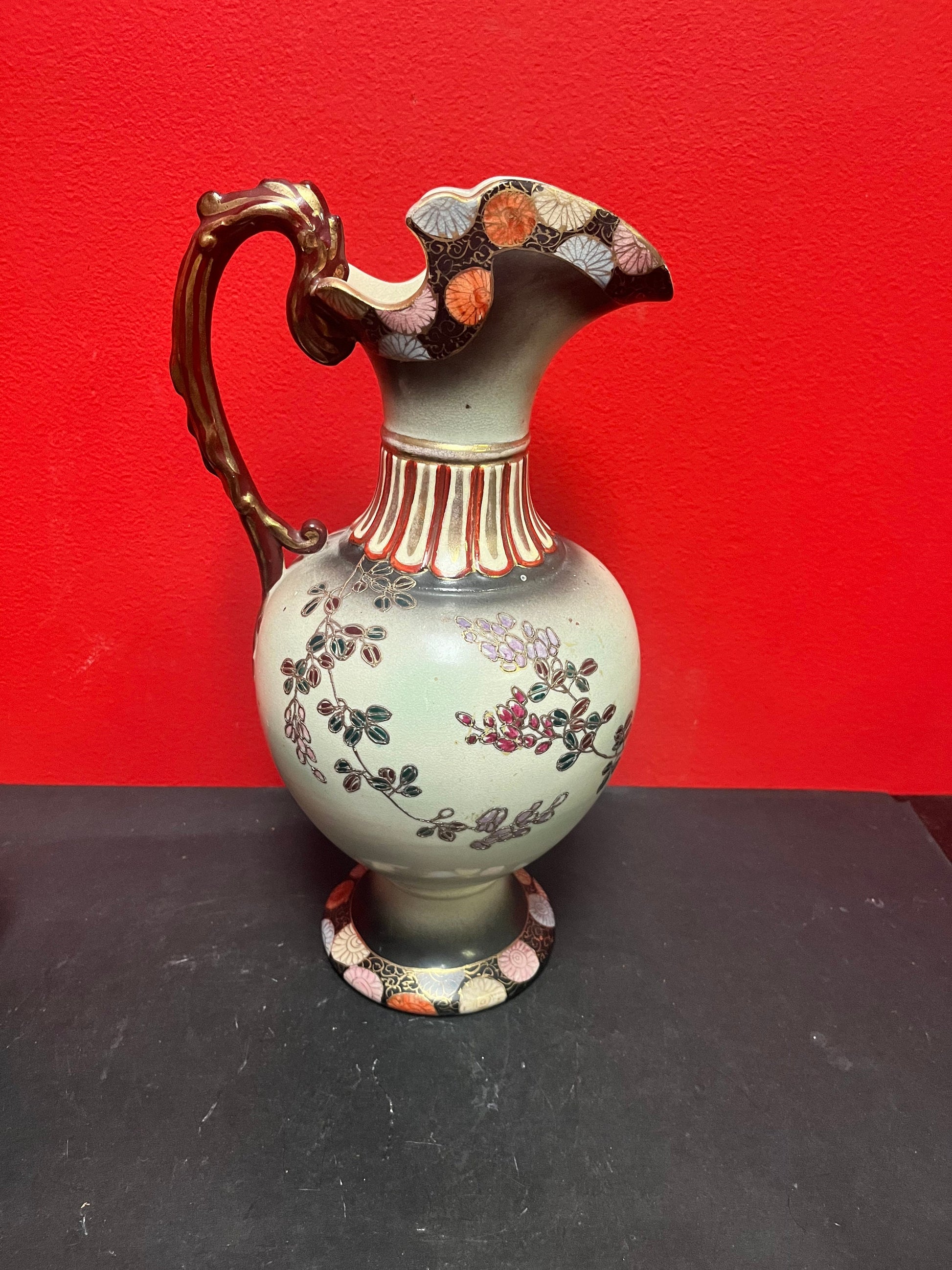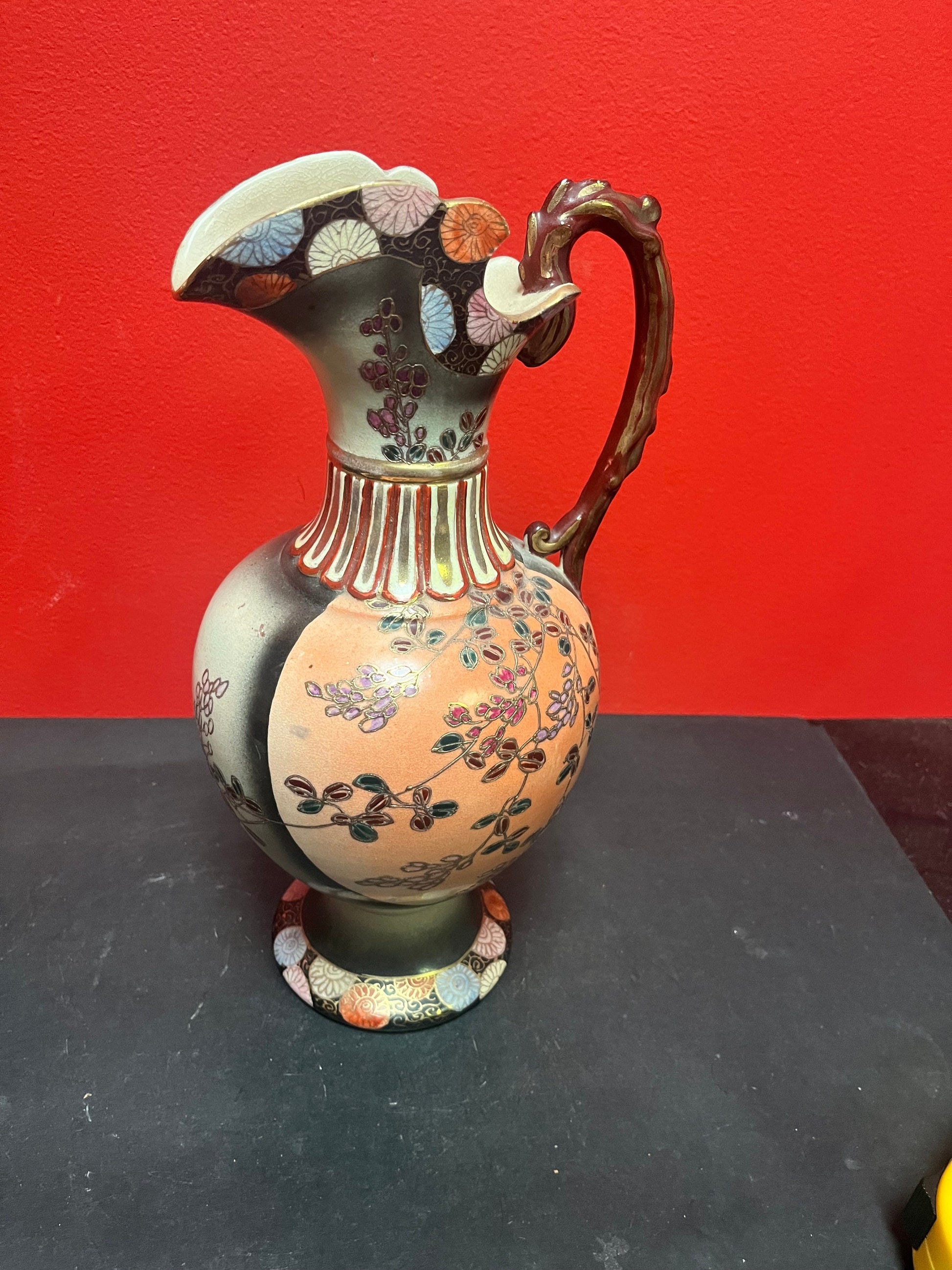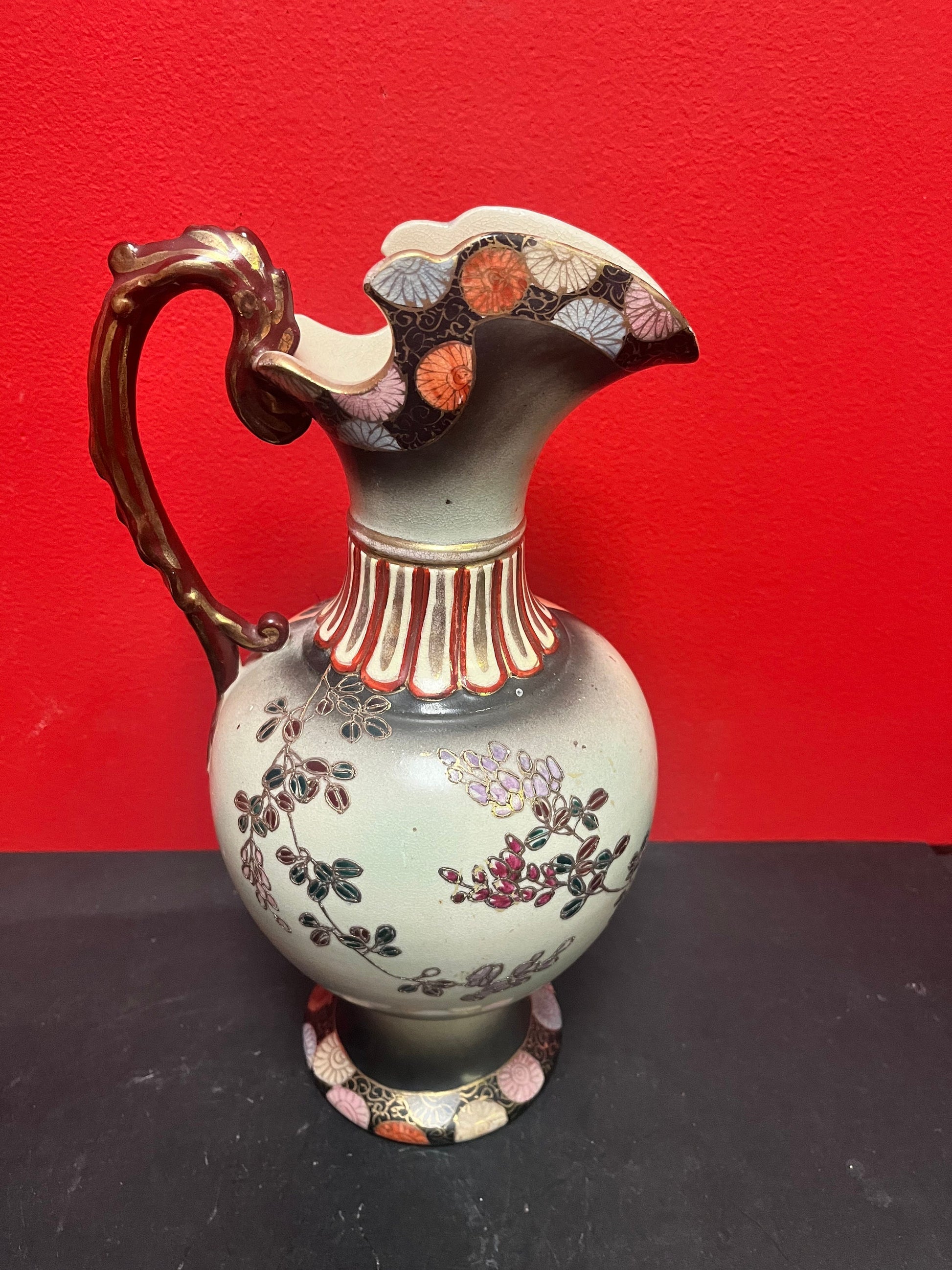 Lovely antique 12 inch tall Japanese satsuma ewer great condition great colours good value - Japanese Satsuma porcelain