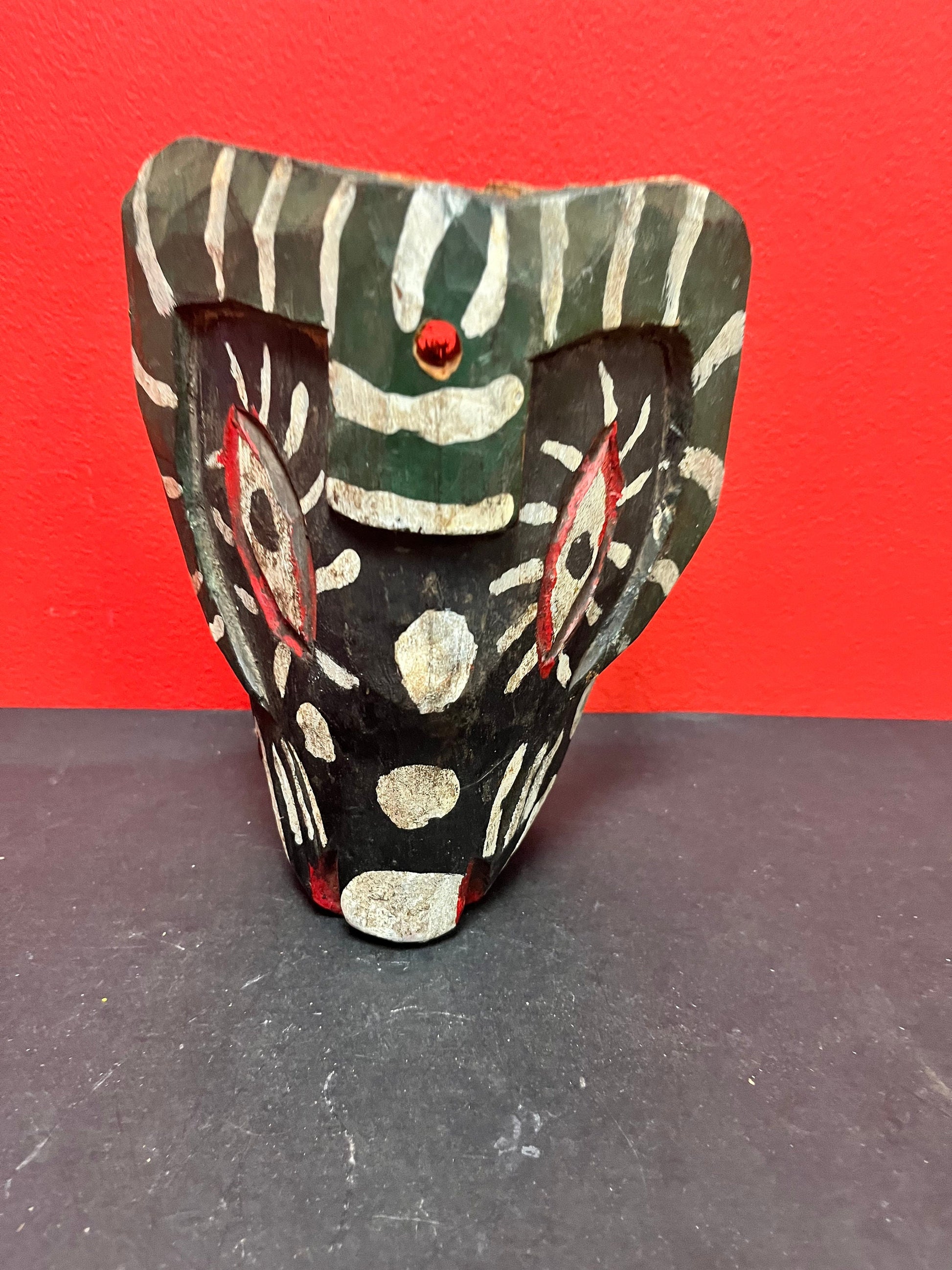 Lovely antique 8 x 6 central American painted polychrome wood mask very cool detail